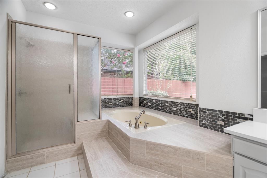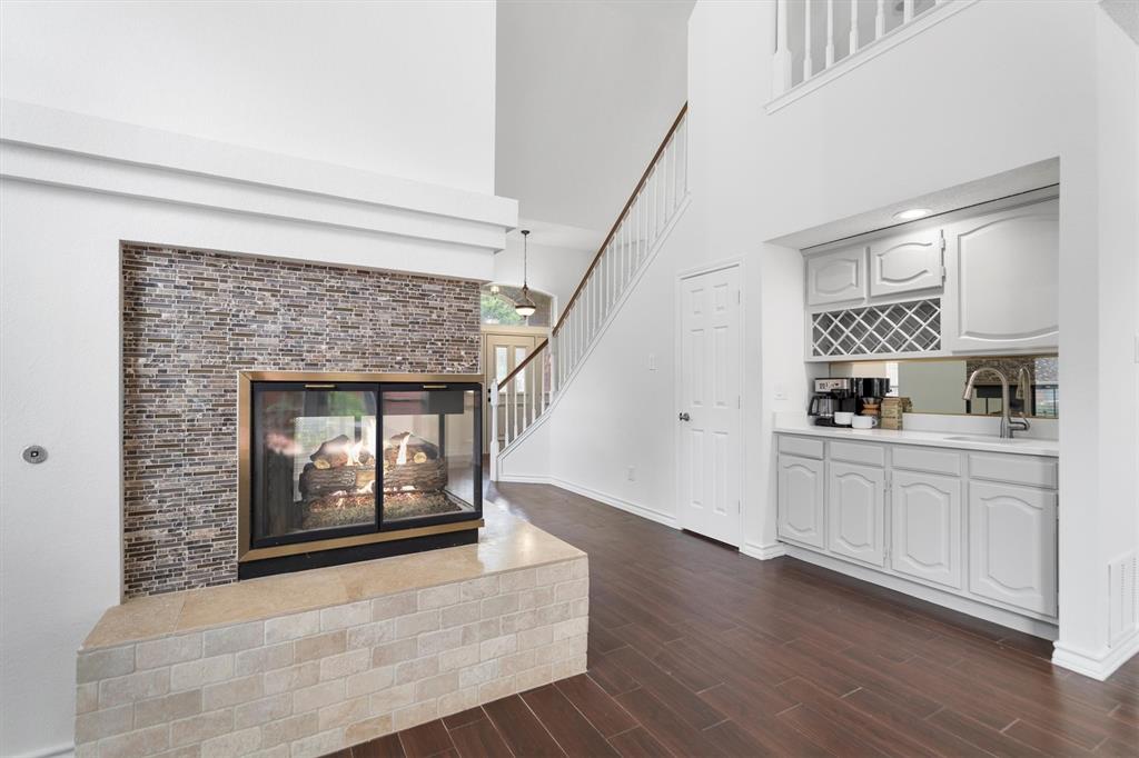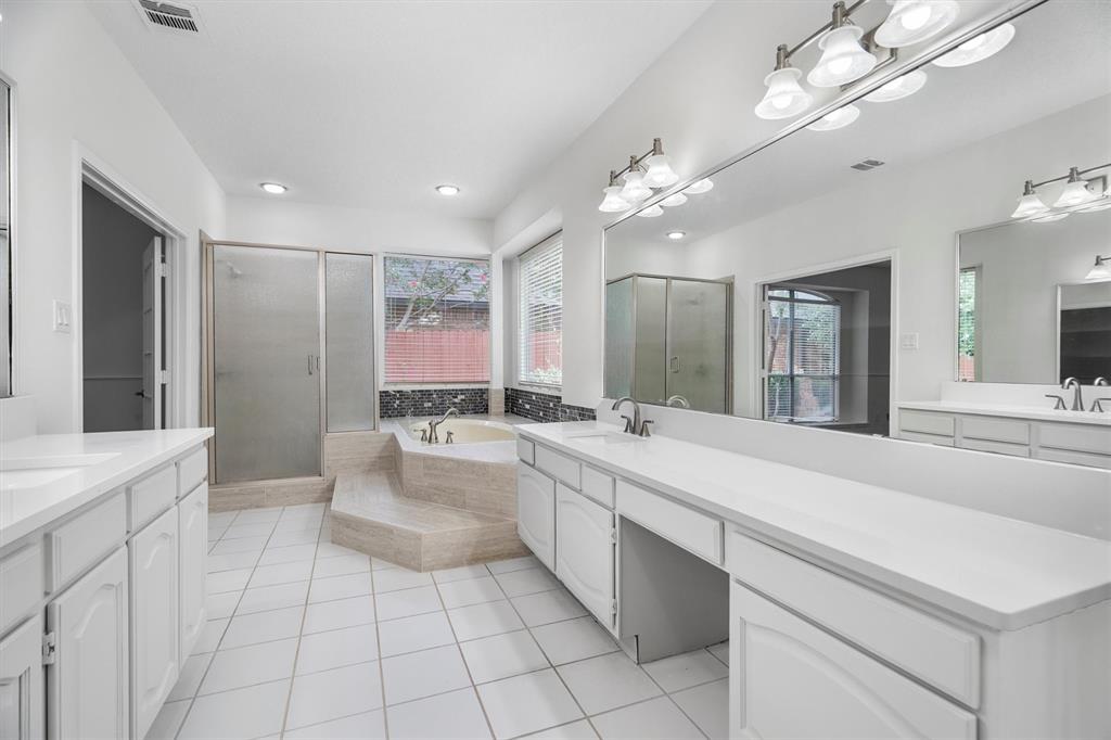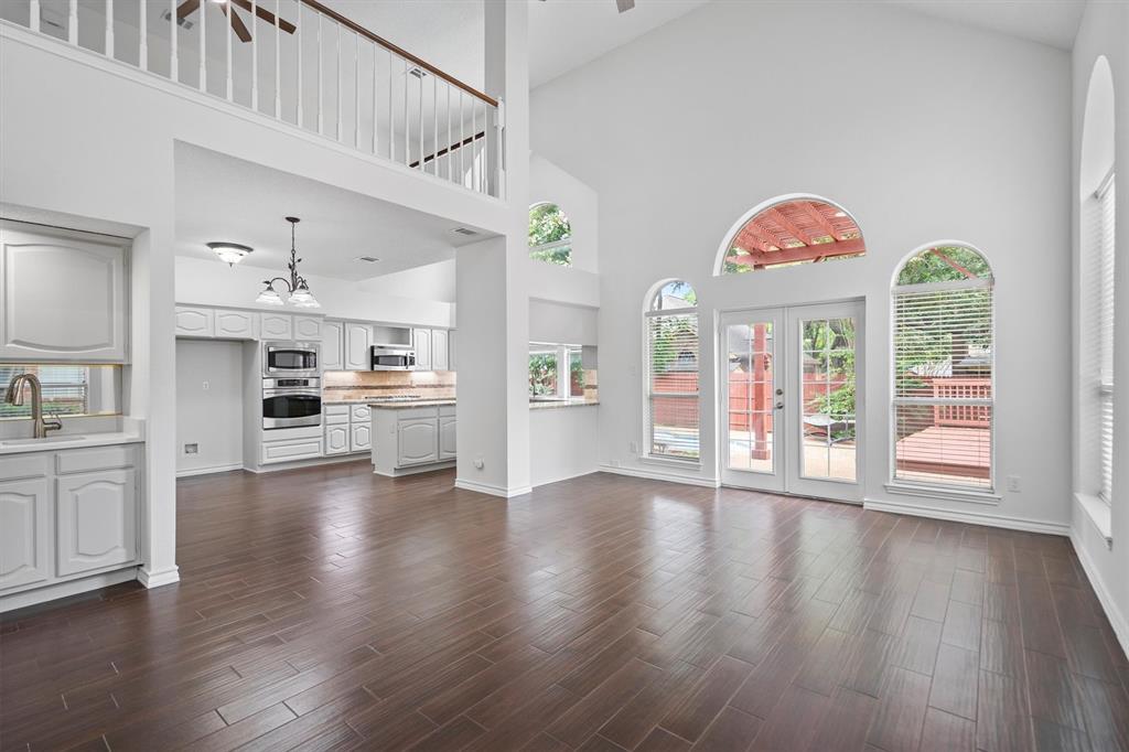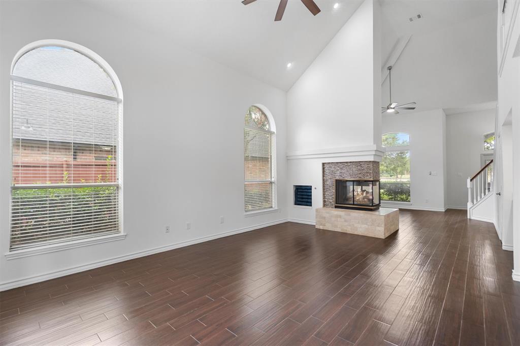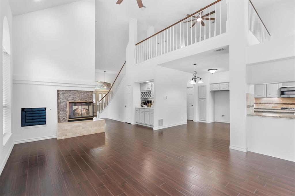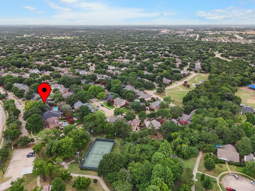 OPEN HOUSE SAT Aug 16, 1-4pm. This is the 5 bed 4 bath home with all the possibilities. Nestled in the heart of Flower Mound, this home is adjacent to Glenwick Park, tennis court, baseball field, adjoining Westchester Park & a beautiful walk down the path to W Windsor Park. These parks make it great for those who like to walk tree lined concrete hike or bike trails, Enjoy nature, or Swim in the private pool. The back yard has a nice wood deck awaiting those who wish to bask in the sun. On those chillier nights, sit in the hot tub & watch the stars. If you like the indoors more, as you walk into this home, you will be greeted by tall cathedral ceilings with the long formal dining room on the left & the spacious formal living on the right. Intersecting the 2 living rooms is the gas log fireplace which is open on 3 sides & the wet bar ready to make your morning brew or evening cocktail. The wood floors carry you throughout these areas, passing by huge windows, taking you for a view of the back yard & kitchen. The kitchen is adorned with high end granite counters all around. Gas Stove top for those who love to cook and all stainless-steel appliances. Kitchen allows oversight of the pool and back yard while still being next to the main living room. The Primary Bedroom is on the first floor, down the hall from the kitchen. A spacious room that leads to French doors of the ensuite bathroom. You get a separate shower with seat, oversized jetted tub, Separate vanities with tons of counter space on new quartz countertops. They lead into the walk-in closet. Going up the wood stairs, leads you to the 3rd living area which overlooks the kitchen, dining and other 2 living areas. Down the hall, you will find the 2nd thru 5th bedrooms and 2 more full baths, both accessible to the hall so less waiting your turn. If you have a lot of kids, visitors or just love to have a lot of well planned, useful space with high ceilings & tons of natural light, this is it!