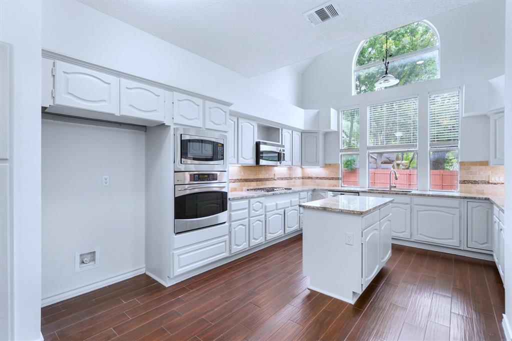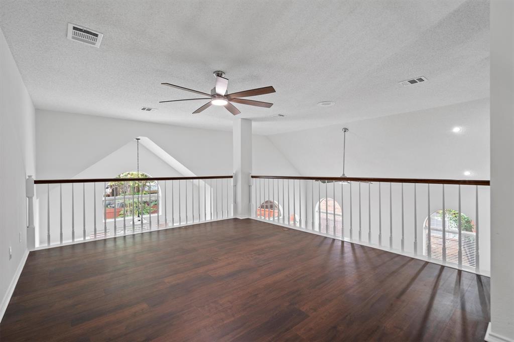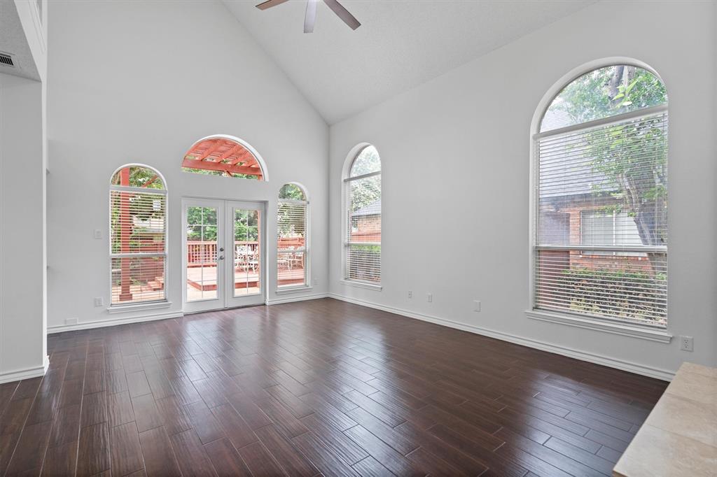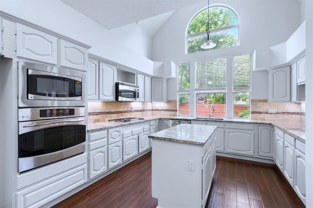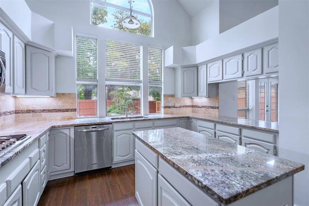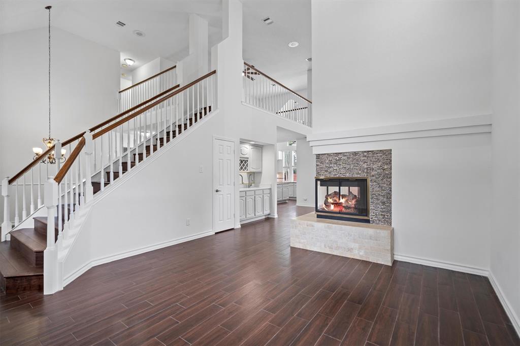 OPEN HOUSE SAT Aug 16, 1-4pm. This is the 5 bed 4 bath home with all the possibilities. Nestled in the heart of Flower Mound, this home is adjacent to Glenwick Park, tennis court, baseball field, adjoining Westchester Park & a beautiful walk down the path to W Windsor Park. These parks make it great for those who like to walk tree lined concrete hike or bike trails, Enjoy nature, or Swim in the private pool. The back yard has a nice wood deck awaiting those who wish to bask in the sun. On those chillier nights, sit in the hot tub & watch the stars. If you like the indoors more, as you walk into this home, you will be greeted by tall cathedral ceilings with the long formal dining room on the left & the spacious formal living on the right. Intersecting the 2 living rooms is the gas log fireplace which is open on 3 sides & the wet bar ready to make your morning brew or evening cocktail. The wood floors carry you throughout these areas, passing by huge windows, taking you for a view of the back yard & kitchen. The kitchen is adorned with high end granite counters all around. Gas Stove top for those who love to cook and all stainless-steel appliances. Kitchen allows oversight of the pool and back yard while still being next to the main living room. The Primary Bedroom is on the first floor, down the hall from the kitchen. A spacious room that leads to French doors of the ensuite bathroom. You get a separate shower with seat, oversized jetted tub, Separate vanities with tons of counter space on new quartz countertops. They lead into the walk-in closet. Going up the wood stairs, leads you to the 3rd living area which overlooks the kitchen, dining and other 2 living areas. Down the hall, you will find the 2nd thru 5th bedrooms and 2 more full baths, both accessible to the hall so less waiting your turn. If you have a lot of kids, visitors or just love to have a lot of well planned, useful space with high ceilings & tons of natural light, this is it!
