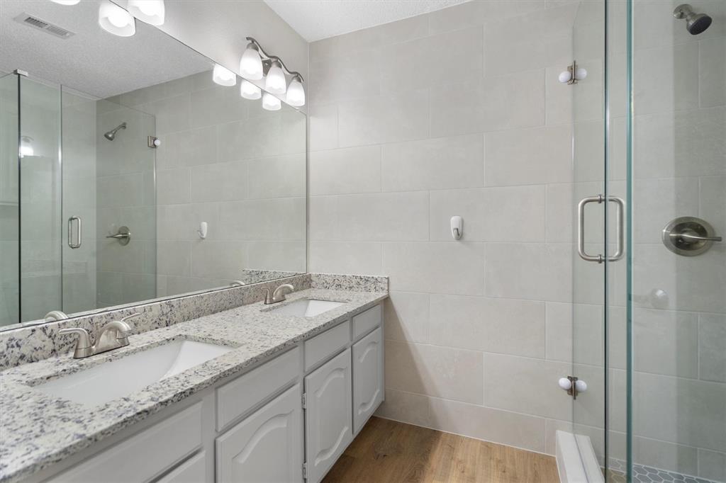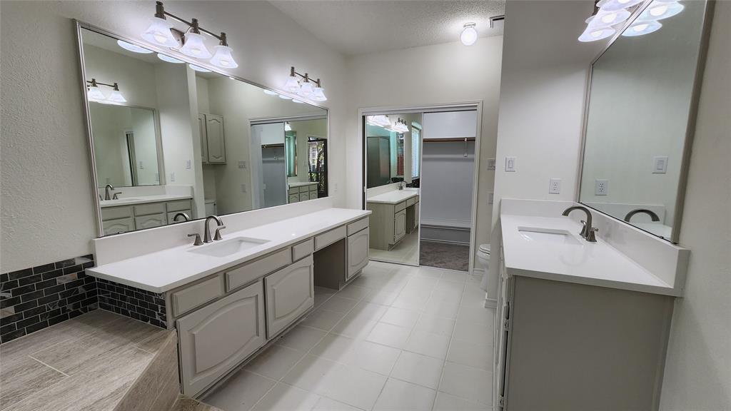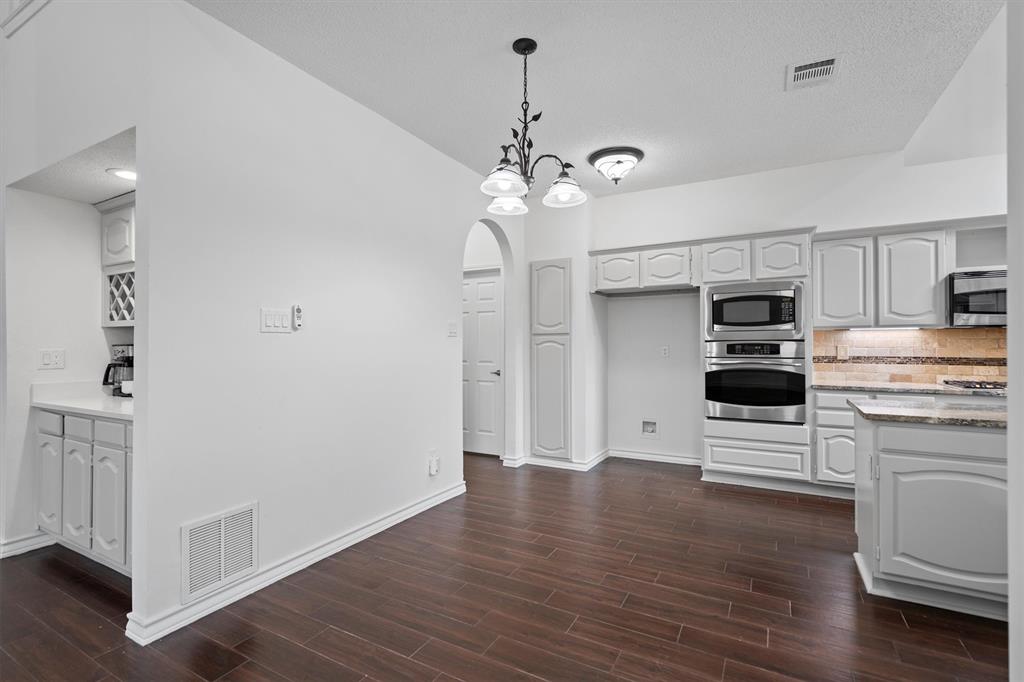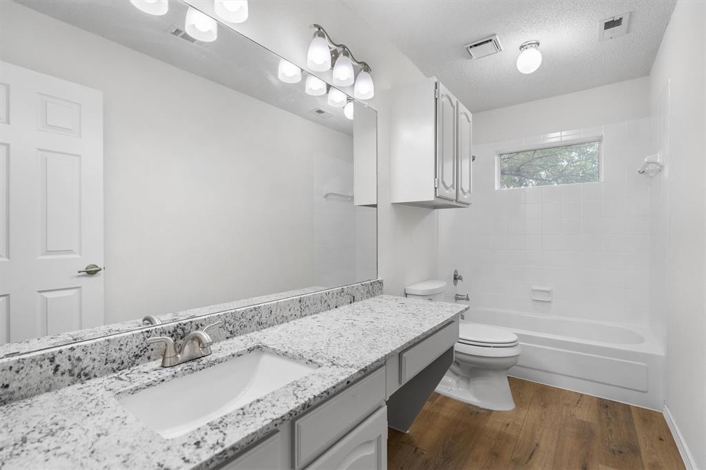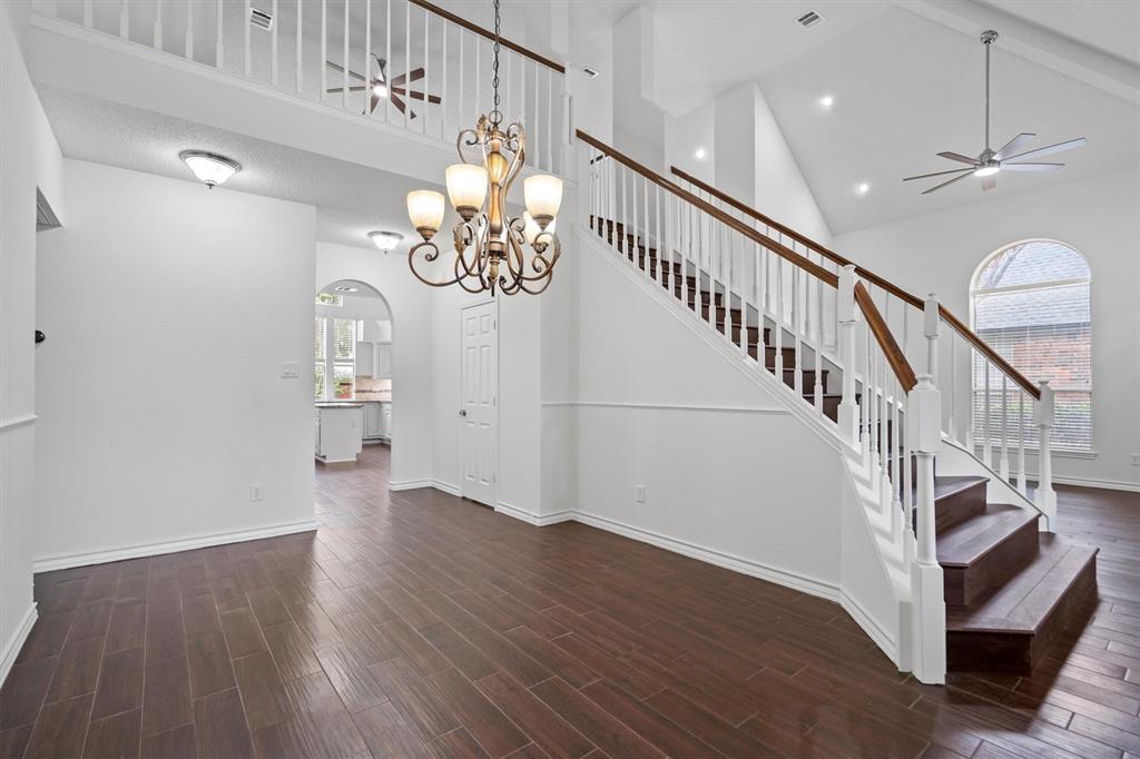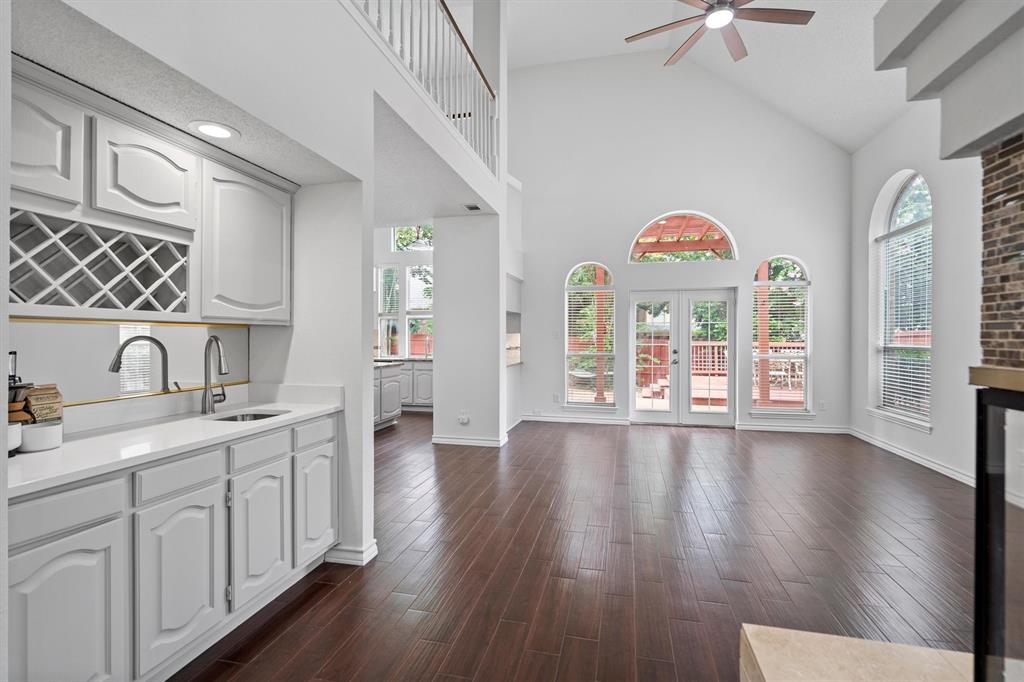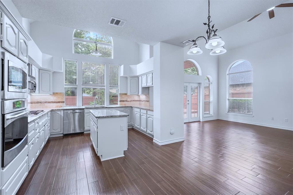 OPEN HOUSE SAT Aug 16, 1-4pm. This is the 5 bed 4 bath home with all the possibilities. Nestled in the heart of Flower Mound, this home is adjacent to Glenwick Park, tennis court, baseball field, adjoining Westchester Park & a beautiful walk down the path to W Windsor Park. These parks make it great for those who like to walk tree lined concrete hike or bike trails, Enjoy nature, or Swim in the private pool. The back yard has a nice wood deck awaiting those who wish to bask in the sun. On those chillier nights, sit in the hot tub & watch the stars. If you like the indoors more, as you walk into this home, you will be greeted by tall cathedral ceilings with the long formal dining room on the left & the spacious formal living on the right. Intersecting the 2 living rooms is the gas log fireplace which is open on 3 sides & the wet bar ready to make your morning brew or evening cocktail. The wood floors carry you throughout these areas, passing by huge windows, taking you for a view of the back yard & kitchen. The kitchen is adorned with high end granite counters all around. Gas Stove top for those who love to cook and all stainless-steel appliances. Kitchen allows oversight of the pool and back yard while still being next to the main living room. The Primary Bedroom is on the first floor, down the hall from the kitchen. A spacious room that leads to French doors of the ensuite bathroom. You get a separate shower with seat, oversized jetted tub, Separate vanities with tons of counter space on new quartz countertops. They lead into the walk-in closet. Going up the wood stairs, leads you to the 3rd living area which overlooks the kitchen, dining and other 2 living areas. Down the hall, you will find the 2nd thru 5th bedrooms and 2 more full baths, both accessible to the hall so less waiting your turn. If you have a lot of kids, visitors or just love to have a lot of well planned, useful space with high ceilings & tons of natural light, this is it!