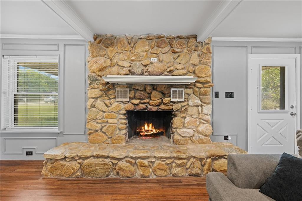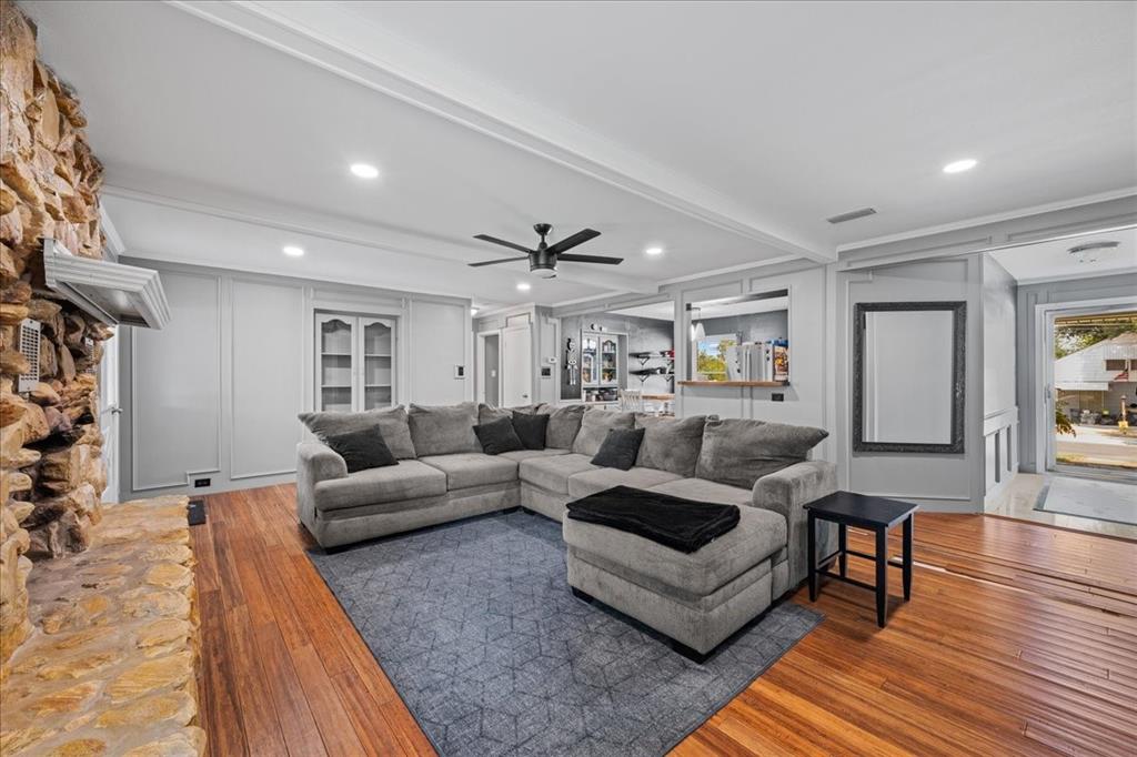 From the moment you step inside, the quality is clear. You’ll find new bamboo flooring, new carpet, fresh interior paint, and upgraded lighting and ceiling fans that bring a bright, updated feel throughout. The spacious living area features a classic stone fireplace, creating a cozy focal point for everyday living or weekend entertaining.