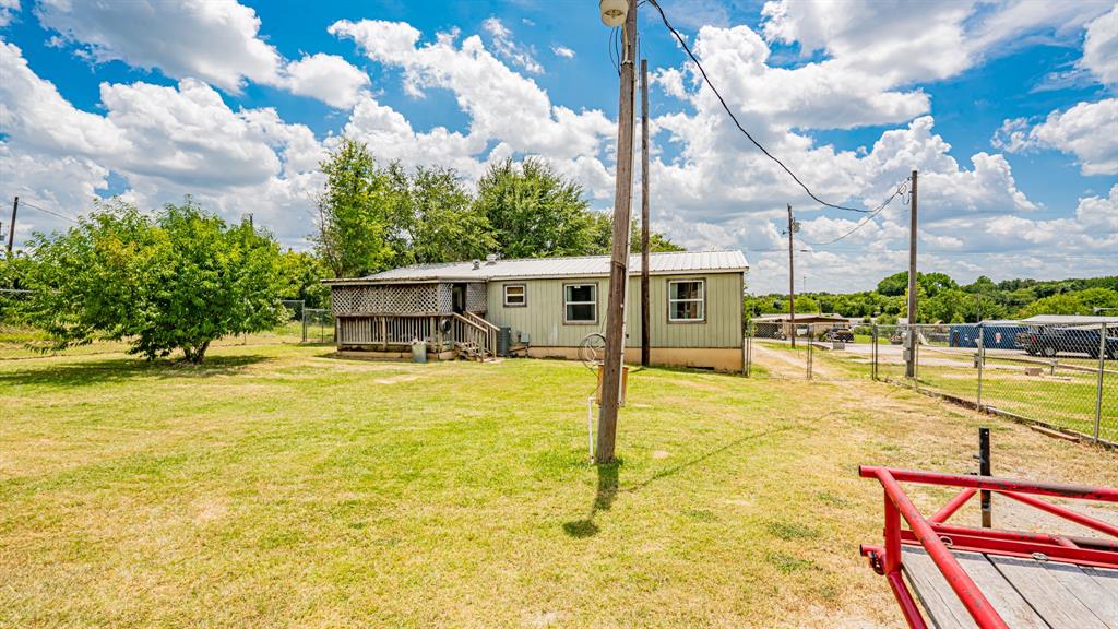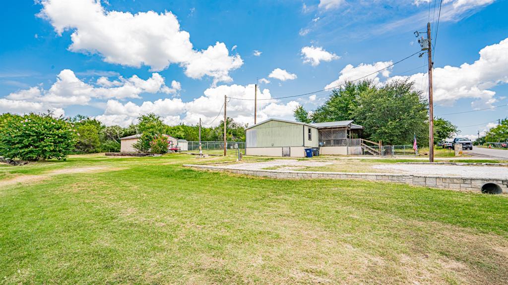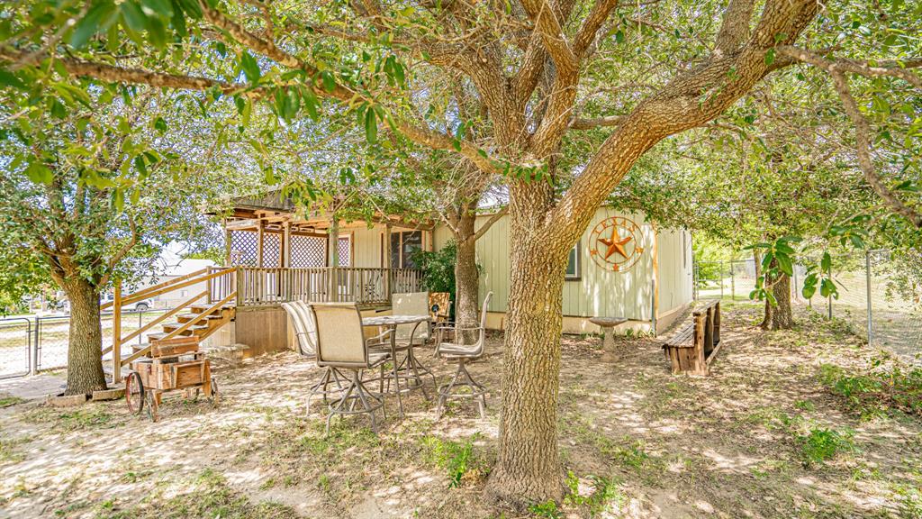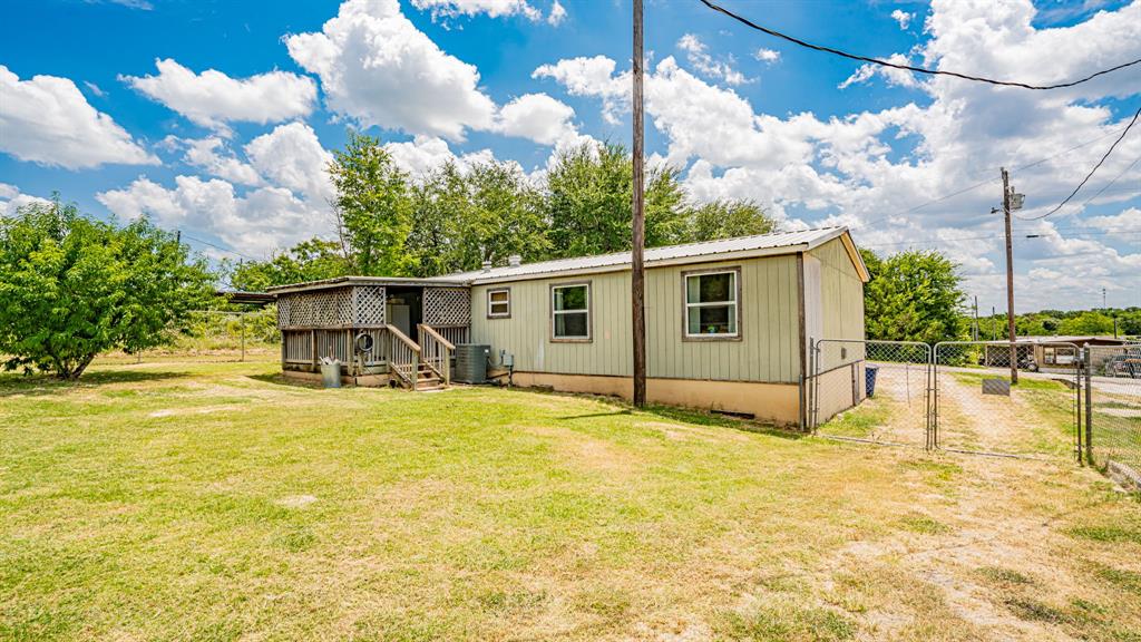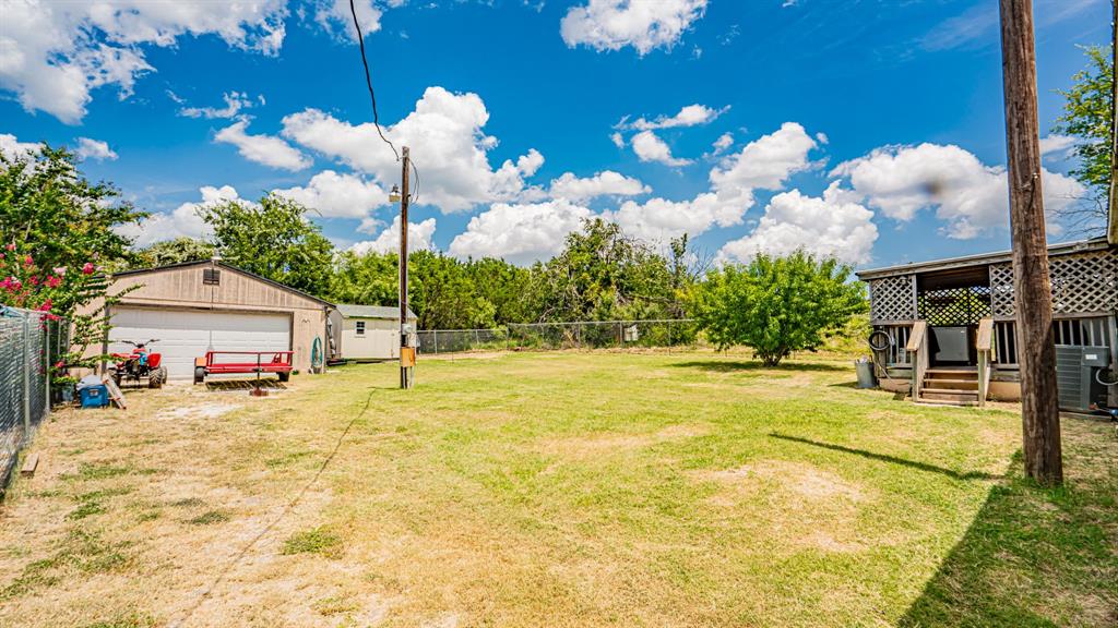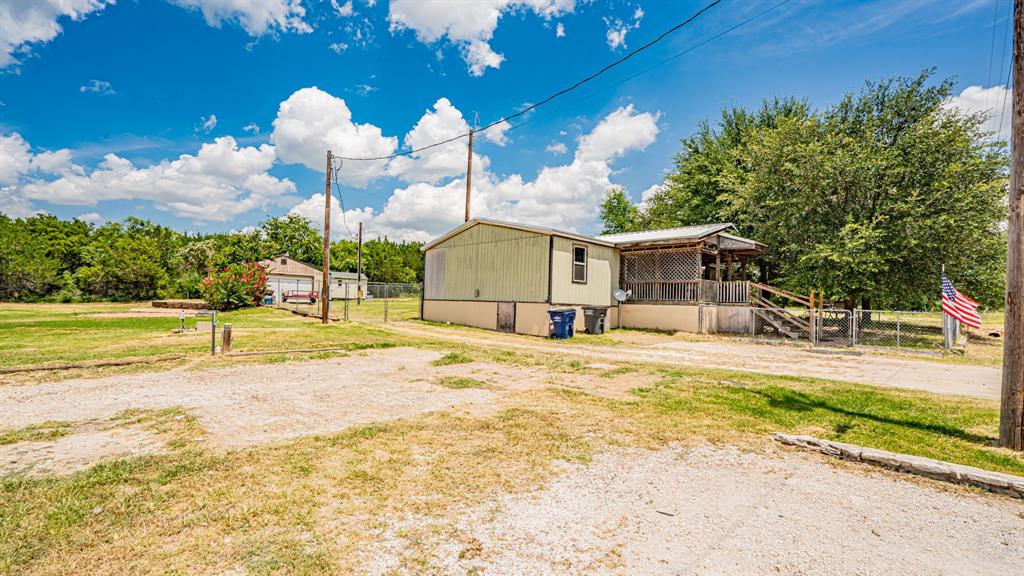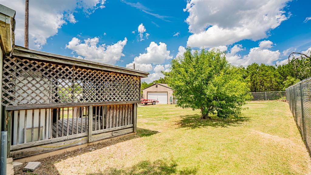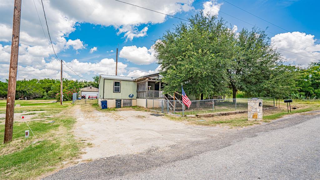Cute and Cozy doublewide manufactured home located on a heavily treed and fenced half acre on the Fort Worth side of Granbury! This home includes 2 lots. 2nd lot includes complete RV hookups. Home is a 3 bedroom, 2 bath, 1344 square foot, Fleetwood brand doublewide built in 1991. This home has only had 1 owner! Fully chain link fenced front yard and back yard. Wonderful large covered deck welcomes you to the front door. Walking out the back door you will also find a wonderful covered back porch deck. Also included is a detached 2 car garage on slab with electricity! Separate storage building is just off the garage and included. Don't miss the metal roof on the house for added protection from the elements. Inside this home you will find a large, open, and welcoming living room, beautiful open kitchen with appliances, breakfast area just off the kitchen, and a separate utility room just off the kitchen. Large and inviting master bedroom with ensuite master bathroom. Master bath features a walk in separate shower. Bedrooms 2 and 3 are also very roomy with spacious closets. Ceiling fans in all bedrooms. No carpet in this home...just beautiful wood look vinyl flooring throughout. This home has a lot to offer. Beautiful mature trees throughout the property, a fully fenced front and back yard, covered front porch deck and a covered back patio deck. Wonderful detached 2 car garage on slab with electricity. Separate storage building. Priced to sell!