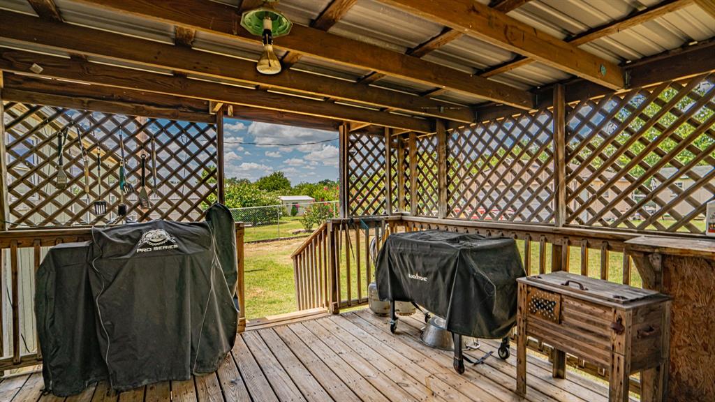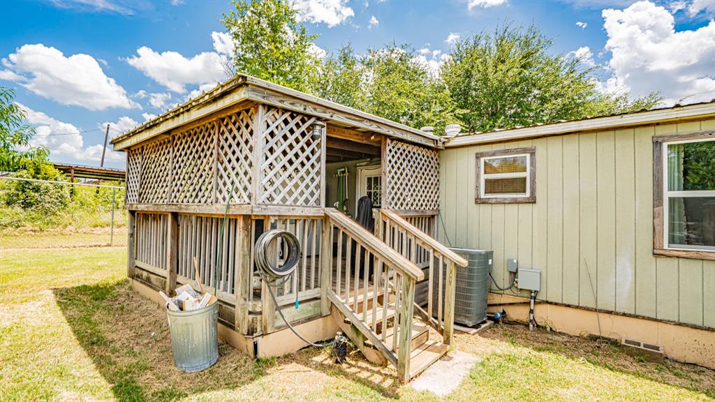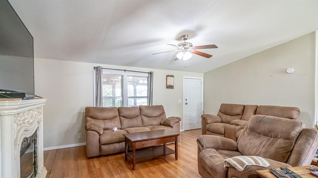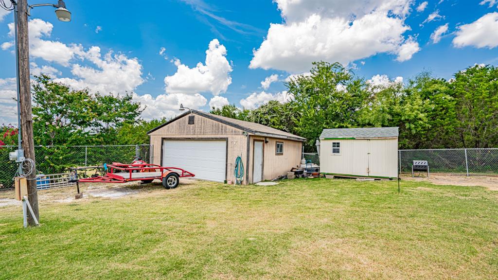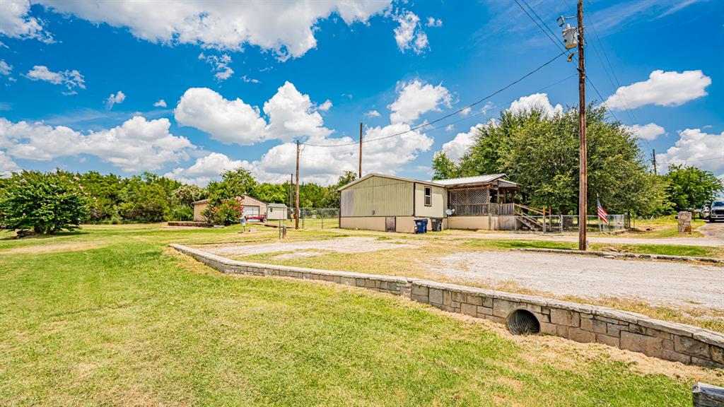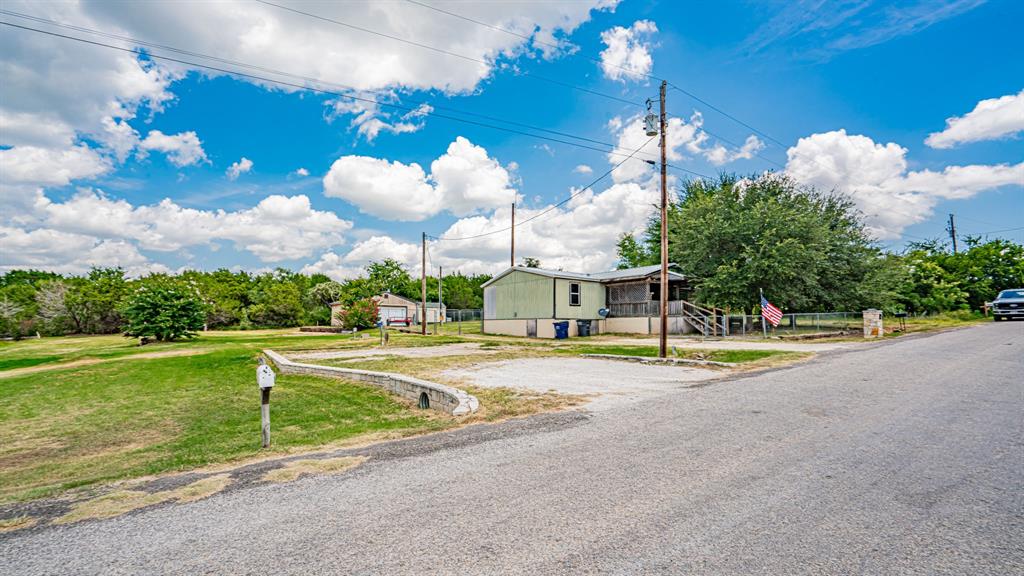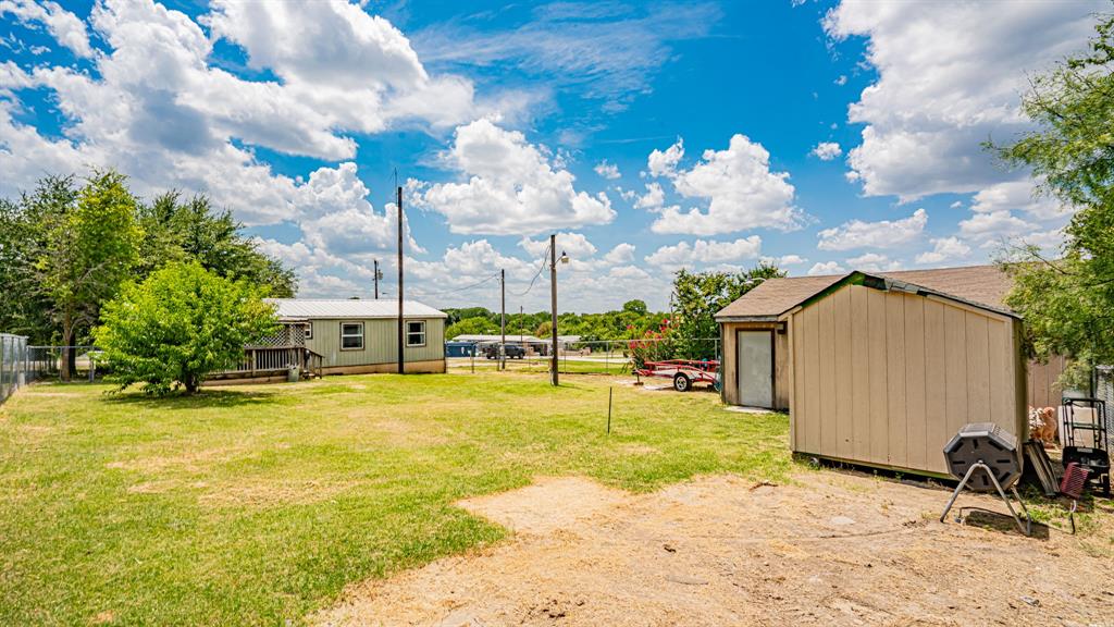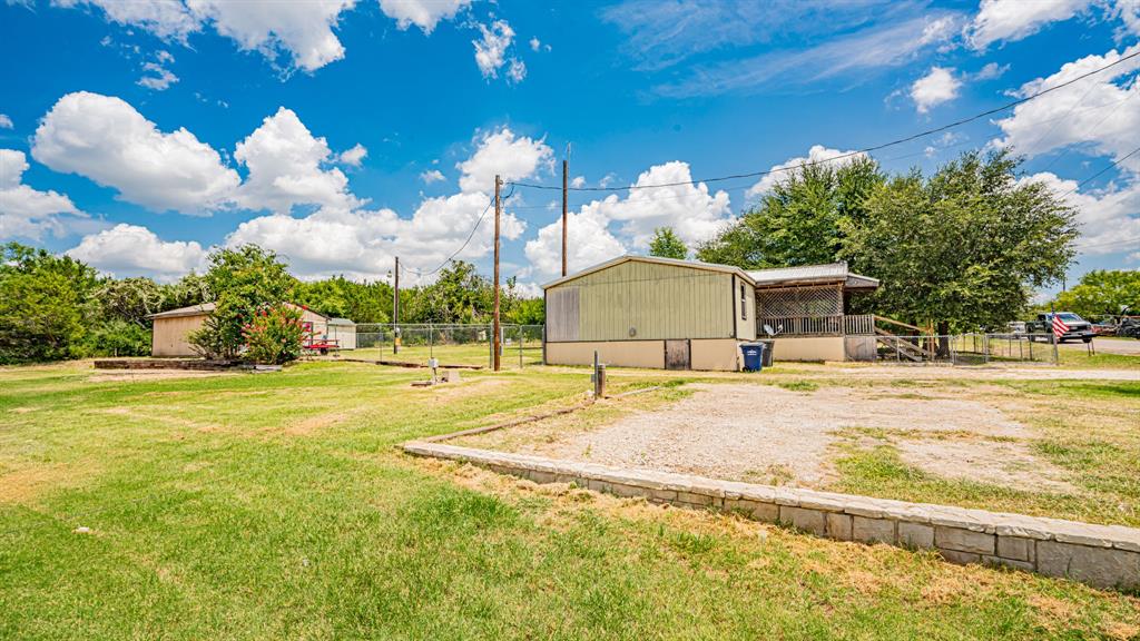 Cute and Cozy doublewide manufactured home located on a heavily treed and fenced half acre on the Fort Worth side of Granbury! This home includes 2 lots. 2nd lot includes complete RV hookups. Home is a 3 bedroom, 2 bath, 1344 square foot, Fleetwood brand doublewide built in 1991. This home has only had 1 owner! Fully chain link fenced front yard and back yard. Wonderful large covered deck welcomes you to the front door. Walking out the back door you will also find a wonderful covered back porch deck. Also included is a detached 2 car garage on slab with electricity! Separate storage building is just off the garage and included. Don't miss the metal roof on the house for added protection from the elements. Inside this home you will find a large, open, and welcoming living room, beautiful open kitchen with appliances, breakfast area just off the kitchen, and a separate utility room just off the kitchen. Large and inviting master bedroom with ensuite master bathroom. Master bath features a walk in separate shower. Bedrooms 2 and 3 are also very roomy with spacious closets. Ceiling fans in all bedrooms. No carpet in this home...just beautiful wood look vinyl flooring throughout. This home has a lot to offer. Beautiful mature trees throughout the property, a fully fenced front and back yard, covered front porch deck and a covered back patio deck. Wonderful detached 2 car garage on slab with electricity. Separate storage building. Priced to sell!