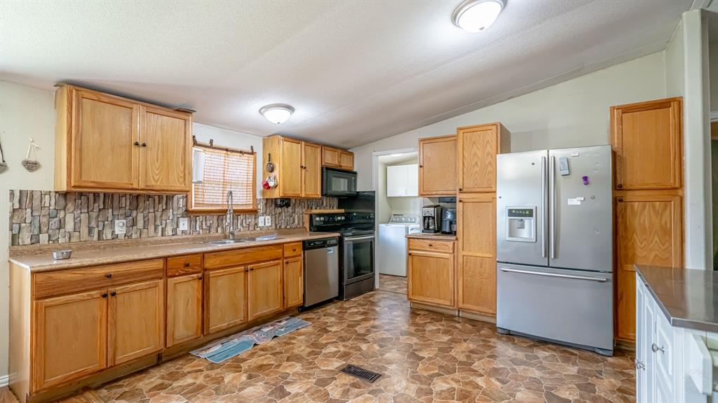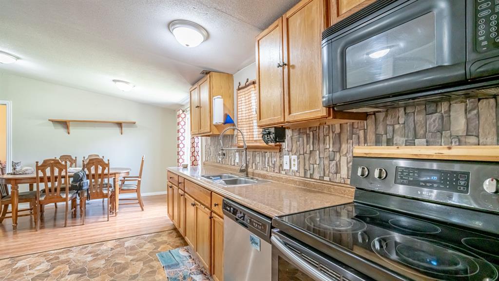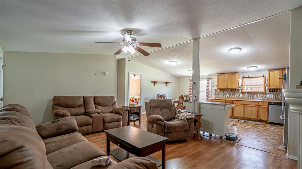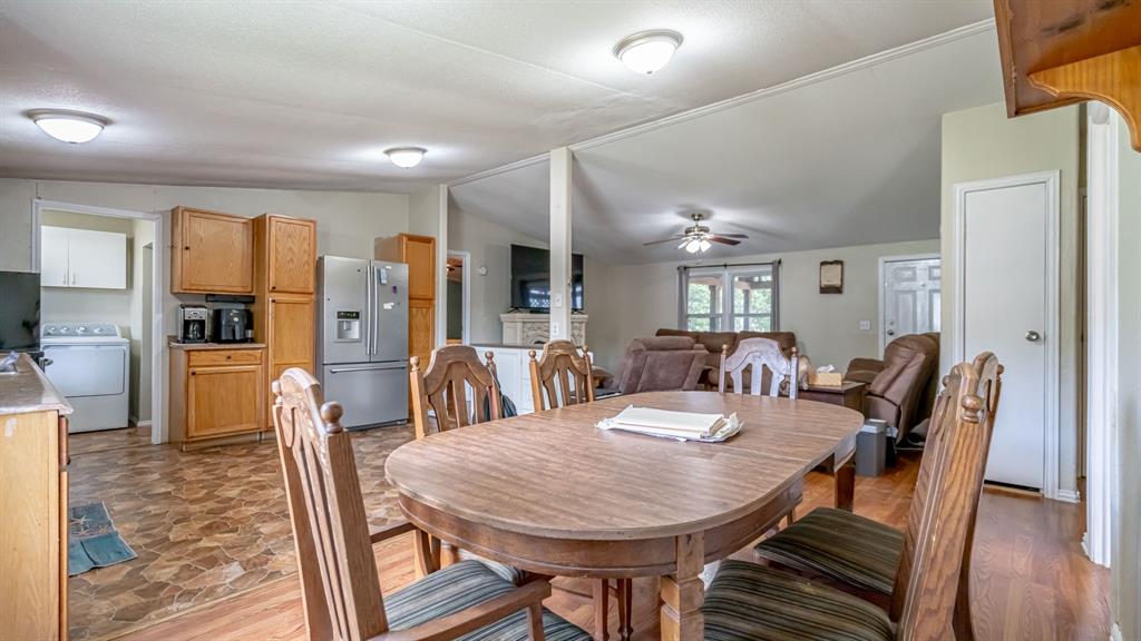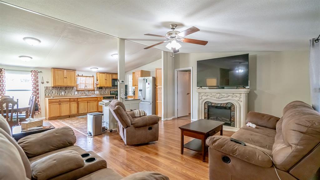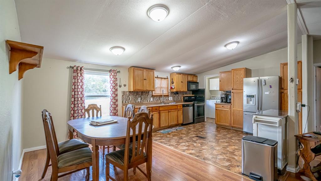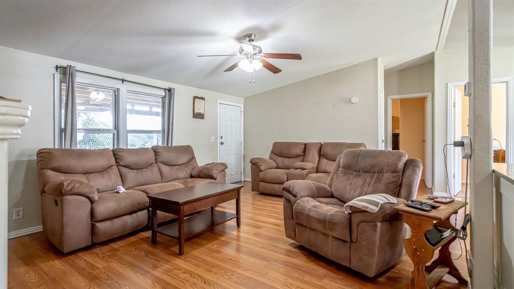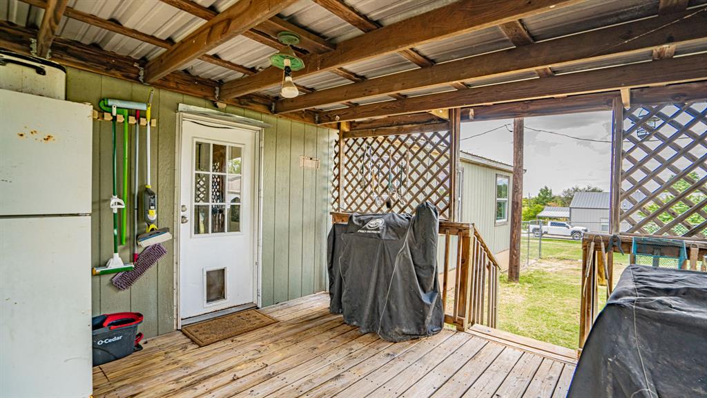 Cute and Cozy doublewide manufactured home located on a heavily treed and fenced half acre on the Fort Worth side of Granbury! This home includes 2 lots. 2nd lot includes complete RV hookups. Home is a 3 bedroom, 2 bath, 1344 square foot, Fleetwood brand doublewide built in 1991. This home has only had 1 owner! Fully chain link fenced front yard and back yard. Wonderful large covered deck welcomes you to the front door. Walking out the back door you will also find a wonderful covered back porch deck. Also included is a detached 2 car garage on slab with electricity! Separate storage building is just off the garage and included. Don't miss the metal roof on the house for added protection from the elements. Inside this home you will find a large, open, and welcoming living room, beautiful open kitchen with appliances, breakfast area just off the kitchen, and a separate utility room just off the kitchen. Large and inviting master bedroom with ensuite master bathroom. Master bath features a walk in separate shower. Bedrooms 2 and 3 are also very roomy with spacious closets. Ceiling fans in all bedrooms. No carpet in this home...just beautiful wood look vinyl flooring throughout. This home has a lot to offer. Beautiful mature trees throughout the property, a fully fenced front and back yard, covered front porch deck and a covered back patio deck. Wonderful detached 2 car garage on slab with electricity. Separate storage building. Priced to sell!