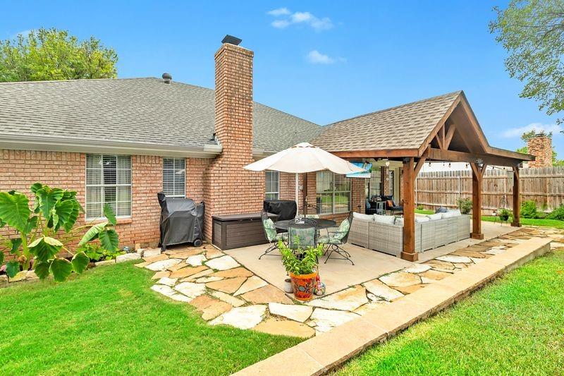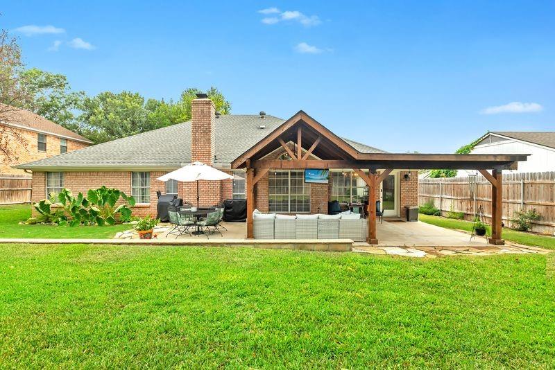 Step inside your dream home: a charming single-level, open-concept design in Trophy Club. This beautifully remodeled 4-bedroom, 2.5-bath home has been transformed from top to bottom, featuring an open floor plan ideal for both daily living and entertaining. Inside, you’ll find fresh paint, new flooring, and bright, airy living spaces. The spacious kitchen boasts updated granite countertops and seamlessly connects to an inviting living room that opens to your private backyard oasis, complete with serene greenbelt and creek. Step outside to enjoy your brand-new backyard pergola — perfect for summer barbecues, morning coffee, or quiet evenings to relax. Situated on a peaceful cul-de-sac in the highly sought-after Trophy Club community, you’ll love the convenience of nearby top-rated schools, parks, golf courses, and dining.