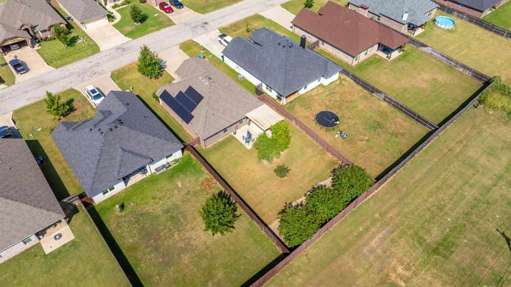 Move in and start saving! This beautiful one-owner home comes complete with fully paid-for solar panels—no lease, no loan, just instant savings with current energy bills under $40 a month. The seller is including a home inspection for your peace of mind. Lovingly maintained and truly move-in ready, this home features an open-concept floorplan perfect for both relaxing and entertaining. The light-filled kitchen boasts granite countertops, modern appliances, a breakfast bar, walk-in pantry and an adjoining dining area. The private primary suite is tucked away at the back of the home, offering a peaceful retreat with a luxurious ensuite bath featuring dual walk-in closets, a soaking tub, a large shower, dual sinks, and abundant storage. Secondary bedrooms offer large closets, ceiling fans, and access to a stylish hall bath. Outside, you’ll find a two-car front-facing garage with remotes, rain gutters, a sprinkler system, and a fenced backyard oasis with an extended patio and storage closet. With no homes behind the property, you’ll enjoy privacy as you relax or gather with friends and neighbors. Located in the desired Main Place neighborhood on the Fort Worth side of Granbury, and approximately 25 minutes from Fort Worth and close to Granbury’s shopping, dining, and amenities.