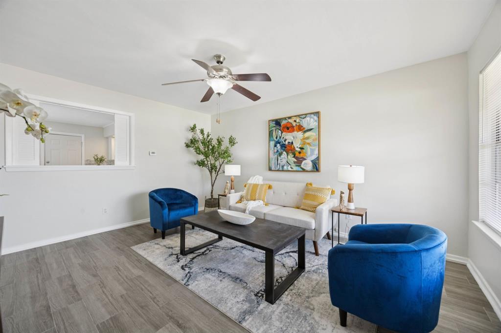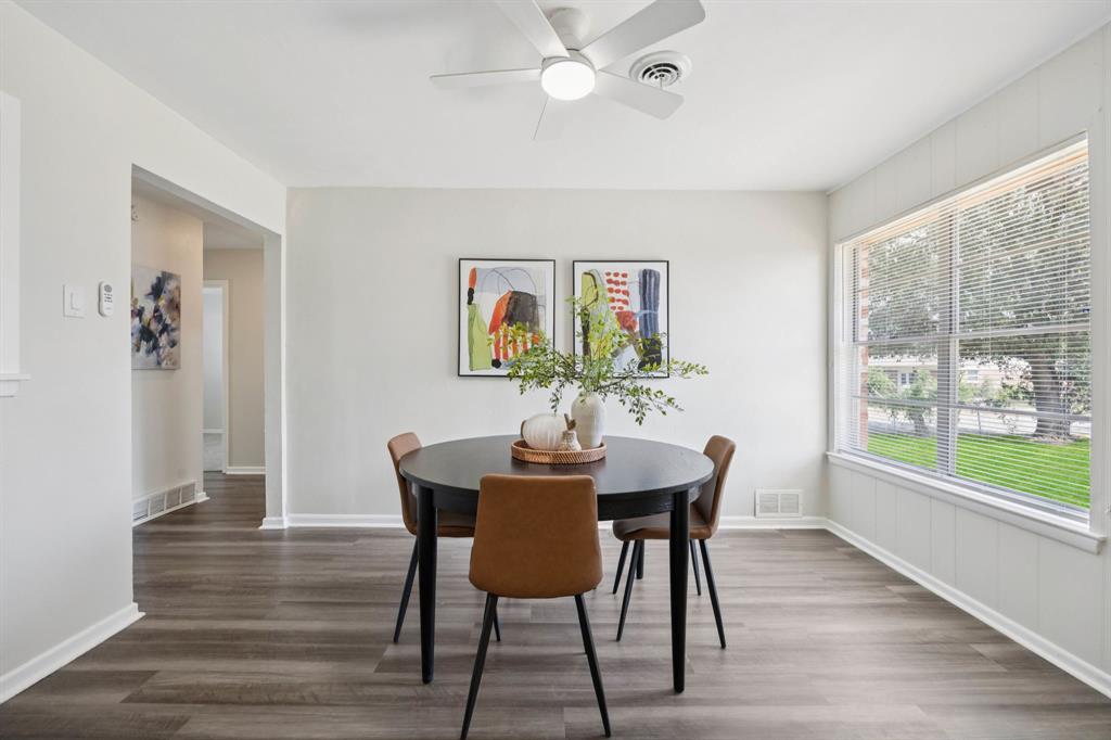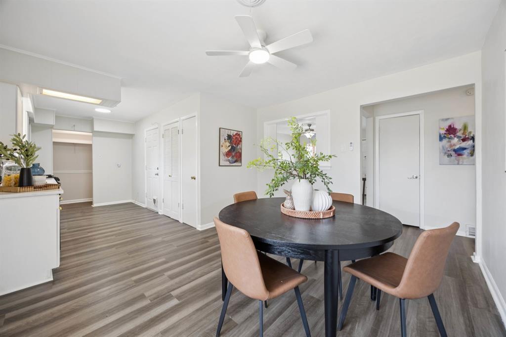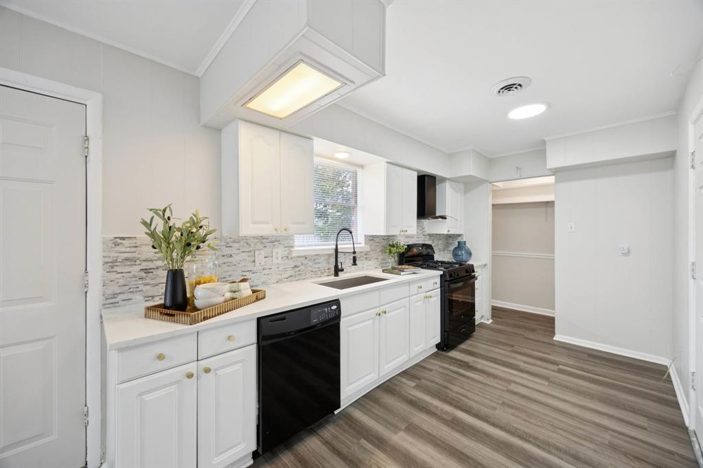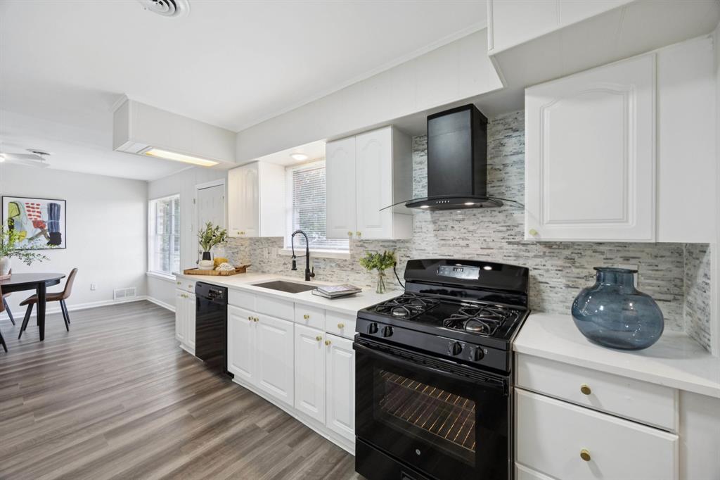 The stylish eat-in kitchen features gleaming quartz countertops, a designer tile backsplash, and a sleek vent hood that makes a statement. Brand-new luxury vinyl flooring and fresh carpet in the bedrooms create a warm, inviting feel throughout.