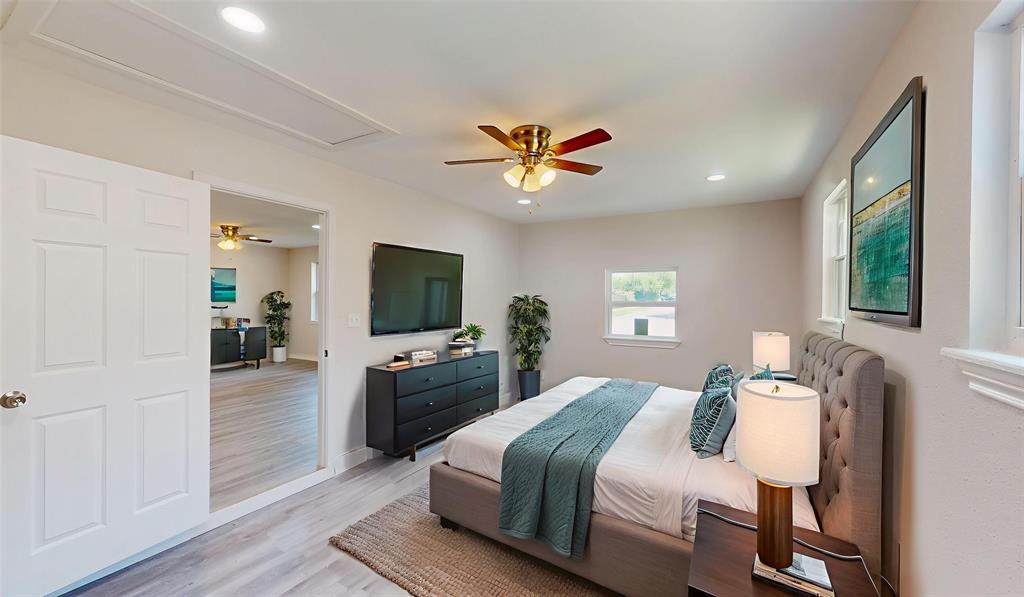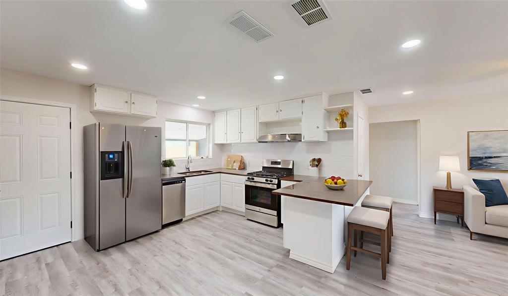 Welcome to this beautifully renovated single-story home that combines modern amenities with comfortable living. This home was recently gutted and rebuilt. Everything is new. Step inside to discover a bright and airy living space adorned with elegant lighting and a stylish ceiling fan, creating a cozy yet sophisticated atmosphere. The kitchen boasts updated stainless-steel appliances, sleek granite countertops, and ample cabinetry for all your storage needs. The bathrooms feature contemporary fixtures and tiled finishes. The property also features a covered back patio. A huge standout feature is the expansive detached garage, offering two-car accommodation with extra room for a workshop or storage, plus a half bath built right in. Don’t miss the opportunity to own this great property in a friendly neighborhood.