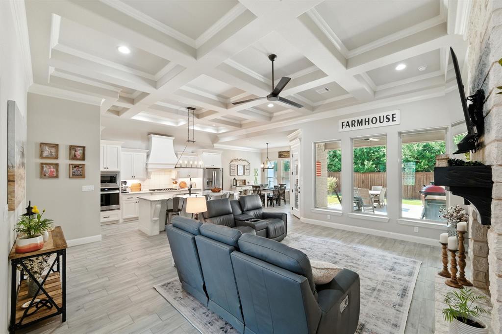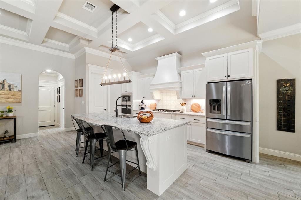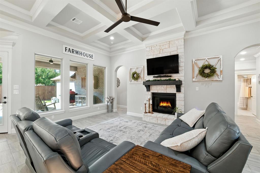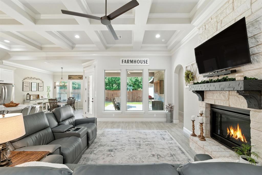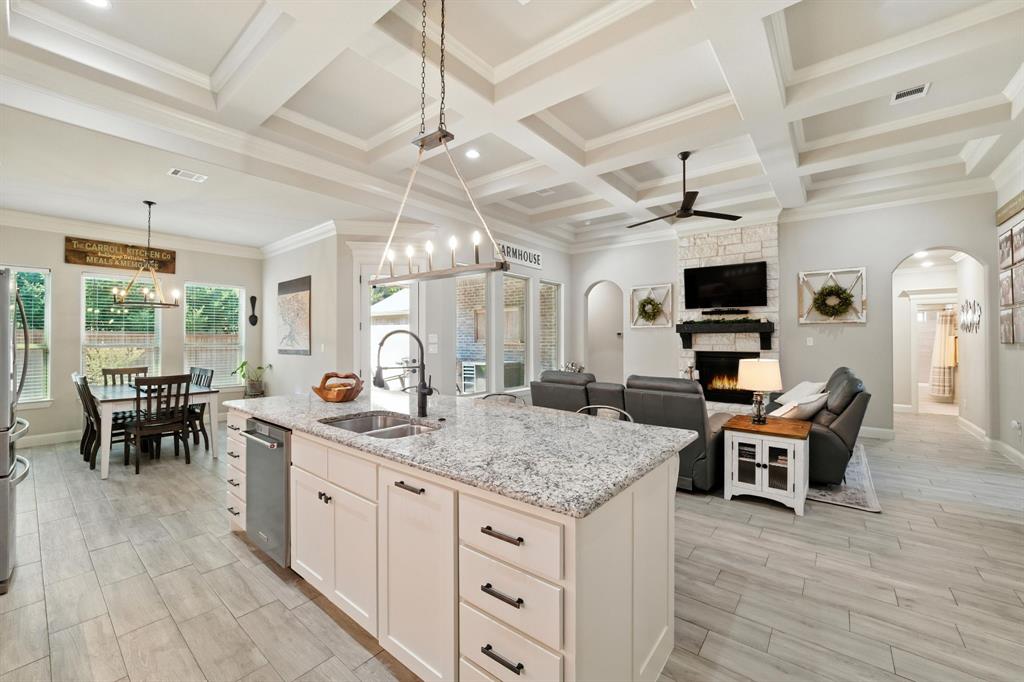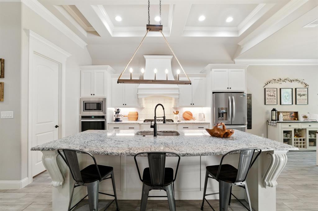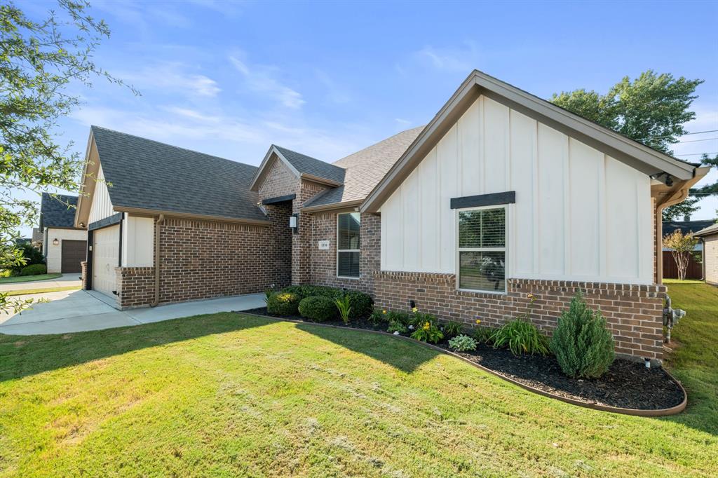 Virtual home - video and 3D tour available via text! This gorgeous home, expertly crafted by Al Couto, resides in an intimate gated community in Harbor Lakes with just 21 other homes, offering a lock-and-leave lifestyle with HOA-managed front and back lawn care. The open-concept layout features wood-look tile flooring, a bright living area with a gas log fireplace, 12ft ceilings, and large windows that bathe the space in natural light. The gourmet kitchen impresses with stainless steel appliances, 5-burner gas range, pantry, and a spacious island with seating, all enhanced by custom cabinetry. Masterful craftsmanship shines through elegant trim and coffered, tray, and vaulted ceilings throughout. The expansive primary suite includes dual sinks, walk-in closet, a water closet, and a luxurious walk-in shower featuring multiple spray heads and a soaking tub. Flexible floor plan with two secondary bedrooms and a dedicated home office provide space for work, play, and guests. In the garage, you’ll appreciate the epoxy floors, storage systems, and recently installed whole-home water filtration and softener system. Outdoors, an extended back patio and fenced yard offer a perfect, low-maintenance space for entertaining. Nestled next to Harbor Lakes Golf Course and a short walk from Lake Granbury, this fantastic location provides easy access to DFW while capturing the charm of Historic Granbury.
