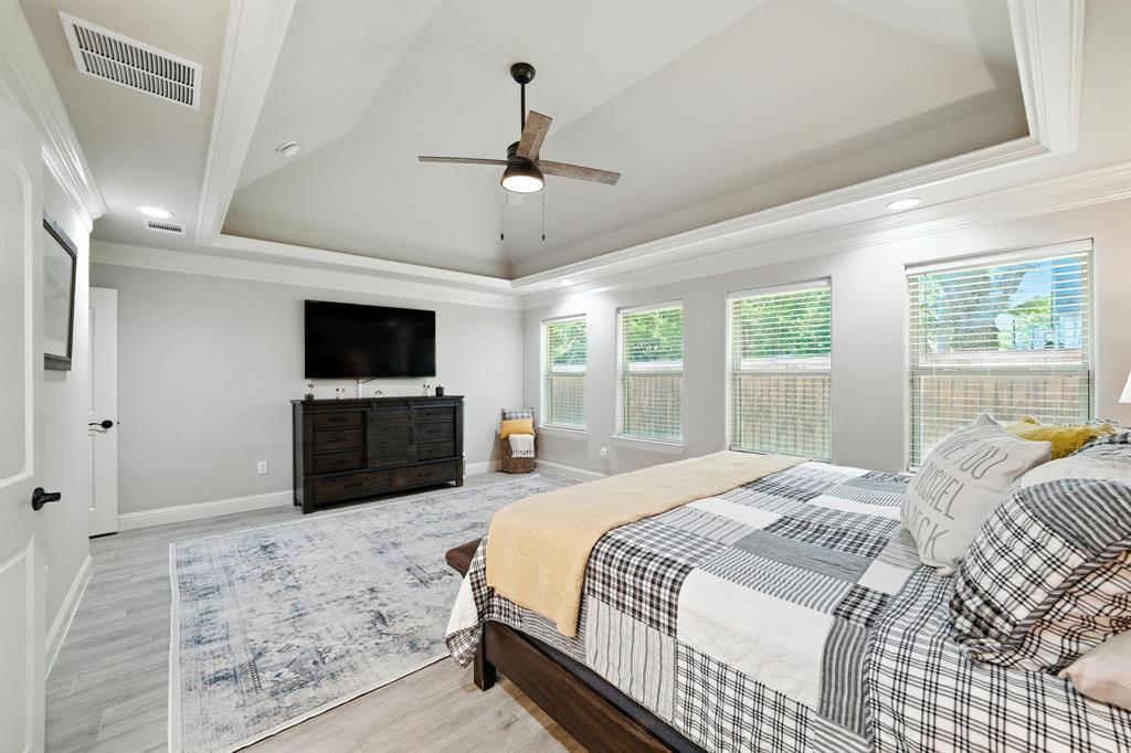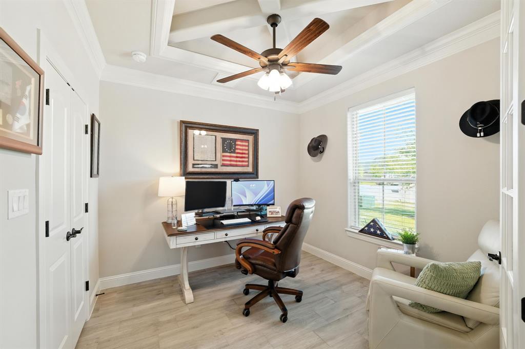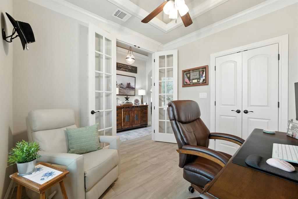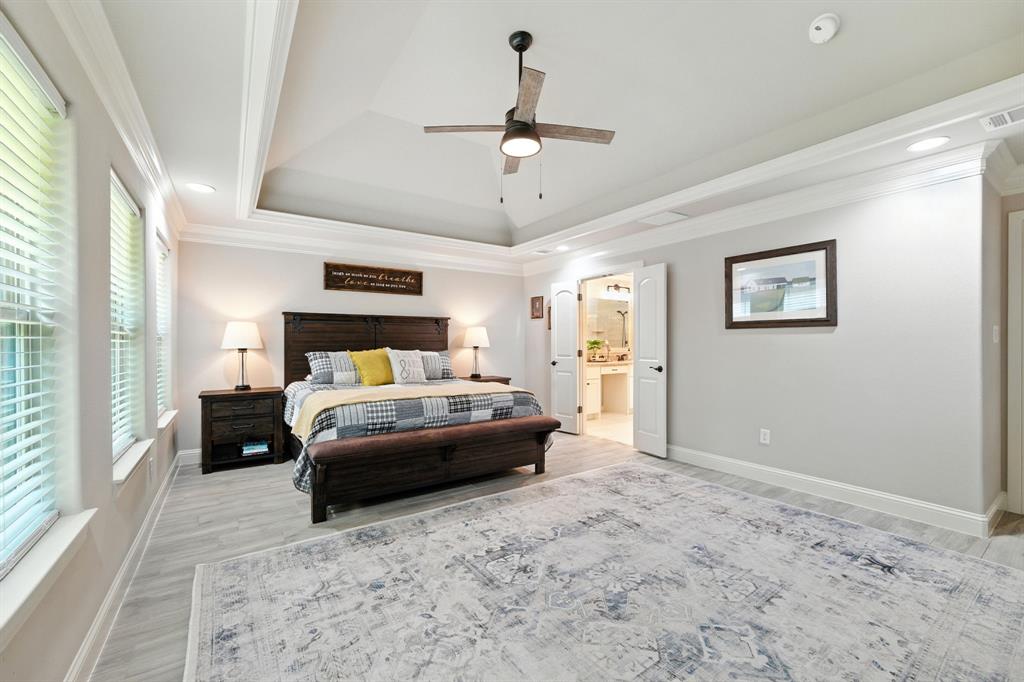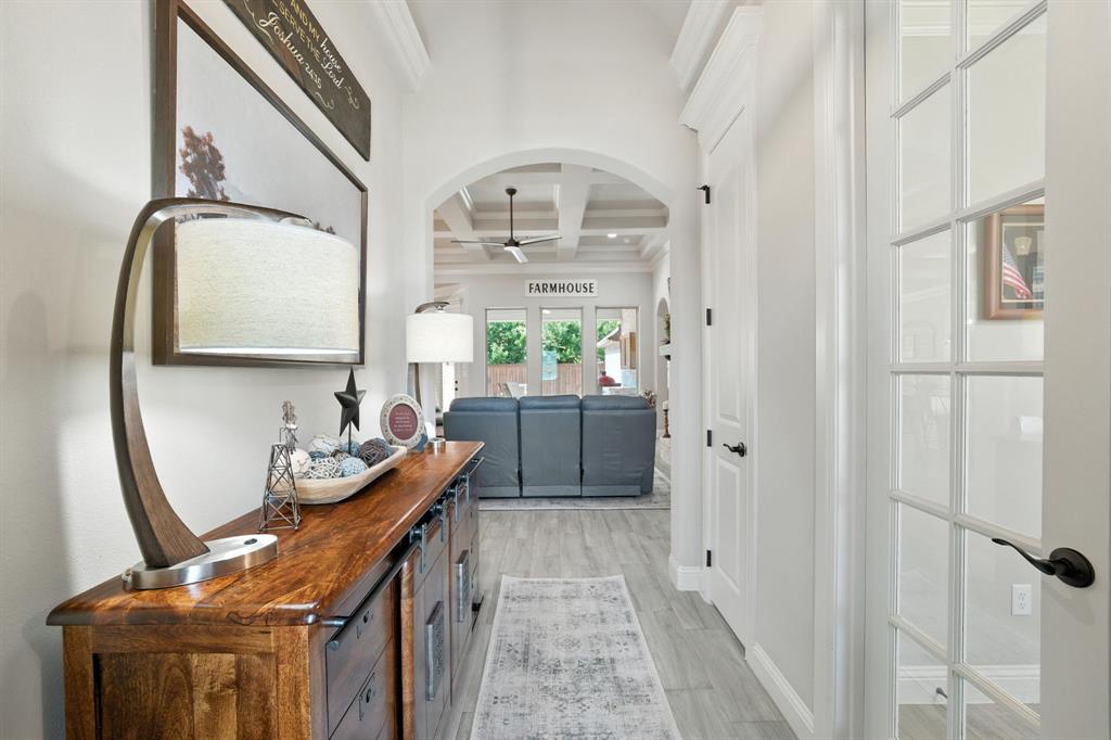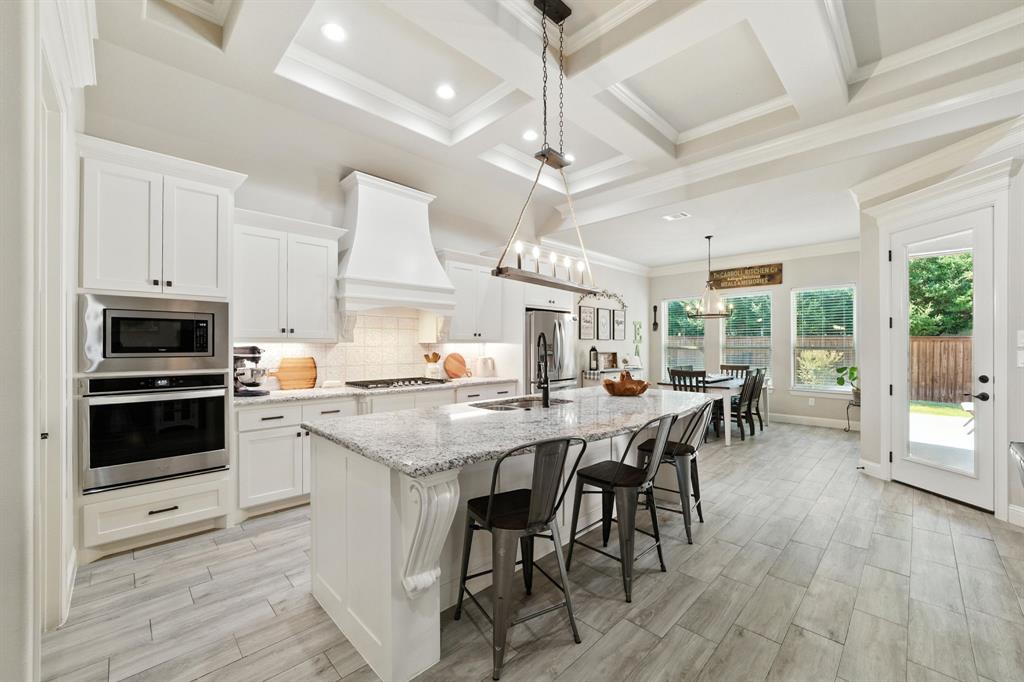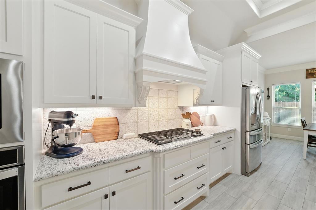 Virtual home - video and 3D tour available via text! This gorgeous home, expertly crafted by Al Couto, resides in an intimate gated community in Harbor Lakes with just 21 other homes, offering a lock-and-leave lifestyle with HOA-managed front and back lawn care. The open-concept layout features wood-look tile flooring, a bright living area with a gas log fireplace, 12ft ceilings, and large windows that bathe the space in natural light. The gourmet kitchen impresses with stainless steel appliances, 5-burner gas range, pantry, and a spacious island with seating, all enhanced by custom cabinetry. Masterful craftsmanship shines through elegant trim and coffered, tray, and vaulted ceilings throughout. The expansive primary suite includes dual sinks, walk-in closet, a water closet, and a luxurious walk-in shower featuring multiple spray heads and a soaking tub. Flexible floor plan with two secondary bedrooms and a dedicated home office provide space for work, play, and guests. In the garage, you’ll appreciate the epoxy floors, storage systems, and recently installed whole-home water filtration and softener system. Outdoors, an extended back patio and fenced yard offer a perfect, low-maintenance space for entertaining. Nestled next to Harbor Lakes Golf Course and a short walk from Lake Granbury, this fantastic location provides easy access to DFW while capturing the charm of Historic Granbury.