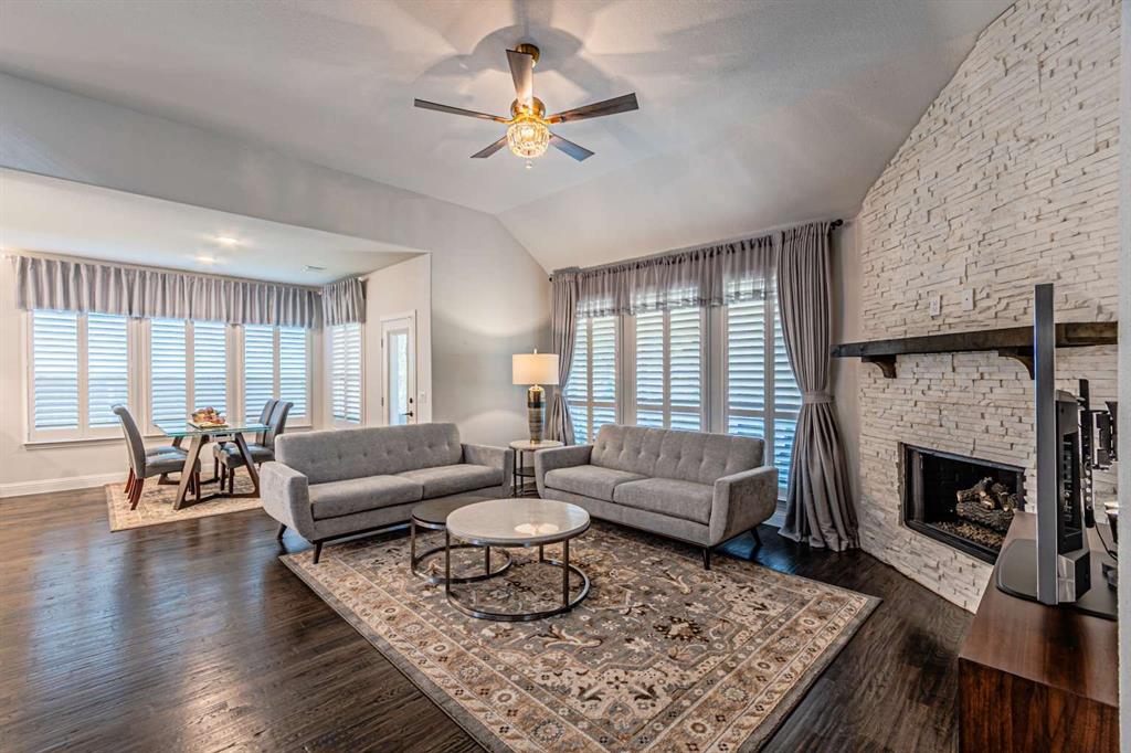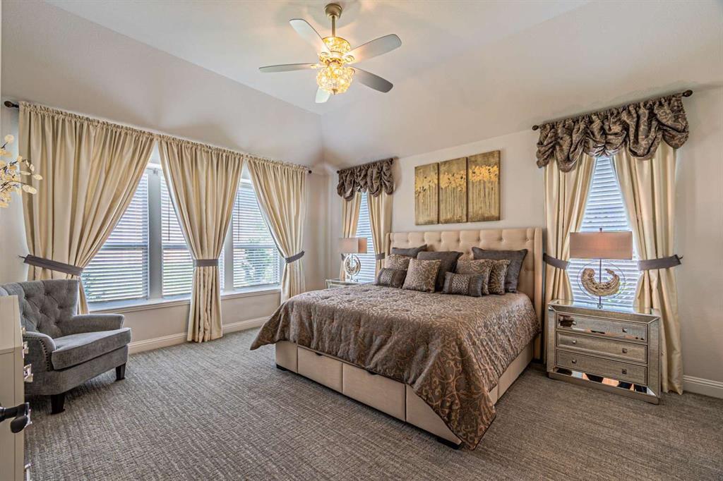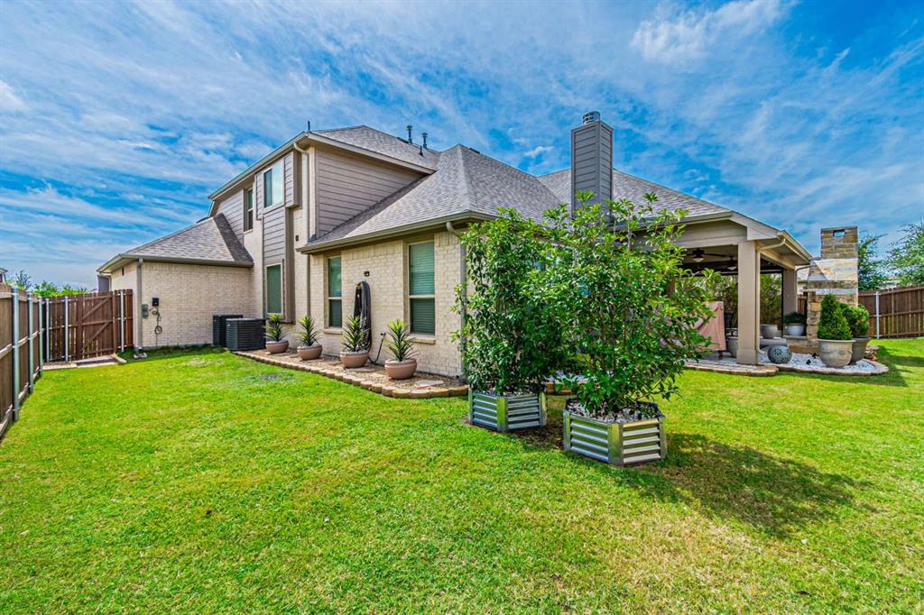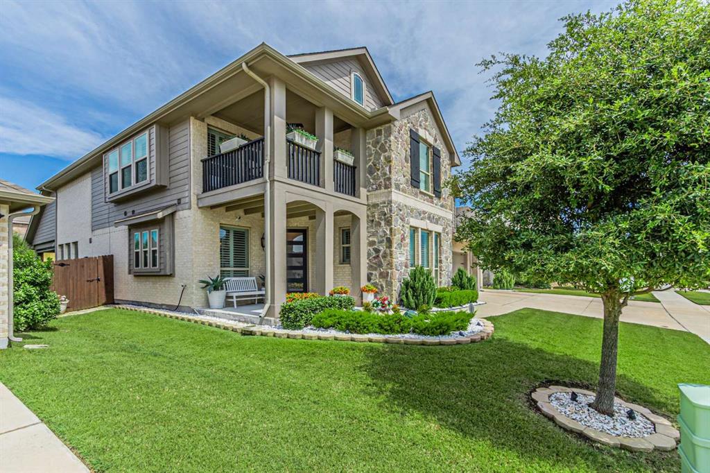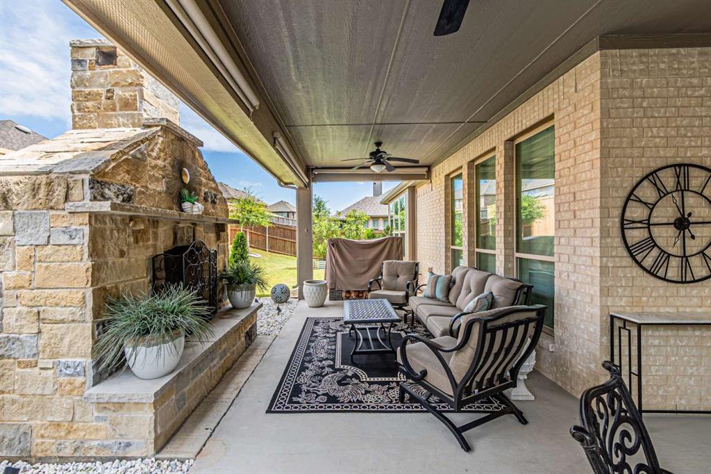 IMMACULATE Like a NEW MODEL HOME! Lux Ambiance! Tons of Upgrades! High-End Finishes! High Ceilings! Open Floorplan! Beautiful Chef's Kitchen! Covered Balcony & Front Porch, 8' Wood Door! Landscaped Yard! Spacious 4 BdRms (2 Primary Ensuites), 3 Full Baths, Powder Rm, Office-French Doors, Formal DR, Game Rm, Media Rm, Hardwood Floors, Lux Carpet, Plantation Shutters. Dine-In Kitchen, SS Bosch Refrigerator & Dishwasher, Microwave Oven Stacked, Gas Cooktop, 42 in Kitchen Cabinets, Pots Pans Drawers, Lg Center Island, Quartz Countertops, Natural Stone Backsplash, Mud Utility Rm, 42 in Cabinets Above WD, Built-In Cabinet for Coats and Shoes, LR has Beautiful Floor to Ceiling Stacked Stone Gas Log FP. Entertain Guests Under Your 26'X15' Covered Patio! During the Cool Evenings, Light a Fire, Relax in Front of Your Outdoor Stone FP. Blackstone Grill! Gas Drop. High Fencing! Attic Storage! Alarm System! (Furniture, WD Available). Fast-Growing Popular Area! Walk to Schools Parks! Near Shopping!