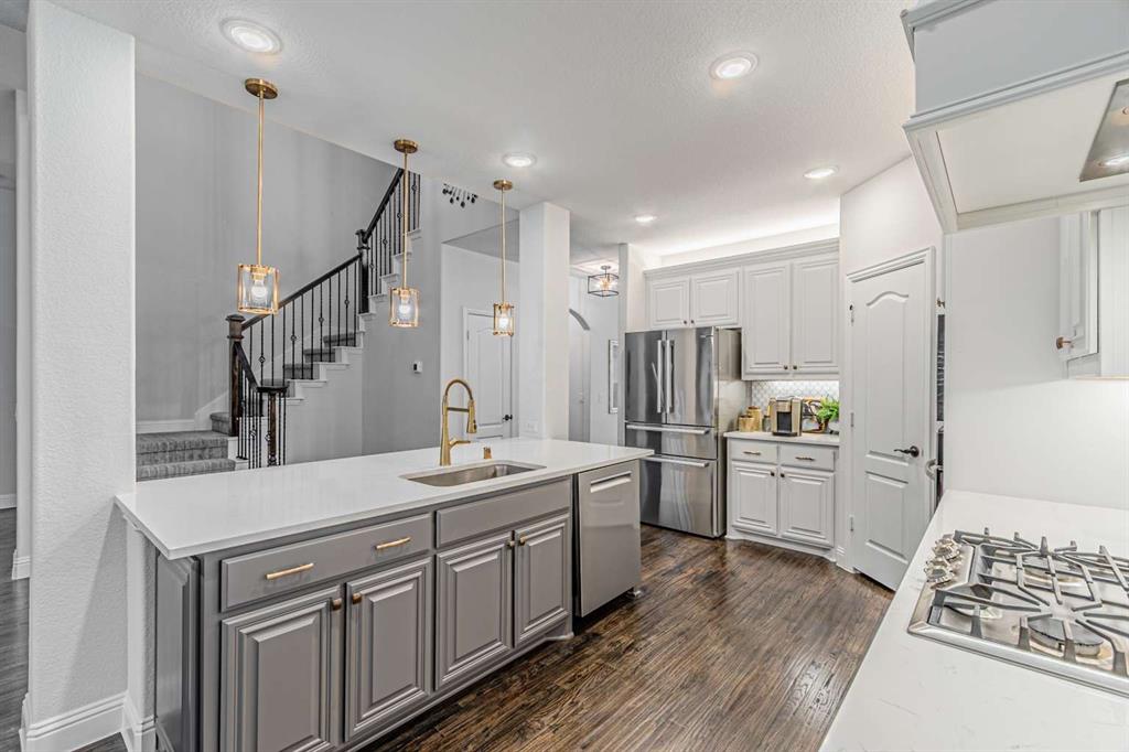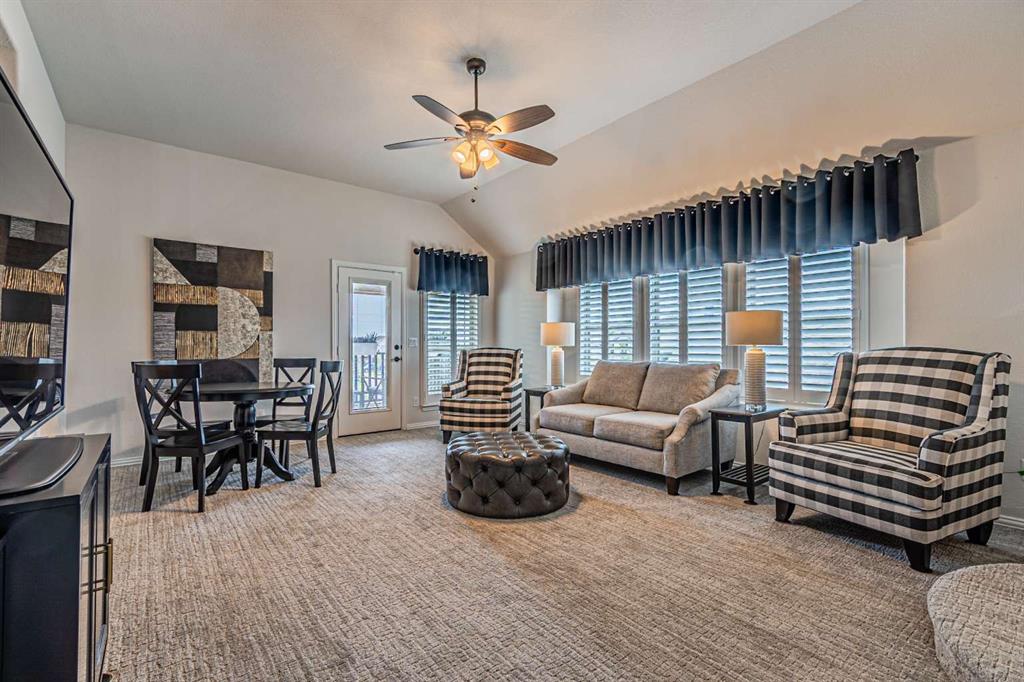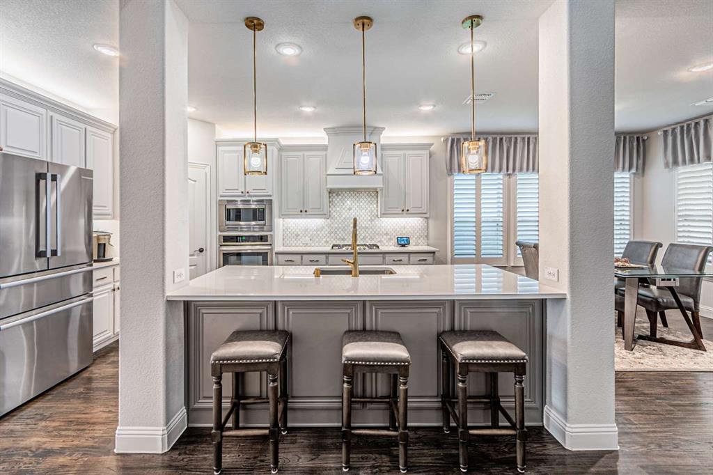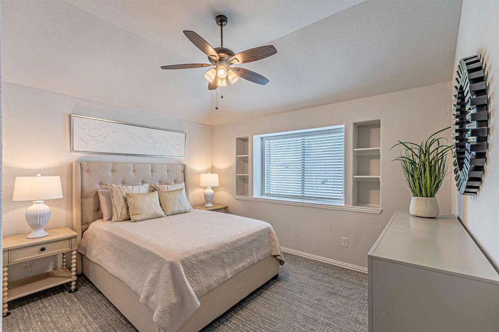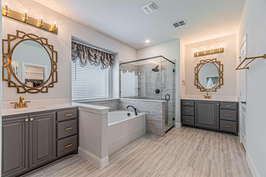 IMMACULATE Like a NEW MODEL HOME! Lux Ambiance! Tons of Upgrades! High-End Finishes! High Ceilings! Open Floorplan! Beautiful Chef's Kitchen! Covered Balcony & Front Porch, 8' Wood Door! Landscaped Yard! Spacious 4 BdRms (2 Primary Ensuites), 3 Full Baths, Powder Rm, Office-French Doors, Formal DR, Game Rm, Media Rm, Hardwood Floors, Lux Carpet, Plantation Shutters. Dine-In Kitchen, SS Bosch Refrigerator & Dishwasher, Microwave Oven Stacked, Gas Cooktop, 42 in Kitchen Cabinets, Pots Pans Drawers, Lg Center Island, Quartz Countertops, Natural Stone Backsplash, Mud Utility Rm, 42 in Cabinets Above WD, Built-In Cabinet for Coats and Shoes, LR has Beautiful Floor to Ceiling Stacked Stone Gas Log FP. Entertain Guests Under Your 26'X15' Covered Patio! During the Cool Evenings, Light a Fire, Relax in Front of Your Outdoor Stone FP. Blackstone Grill! Gas Drop. High Fencing! Attic Storage! Alarm System! (Furniture, WD Available). Fast-Growing Popular Area! Walk to Schools Parks! Near Shopping!