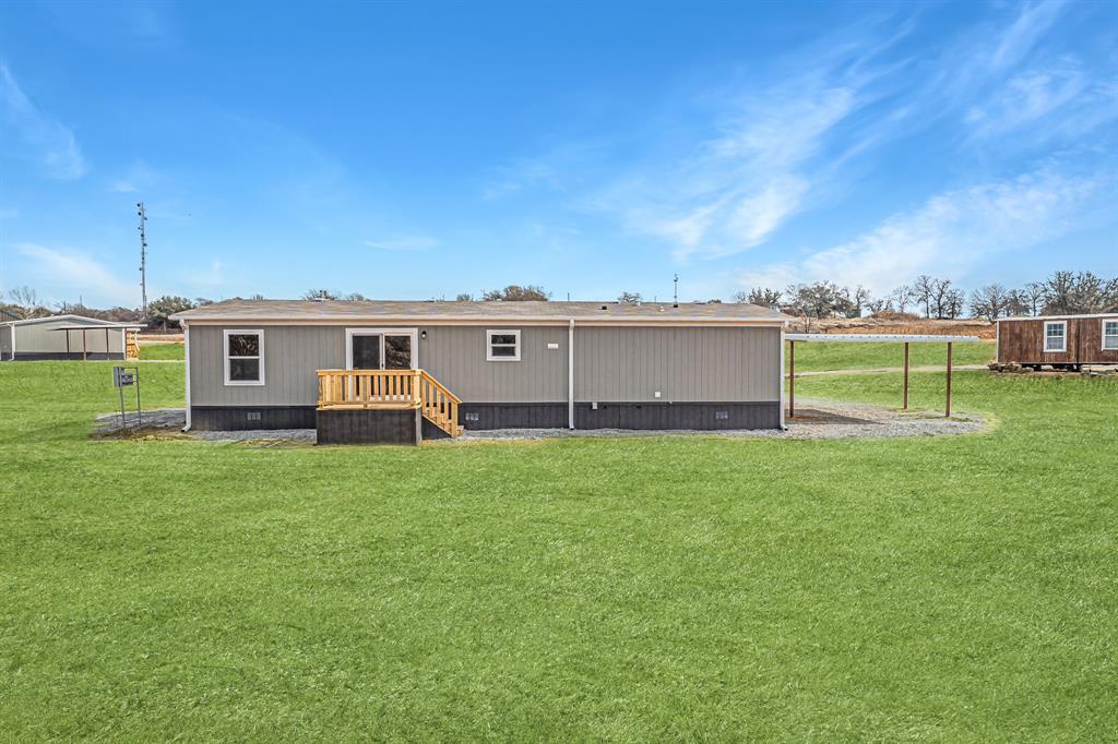 Desirable Morris Estates just outside the city limits, offering this beautiful new home on over 1.5+ acres nestled in a cul-de-sac. As you step inside, notice the thoughtfully designed layout that maximizes functionality and style. The bedrooms provide ample room for relaxation, while the two well-appointed bathrooms offer convenience for everyone. You will find a range of modern amenities to enhance your daily living experience. The kitchen is complete with a refrigerator, dishwasher, range, vented hood, recessed lighting, island, and beautiful accent backsplash. One of the standout features of this property is the delightful outdoor space. Enjoy your morning coffee or evening barbecue on your 10x18 covered front deck or the charming 8x8 back deck. The 20x20 carport provides shelter for your vehicles, ensuring they stay protected from the elements year-round. The skirting is upgraded to smart panel. A one-year manufacturer's warranty is included. Situated in Springtown, you will enjoy the benefits of small-town living while still being within close proximity to larger cities. No HOA!
