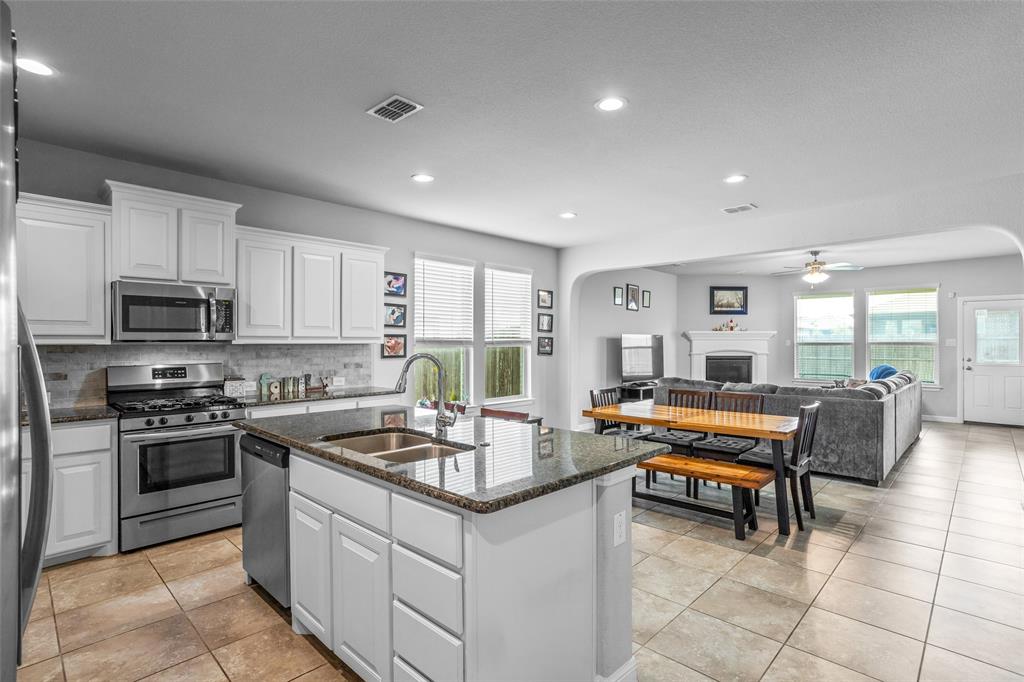Wow! This stunning 4 bedroom, 2 bath home in the highly sought after Basswood Crossing community is a must see. The open concept floor plan offers a spacious living area with a cozy fireplace, perfect for gatherings. The kitchen features beautiful granite countertops, ideal for both cooking and entertaining. Retreat to the generous primary suite, complete with a luxurious bath offering double sinks, a separate shower, a garden tub, and a large walk in closet. Enjoy the comfort of both carpet and tile flooring throughout. Step outside to a covered patio that's perfect for relaxing or hosting guests in any weather. Don’t miss your chance and schedule your showing today and make this beautiful home yours!