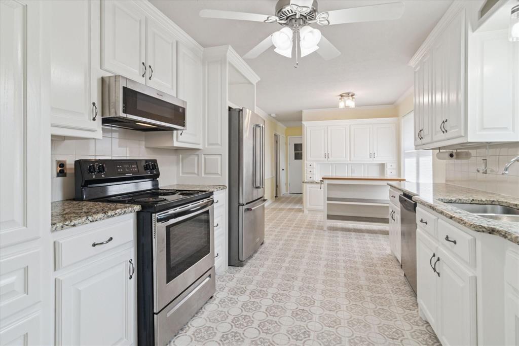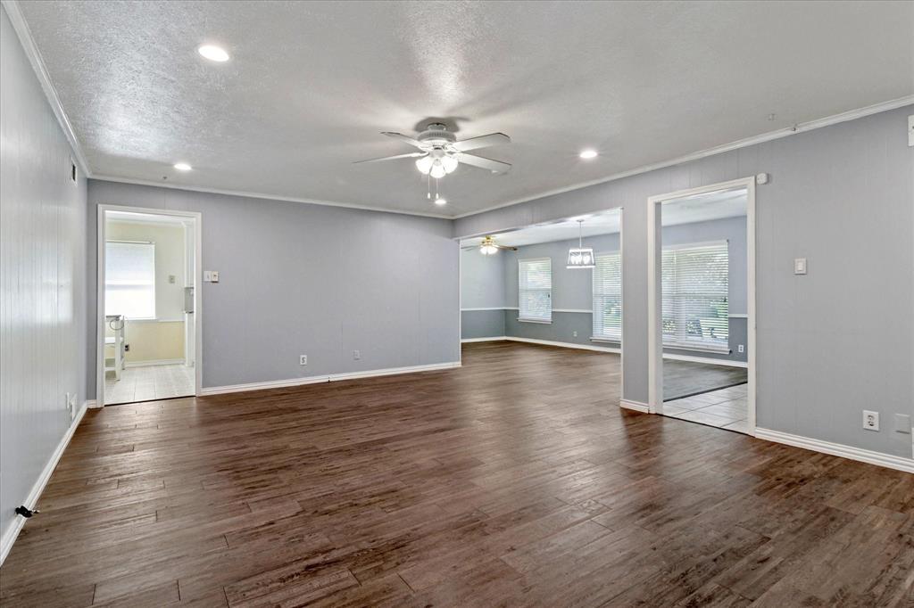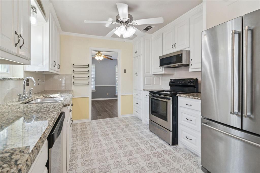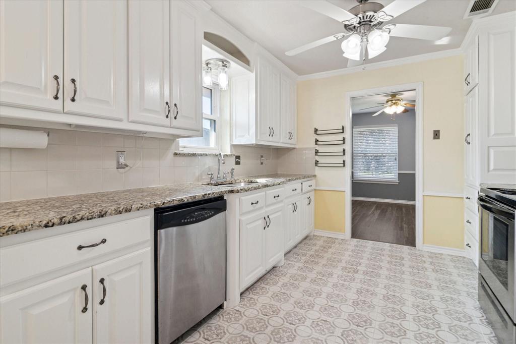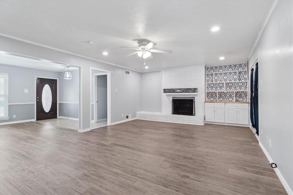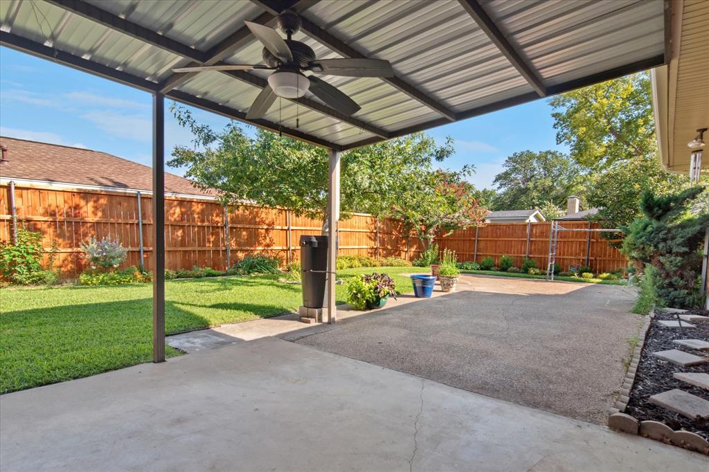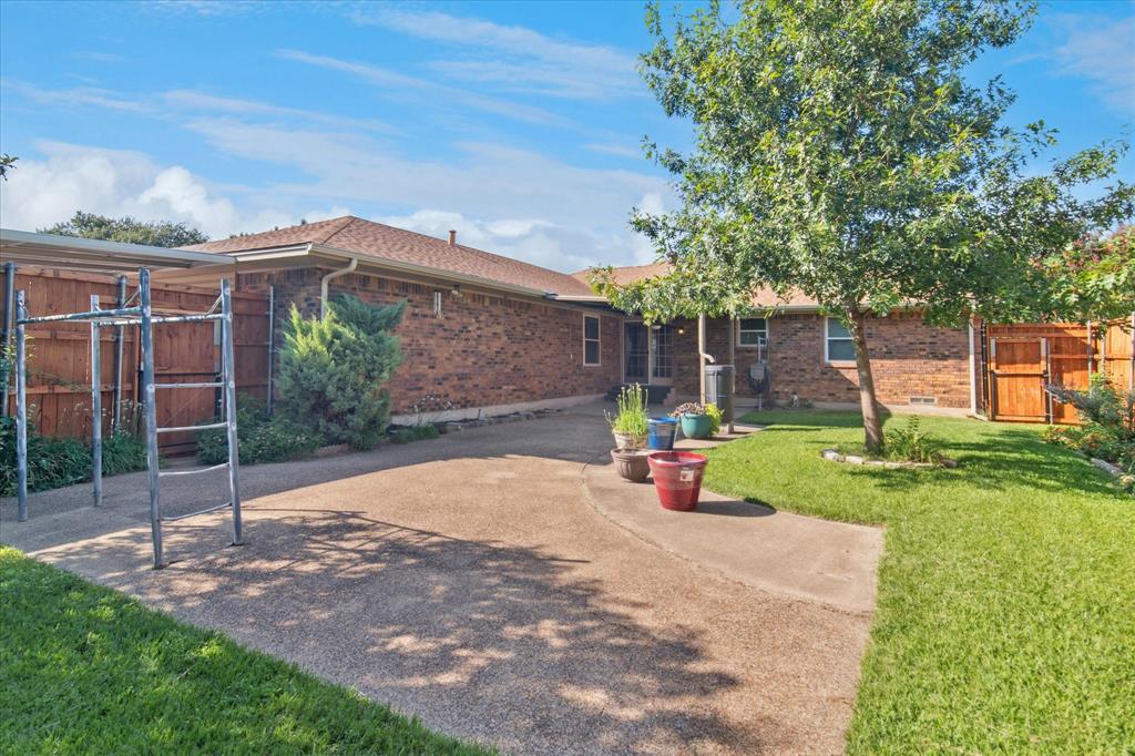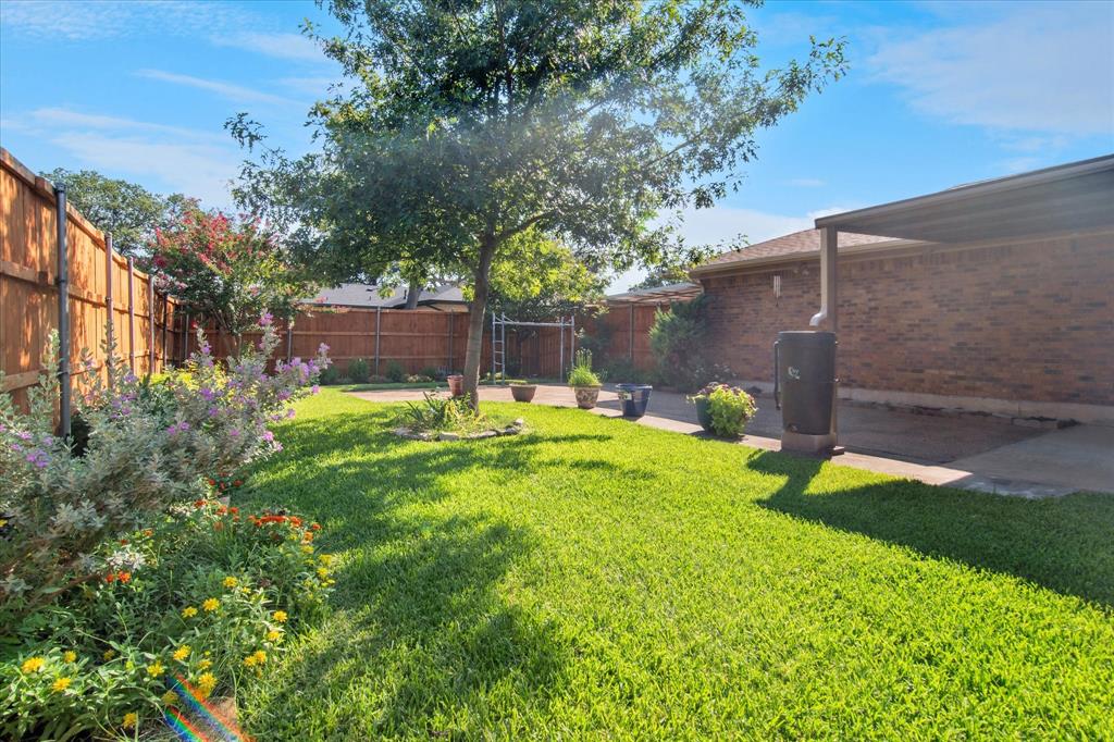 Wonderful 4 bedroom, 2 full bath, 1 half bath traditional in Garland's established Southgate Acres neighborhood. Welcoming entry leads to formal dining area, living area, and is open to the den with gas log fireplace and bult-in, all with engineered wood flooring. The kitchen boasts custom cabinets, granite countertops, stainless undermount sink, decorative tile floors. Large primary bedroom with walk-in closet, ensuite bathroom with dual sinks, tub shower combo. Spacious secondary bedrooms, 4th bedroom currently serving as home office. Great drive-up appeal, beautifully landscaped, backyard features covered patio, water collection tank, 8’ privacy fence, storage shed. Home has been meticulously maintained and owner recent major updates of HVAC system (2024) and Roof (2025) gives the new owner peace of mind.