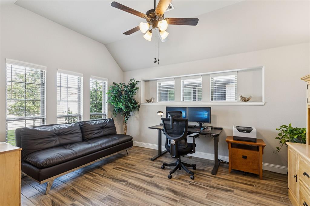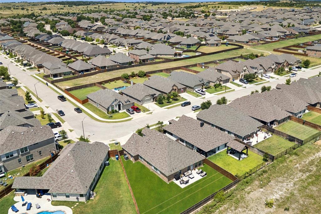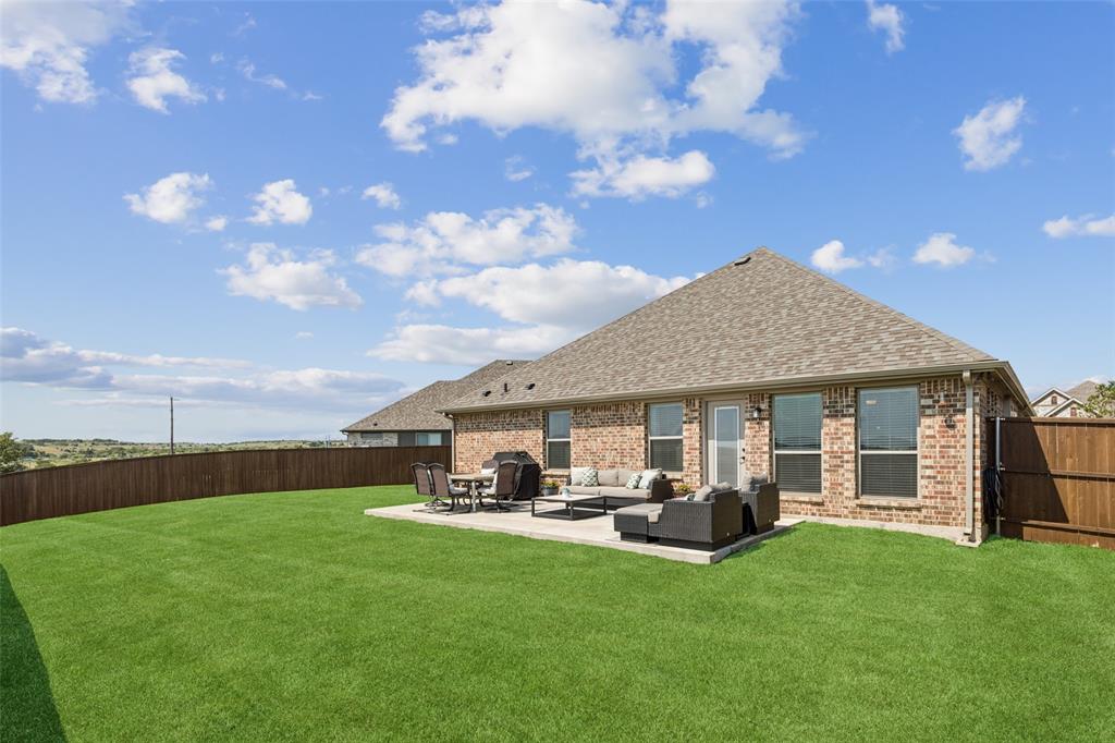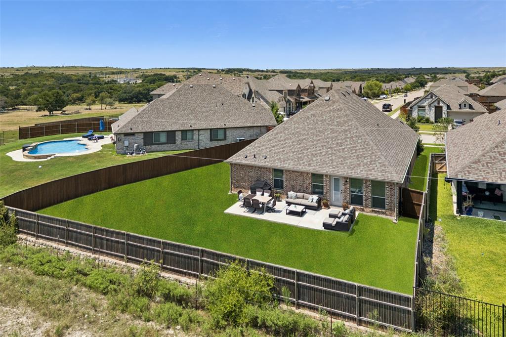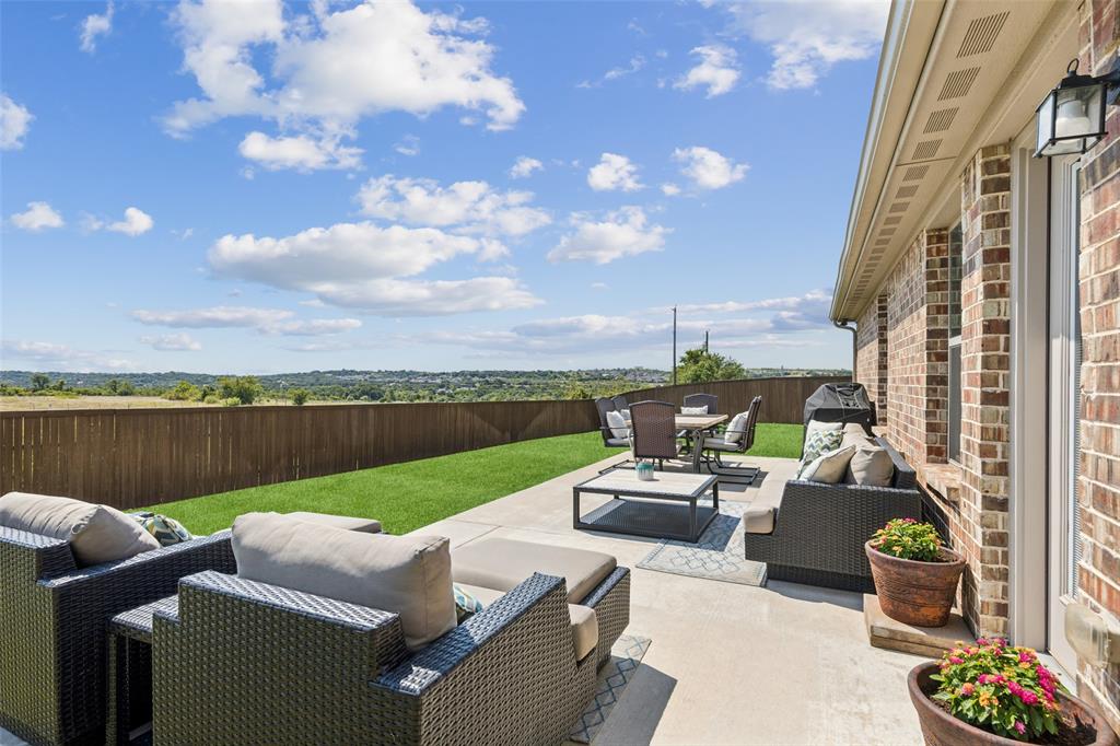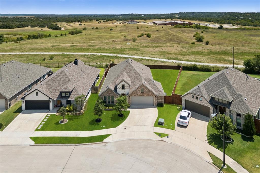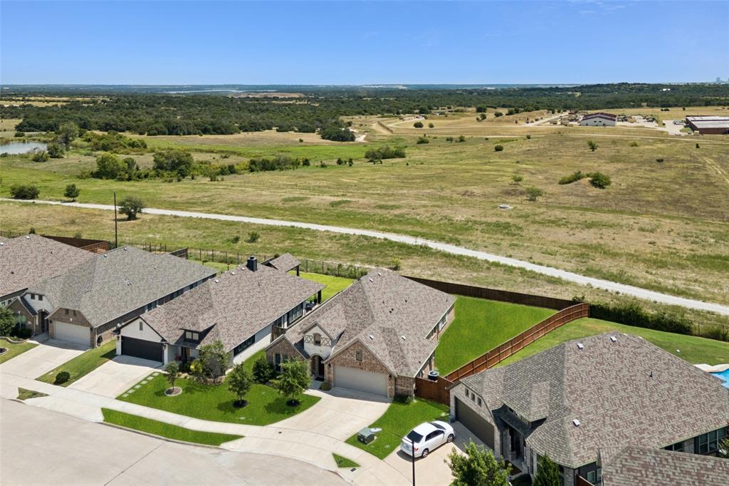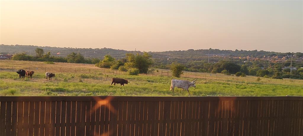 Enjoy breathtaking 180-degree views from the backyard of this beautiful one-story brick home, overlooking a working ranch where livestock often wander right up to your fence line. The sweeping panorama extends over 10 miles toward Fort Worth, offering a peaceful country feel while still being conveniently close to the city. Whether it’s sipping your morning coffee or BBQing steaks on the patio, this serene setting makes every moment special. Located on a partial cul-de-sac, the large, private backyard offers plenty of room to play, garden, or even build a pool and outside oasis. Inside, the open kitchen concept flows seamlessly into the living room and formal dining area creating a spacious and inviting atmosphere perfect for entertaining or relaxing. A large office at the front of the home, and a 4th centralized bedroom can serve as a flex room, workout room or a play area providing flexibility for your every need. Recent updates due to hail storm include a new roof, gutters, and fence stain. Additional move-in ready upgrades include interior paint in 2025, a freshly stained front door, upgraded higher toilets and new AC evaporative cooler in late 2024. Current owner has consistently maintained pest control services and HVAC bi-annual maintenance contract. Welcome to your new home - safe, peaceful, and filled with friendly neighbors and community events. If you’ve been dreaming of wide-open views, quiet evenings, and a home that’s been lovingly cared for, this property is a must see. Formal dining room furniture and the granite top patio table that seats 6 and its chairs convey for free with the property. 3D tour available online. Mortgage savings may be available for buyers of this listing.
