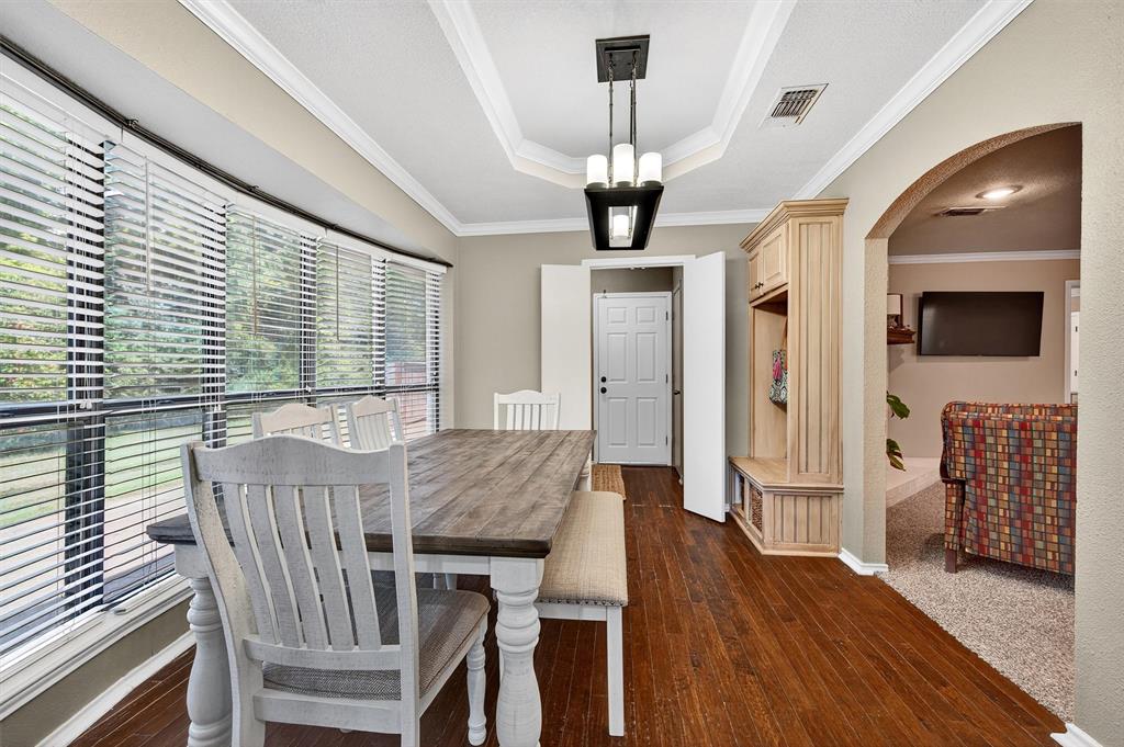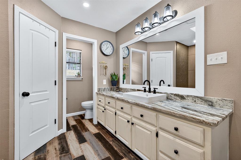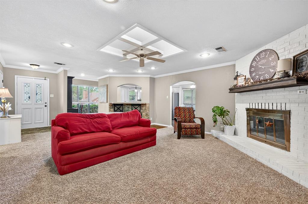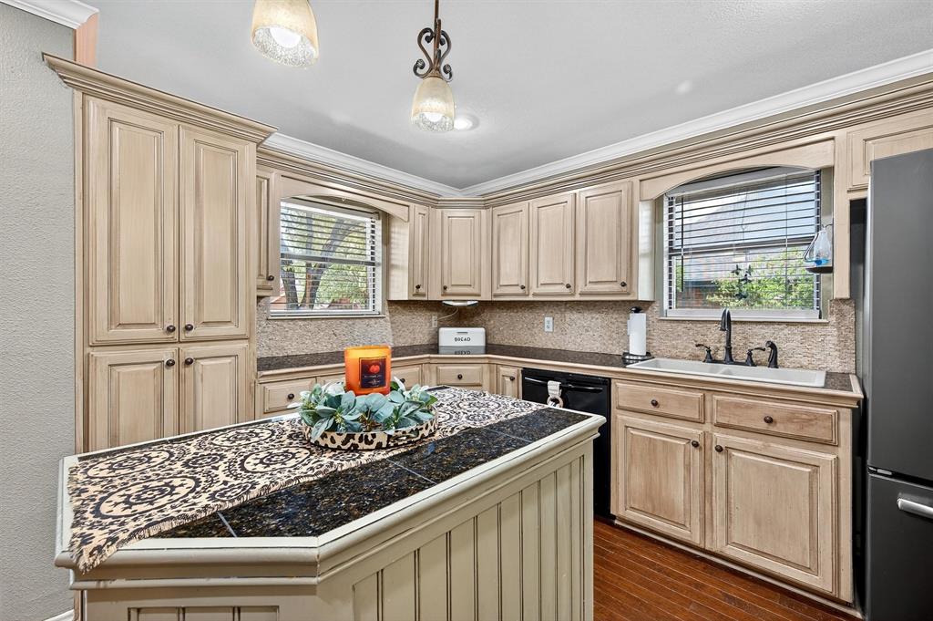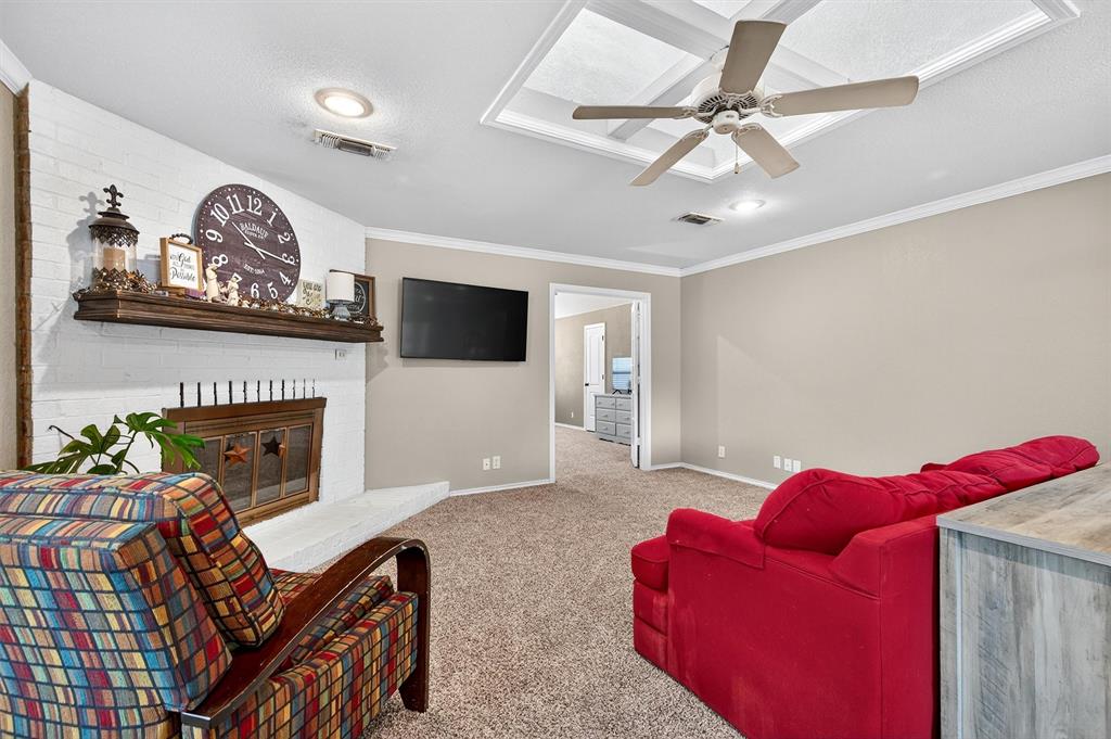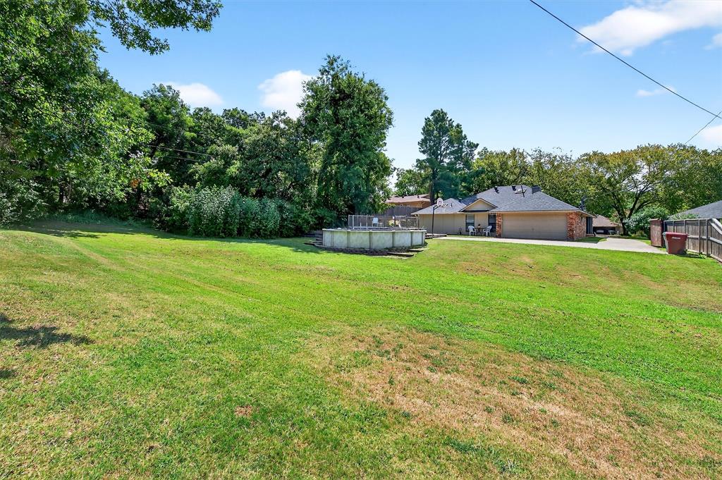 The property at 1109 W Belden Street in Sherman, Texas, is a charming home situated in a tranquil neighborhood. Built in 1986, this home offers a comfortable living space with 4 bedrooms and 2 bathrooms, encompassing 1,939 square feet. The home is located on a quiet cul-de-sac, providing peace and quiet. Step inside to find a large living area with plenty of natural light and a wood burning fireplace. The kitchen is equipped with an island, breakfast bar, and plenty of countertop and cabinet space. A great feature is the large primary bedroom located at the back of the home, providing privacy. It includes an ensuite bath with a spacious walk in shower and double closet spaces, offering ample storage. The secondary rooms are also good in size with walk in closet spaces. Additional amenities include an attached garage, a large .42 acre lot, an above ground pool and mature trees that enhance curb appeal. Located in a convenient and sought after West Sherman neighborhood with close proximity to Fairview Park as well as Highway 75 access.