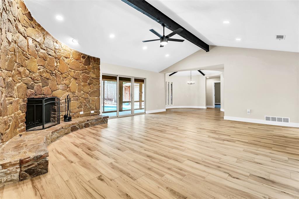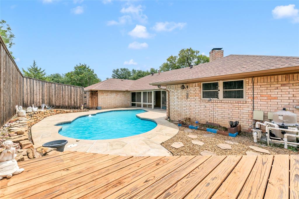 JUST REDUCED! BACK ON THE MARKET – Buyer's financing fell through! Don’t miss this move-in ready home in a desirable neighborhood in DeSoto! This fully renovated home features 4 spacious bedrooms, 2 modern bathrooms, and a private backyard pool, perfect for families and entertaining. The updated kitchen boasts quartz countertops, subway tile backsplash, custom vent hood, and new stainless-steel appliances, while the primary suite offers a spa-inspired bathroom with soaking tub, walk-in closet, and custom shelving. Enjoy new flooring throughout, fresh paint, recessed lighting, and remote-control ceiling fans, plus a stylish bar and sunroom ideal for gatherings. Additional highlights include a fenced backyard with pool and freshly painted deck, walk-in laundry room, storage shed, 2-car garage, and NEW HVAC. This renovated, move-in ready home combines modern upgrades with functional spaces, making it a perfect family home.
