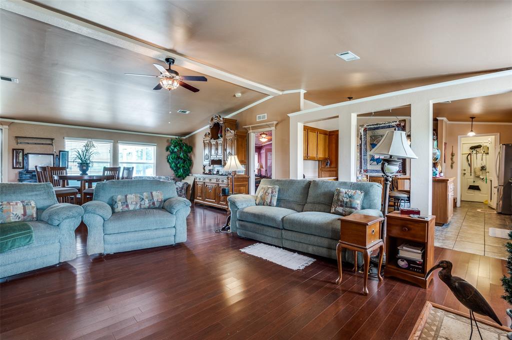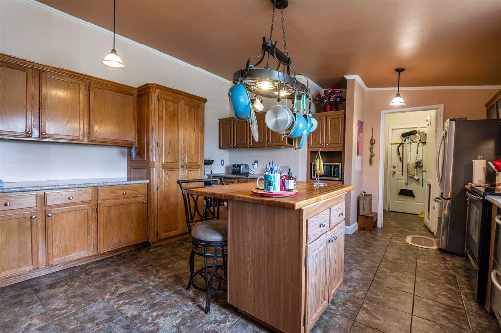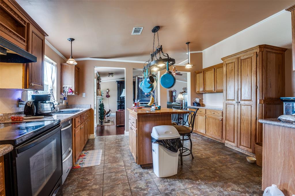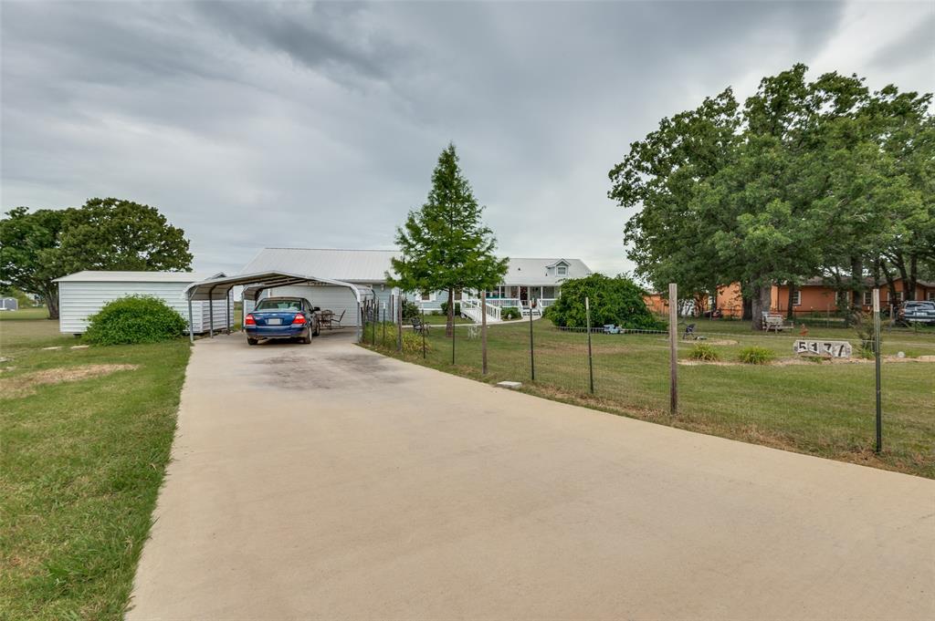 Tucked away in a peaceful setting, 5177 Timarron Drive offers the perfect blend of charm, comfort, and space. Set on just over an acre, this beautifully maintained 3-bedroom, 2-bathroom home with two living areas is surrounded by open skies and quiet country views. Step inside to find warm hardwood flooring throughout the main living spaces, complemented by tile in the kitchen and bathrooms for easy maintenance. The expansive kitchen is a chef’s dream—featuring abundant cabinetry, a center island, and a butler’s pantry for added storage and prep space. The open layout makes it easy to host, cook, or simply enjoy everyday moments with loved ones. The primary suite is a peaceful retreat, complete with a spa-inspired ensuite bathroom boasting a double vanity, oversized soaking tub, and separate walk-in shower. The second living area is versatile—perfect for a home office, nursery, playroom, or cozy sitting room. Outdoors, enjoy the large covered front deck—ideal for morning coffee or winding down in the evenings. The sprawling front yard is dotted with mature shade trees, charming seating areas, and plenty of room to garden, play, or simply enjoy the open space. A metal roof, freshly painted decks, detached garage, concrete driveway, and carport add lasting value and functionality to the property. With plenty of room to roam and no city hustle, this home offers the best of Texas country living—just close enough to enjoy modern conveniences when needed.