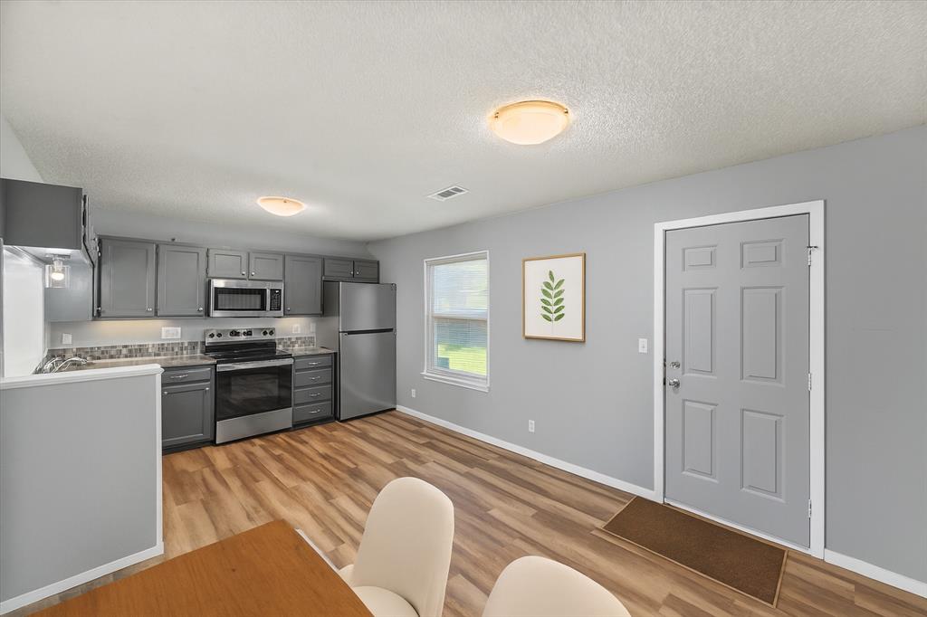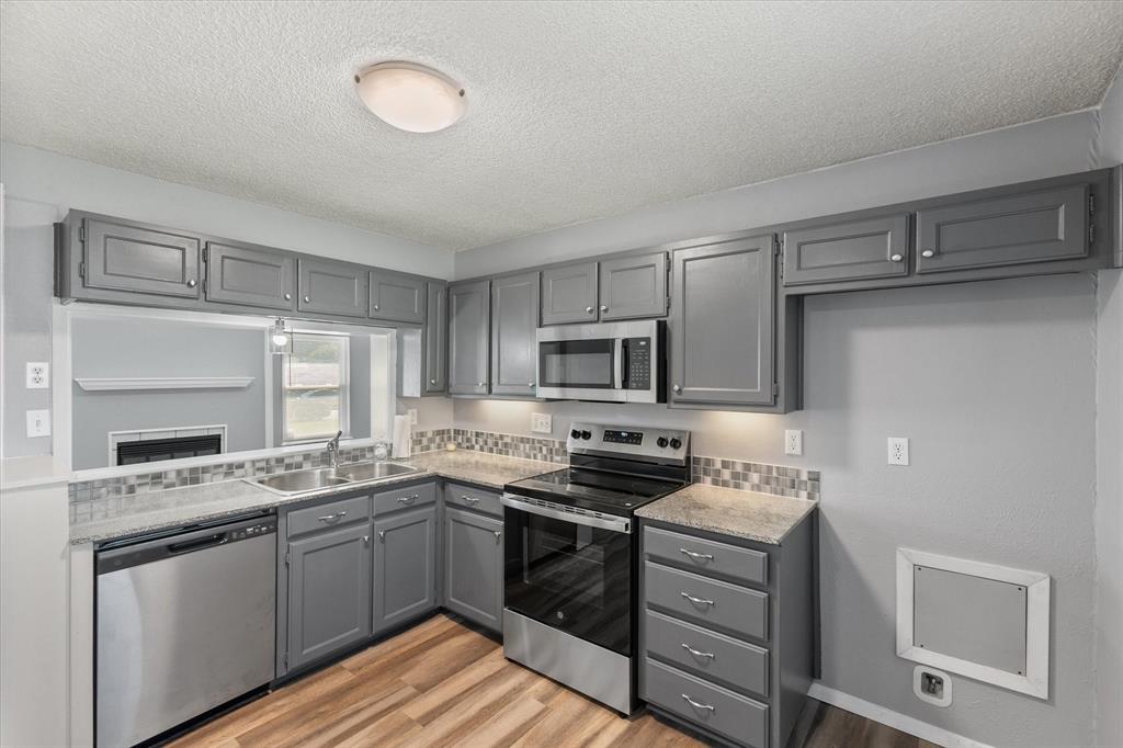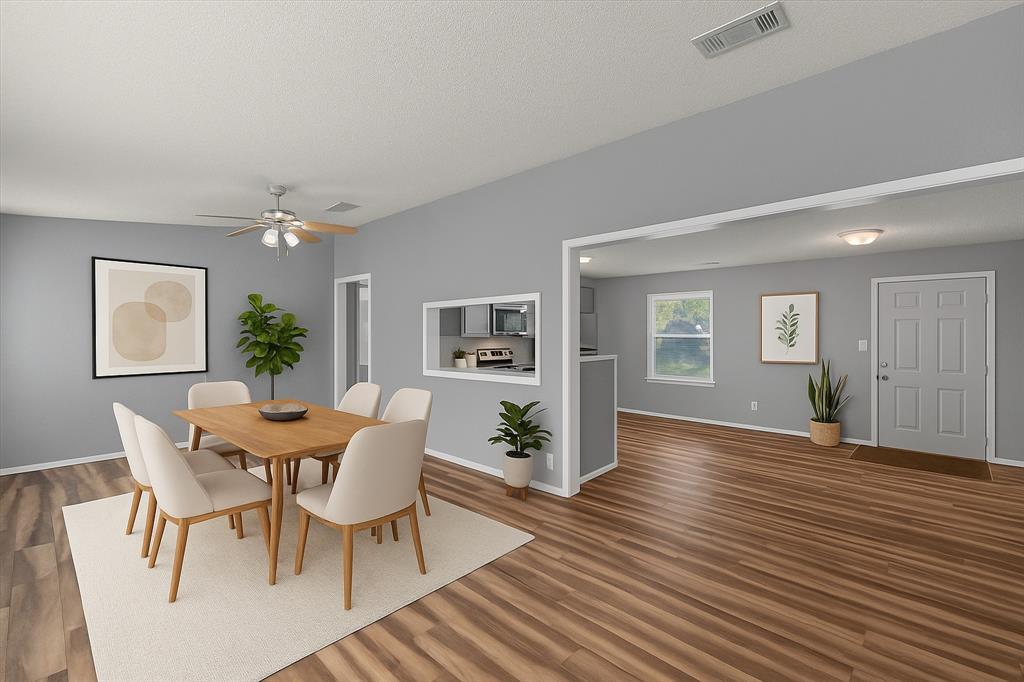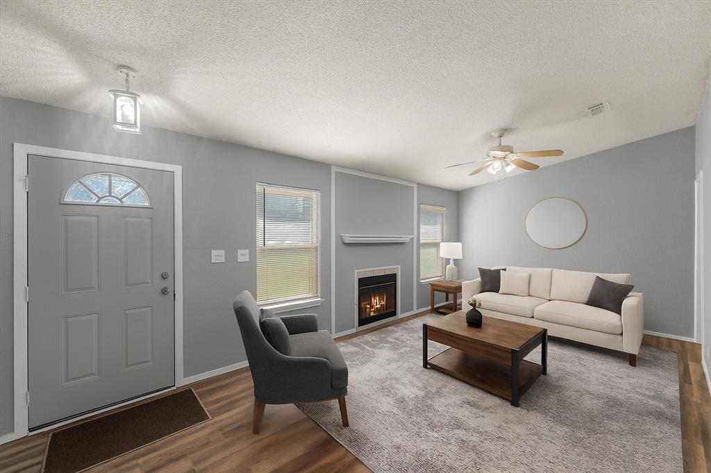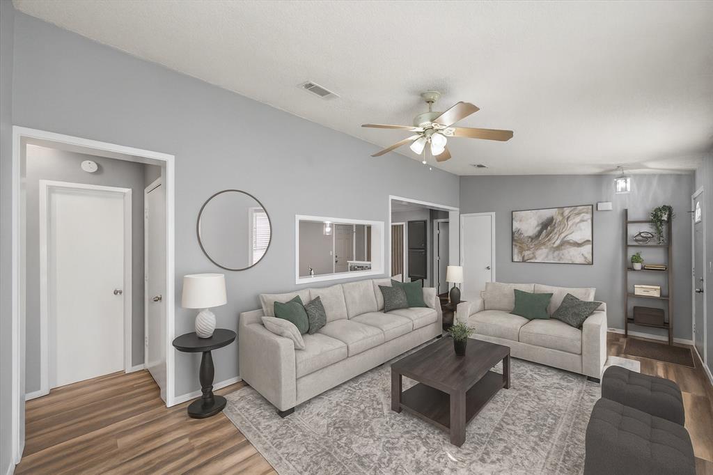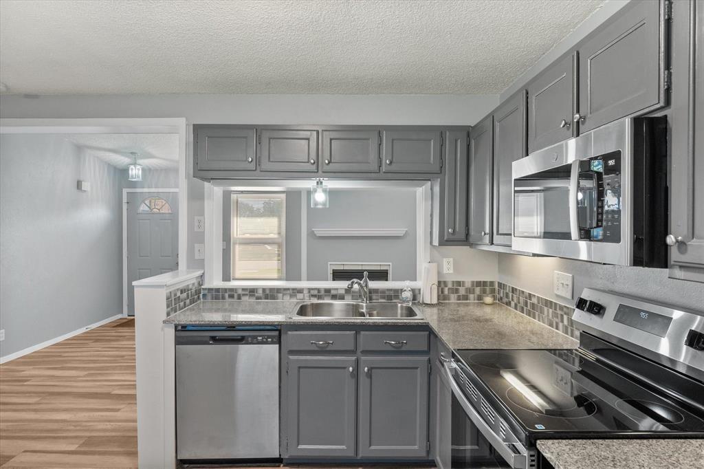 Step into this updated 3-bedroom, 2-bathroom home offering 1,250 square feet of comfort and style. The open layout features upgraded luxury vinyl plank flooring throughout the living areas, with plush new carpet in all bedrooms. The kitchen is modern and functional, complete with quartz countertops, sleek new appliances, and ample space for cooking.