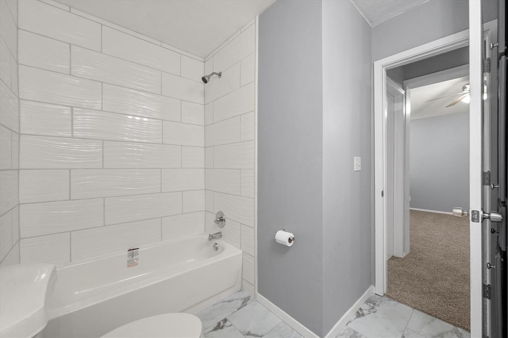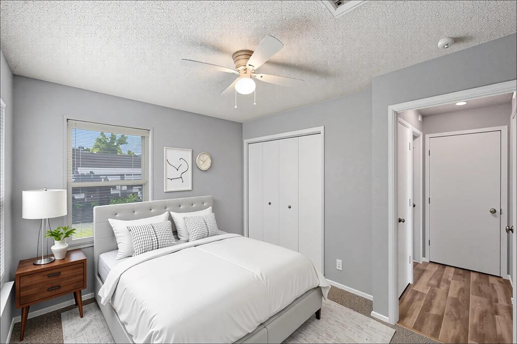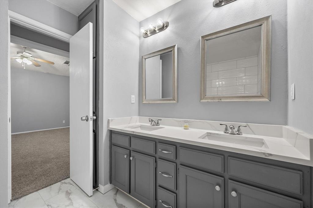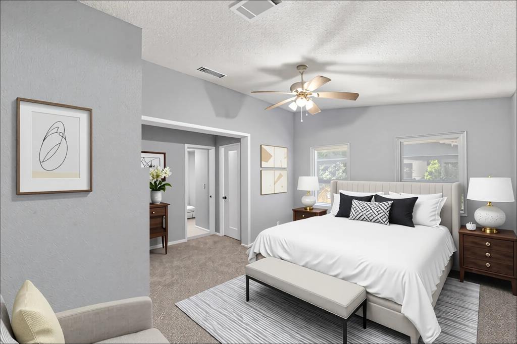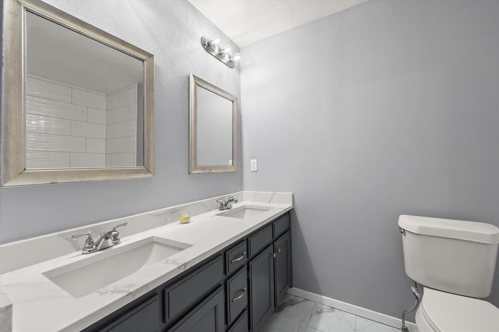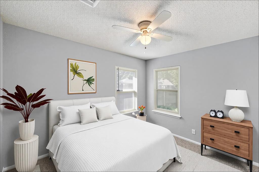 Both bathrooms continue the contemporary look with coordinating quartz countertops and fresh tile finishes. The primary bedroom offers a quiet retreat, while two additional bedrooms create flexibility for guests, a home office, or hobbies.