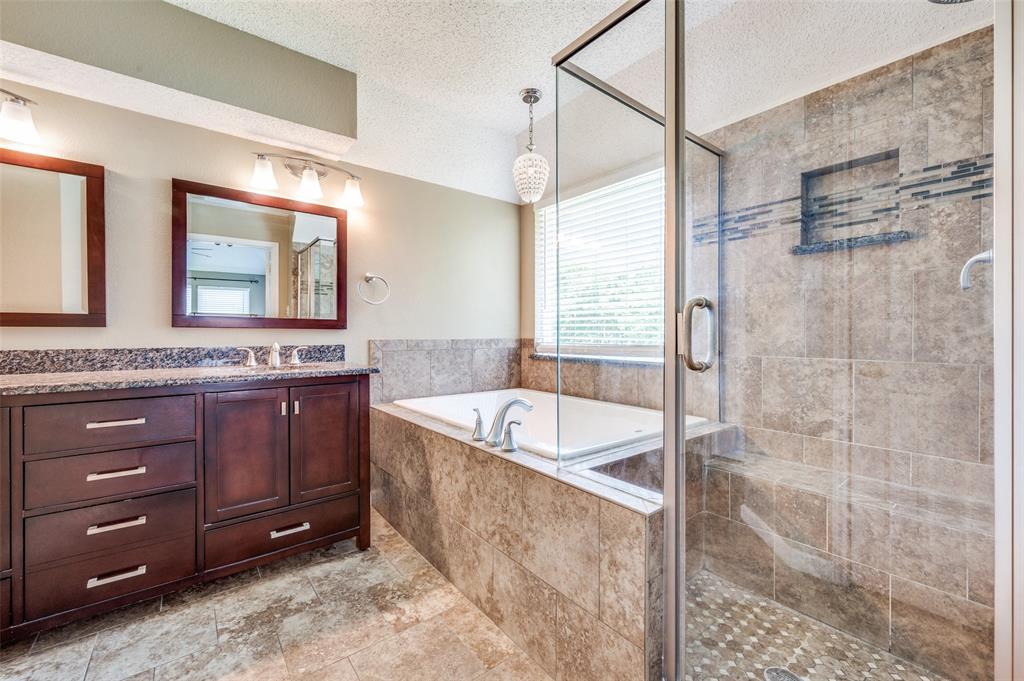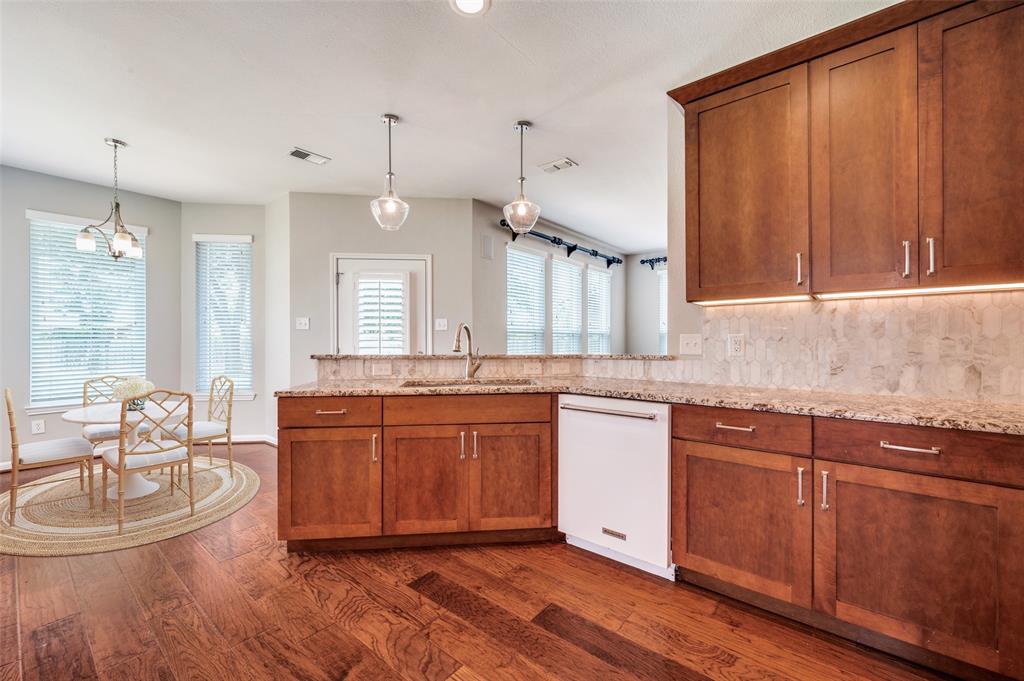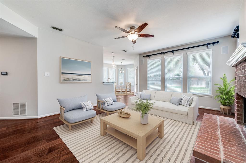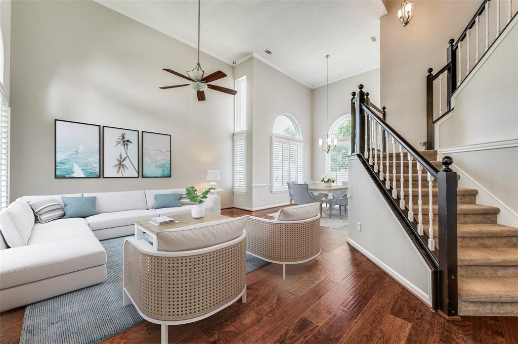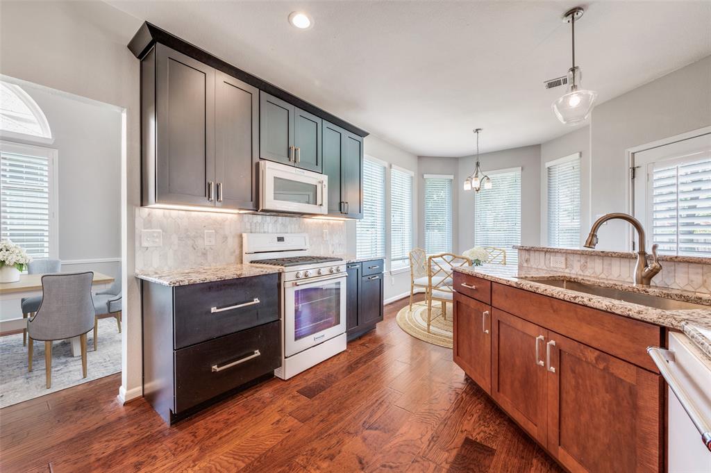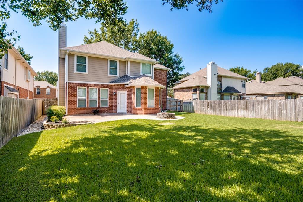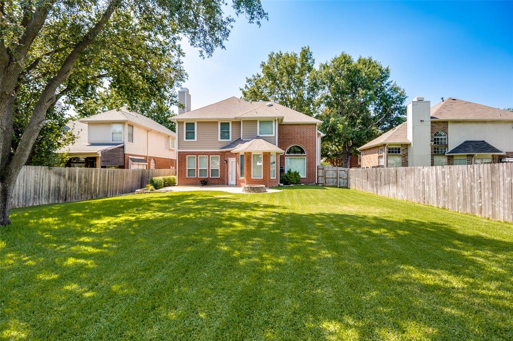 Stunning 3-bedroom, 2.1-bath, two-story home in Hunters Gate, a quiet and established neighborhood with no HOA. Zoned to Plano ISD and within walking distance to Carlisle Elementary and Schimelpfenig Middle Schools, this home offers beautiful curb appeal, thoughtful updates, and plantation shutters throughout. The formal living and dining rooms are filled with natural light and soaring ceilings, perfect for entertaining, with the dining room offering direct kitchen access for ease of hosting. The kitchen features granite countertops, under-cabinet lighting, and a gas range, and overlooks the breakfast nook and family room with a cozy gas brick fireplace. The spacious primary suite boasts a vaulted ceiling and an updated ensuite with a walk-in shower, soaking tub, dual vanities, and a walk-in closet. Two generously sized secondary bedrooms share a full bath. Light, bright, and move-in ready, the home also features an enormous backyard with an open patio and space for a pool. Just minutes from Legacy West’s premier shopping, dining, and entertainment, this home offers the perfect blend of tranquil suburban living and convenient city access.