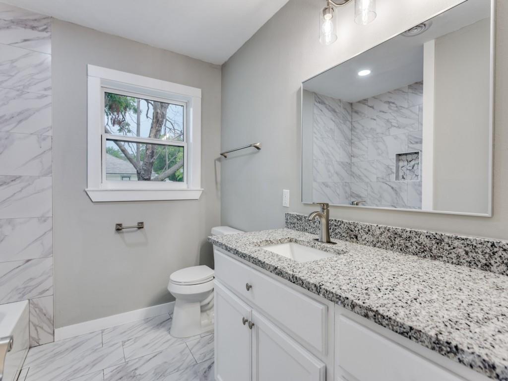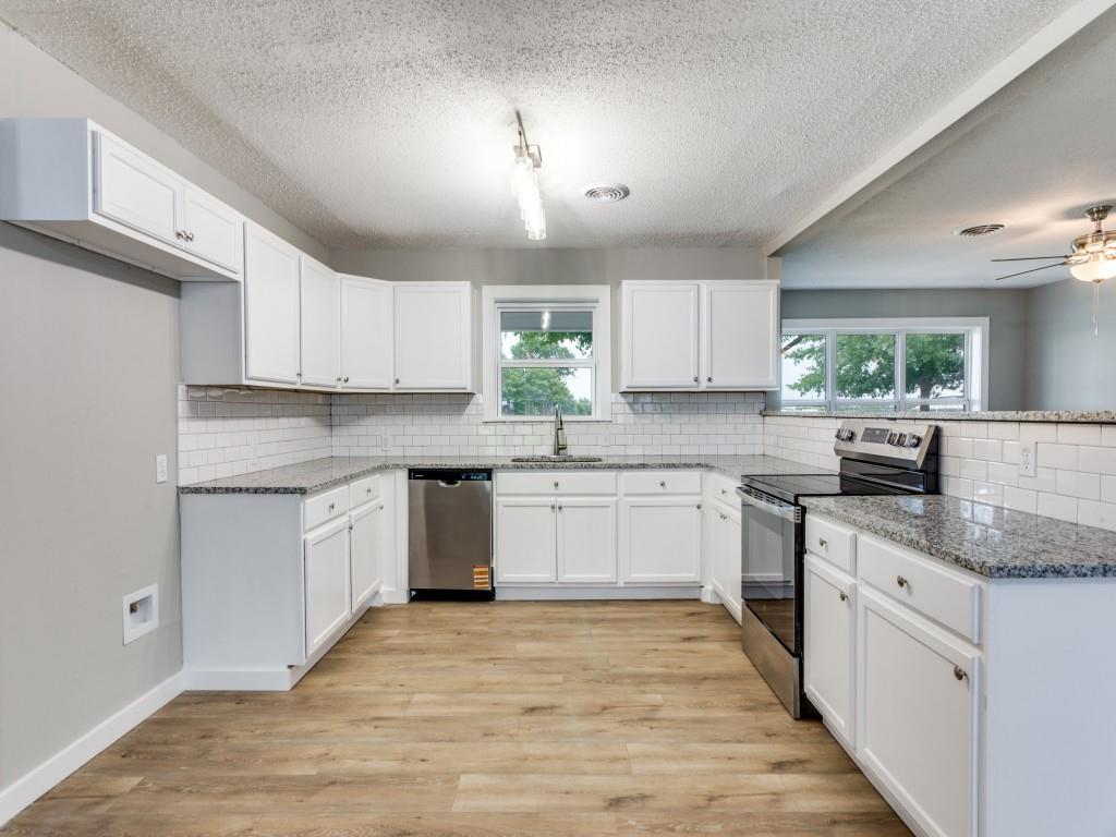 BEAUTIFULLY REMODELED MOVE IN READY HOME IN GRANDVIEW! This home has been updated with ALL NEW roof, windows, HVAC, granite countertops, stainless steel appliances, tile, wood floor, carpet, plumbing and light fixtures, paint inside and out and MORE! When you pull up you'll see the freshly painted exterior with cedar accents and mature trees. Inside you'll find an open floorplan and a brand new kitchen with subway tile backsplash and plenty of cabinets and countertop space. The HUGE master suite features barn doors, one to a large walk in closet and the master bathroom with an oversized walk in shower. The laundry room is oversized and has a half bathroom right off of it. The fenced in backyard features a shed and the carport fits 3 cars. The lot is beautiful with so many trees. This is a GREAT home at a great price that's ready for it's new owner.