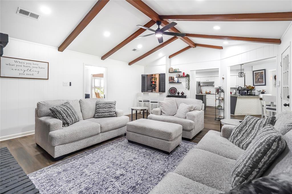 Step outside and the possibilities expand. The backyard is thoughtfully divided into three distinct areas, giving you choices for how to enjoy the space. A large covered patio offers shade and a perfect spot for outdoor dining. The open lawn is ready for recreation or custom landscaping. A separate section invites gardening, quiet relaxation, or the chance to design your own private retreat. With the garage tucked at the rear, the yard remains uninterrupted and private.