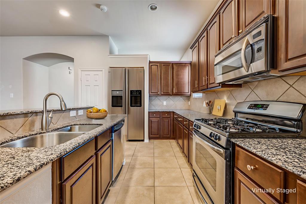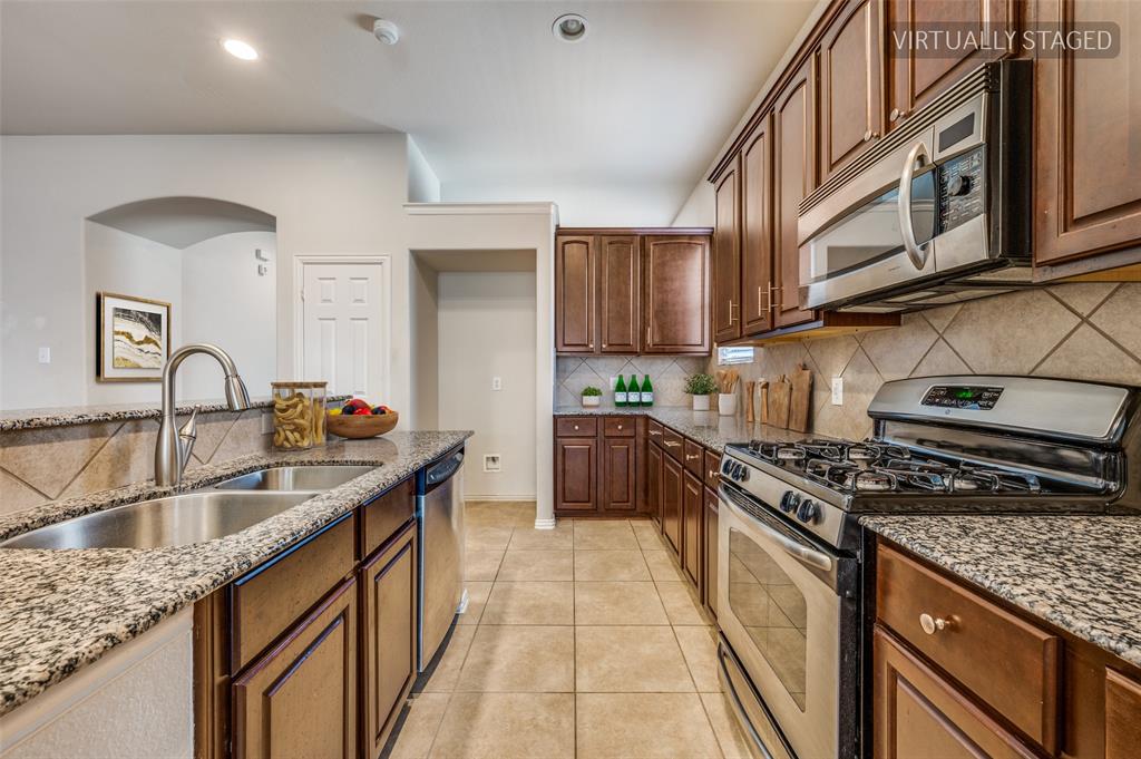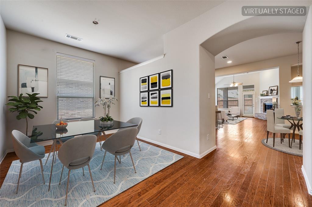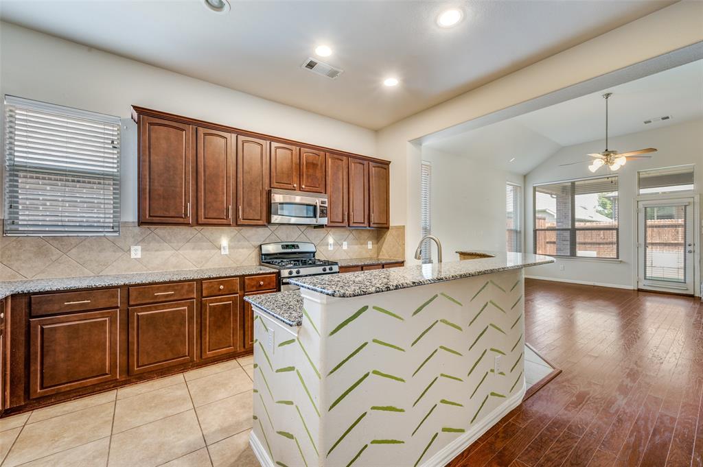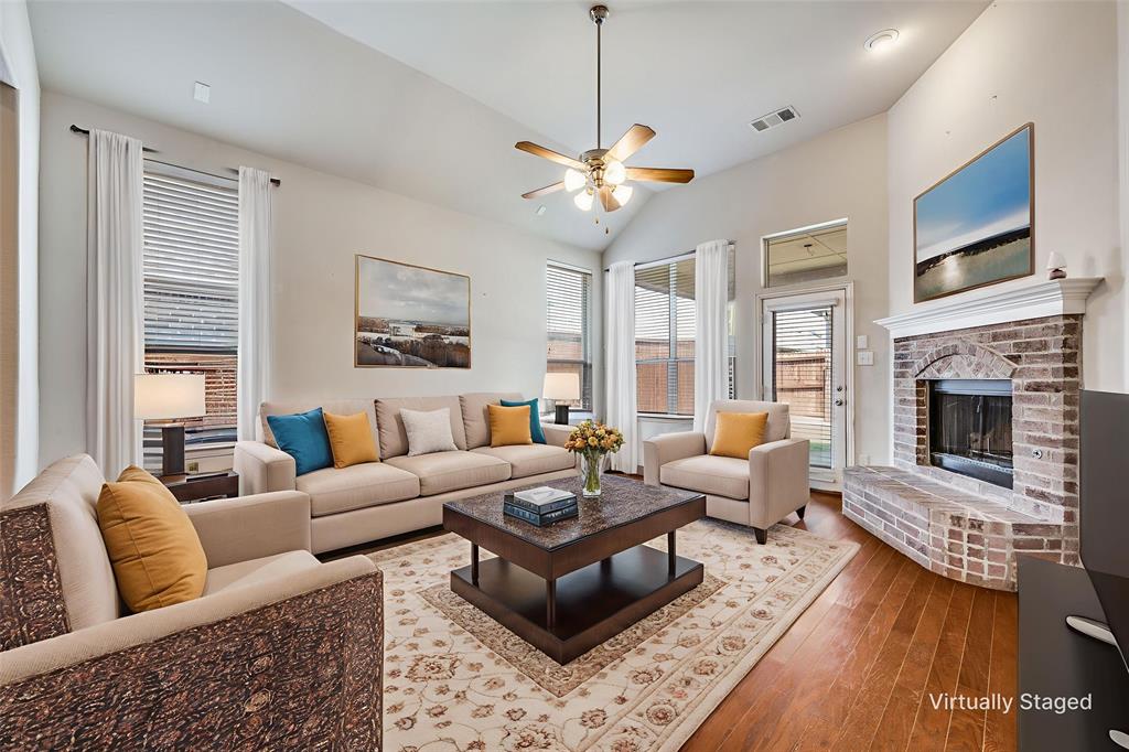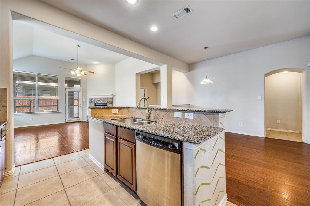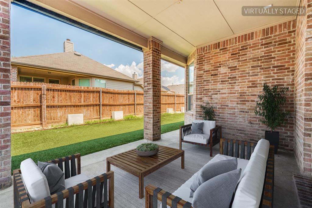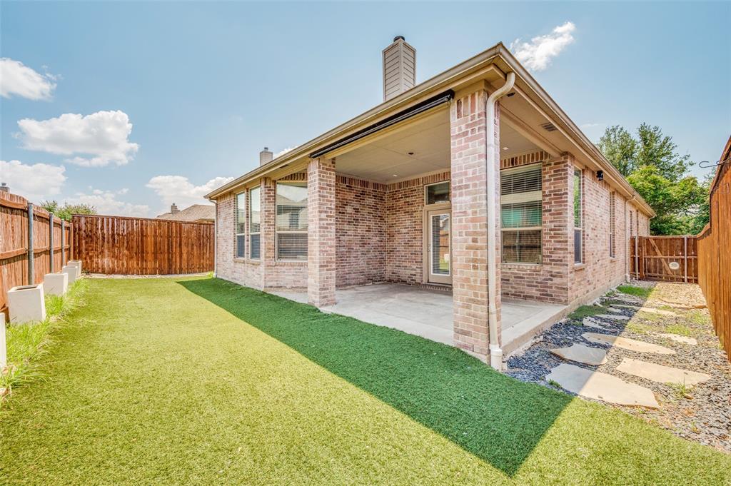 Discover modern living in this 4-bedroom, 3-bathroom home that is perfectly situated in the vibrant community of Little Elm. Offering a blend of style, comfort, and practicality, this Highland home is a testament to thoughtful design and quality craftsmanship. Step inside to experience an inviting open floor plan, where the living, dining, and kitchen areas flow effortlessly, creating an ideal space for both relaxation and entertaining. The engineered wood floors harmonize beautifully with the corner fireplace, adding a touch of warmth and elegance to the living area. The well-designed 3 way split bedroom layout ensures privacy, with the primary suite tucked away, offering a peaceful retreat complete with an en-suite bathroom. Each of the additional bedrooms is spacious, providing ample room to accommodate various needs, whether it be a growing household or a home office. The kitchen is a culinary enthusiast's dream, featuring modern appliances, ample cabinetry, and a breakfast bar, perfect for casual dining or enjoying morning coffee. The allure of this home extends outdoors to the covered back patio, ideal for weekend barbecues or simply unwinding after a long day. The backyard is graced with low-maintenance artificial turf, offering a lush, green space for year-round enjoyment without the hassle of upkeep. Situated on an interior lot, the property presents added privacy, making it a peaceful haven within the neighborhood. With a 2-car garage, you'll have plenty of space for vehicles and storage needs. This home is not just a place to live; it's a lifestyle, offering a perfect balance of tranquility and modern convenience. Don't miss the opportunity to call this your home in one of Little Elm's most desirable areas.