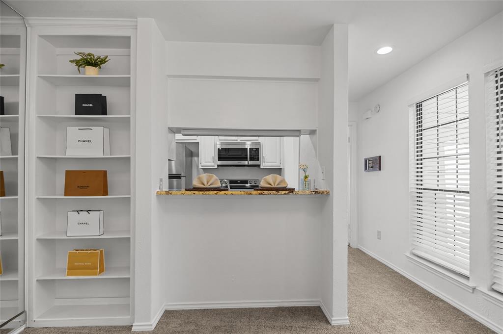 Step inside to a bright open-concept living space filled with natural light from expansive floor-to-ceiling windows. High ceilings and a cozy fireplace set the tone for both sophisticated entertaining and comfortable everyday living. The brand-new upgrades — stainless steel appliances, premium light fixtures, freshly painted countertops, and plush new carpeting — create a fresh, stylish, and move-in-ready home.
