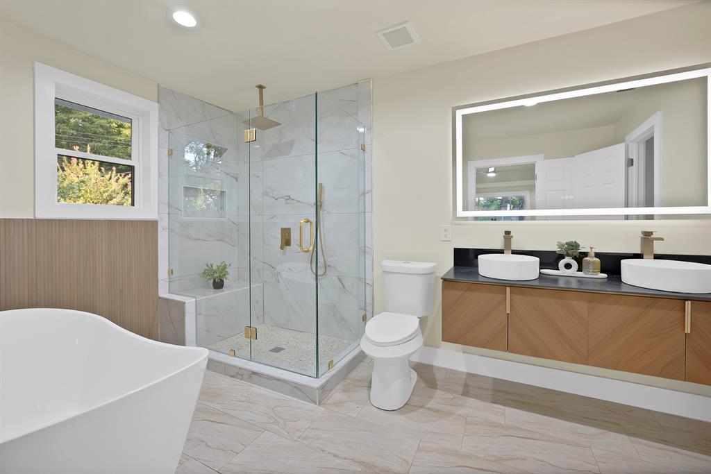 The kitchen, bathrooms, and bedrooms showcase a sleek, modern-contemporary design with stylish finishes throughout. Recent updates include a new roof, water heater, windows, and HVAC, offering both comfort and peace of mind.