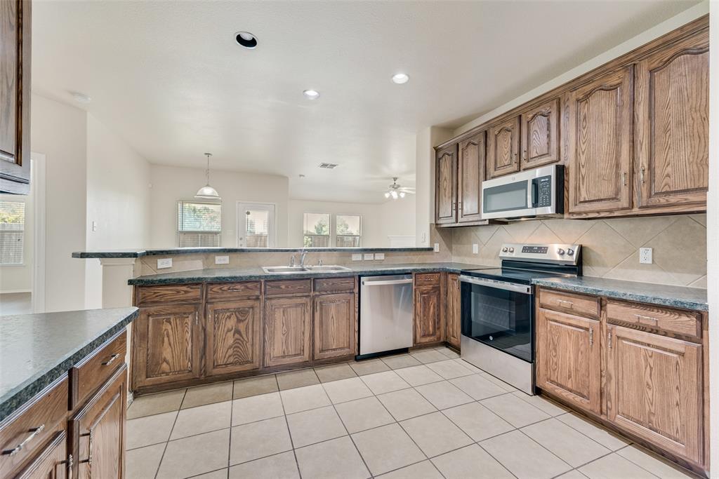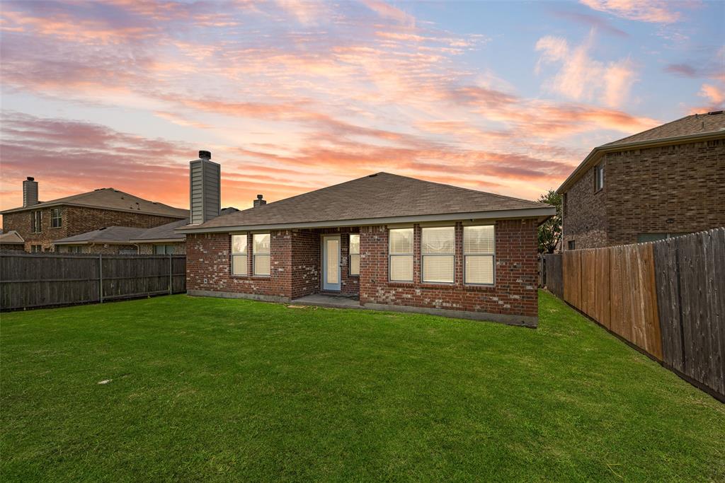 Come see this lovely home located in the Travis Ranch Subdivision. You'll pull up to a lovely covered front porch perfect for watching the sunset in the evenings. Once you walk into this home you'll find a bedroom or a great home office with a walk-in closet. As you continue into the home you'll see the formal dining area then the spacious kitchen overlooking the living & breakfast area. In the kitchen you have stainless steel appliances along with an abundance of countertop space & cabinets. Just off the kitchen area is the primary bedroom with an ensuite bathroom. In the bathroom you'll find dual sinks, walk-in shower, garden tub, & a walk-in closet. On the other side of the home is the other 2 guest bedrooms. Out back you have a private backyard with a wood privacy fence. Don't miss out on this lovely home that is near Lake Ray Hubbard and within the Forney ISD Schools.