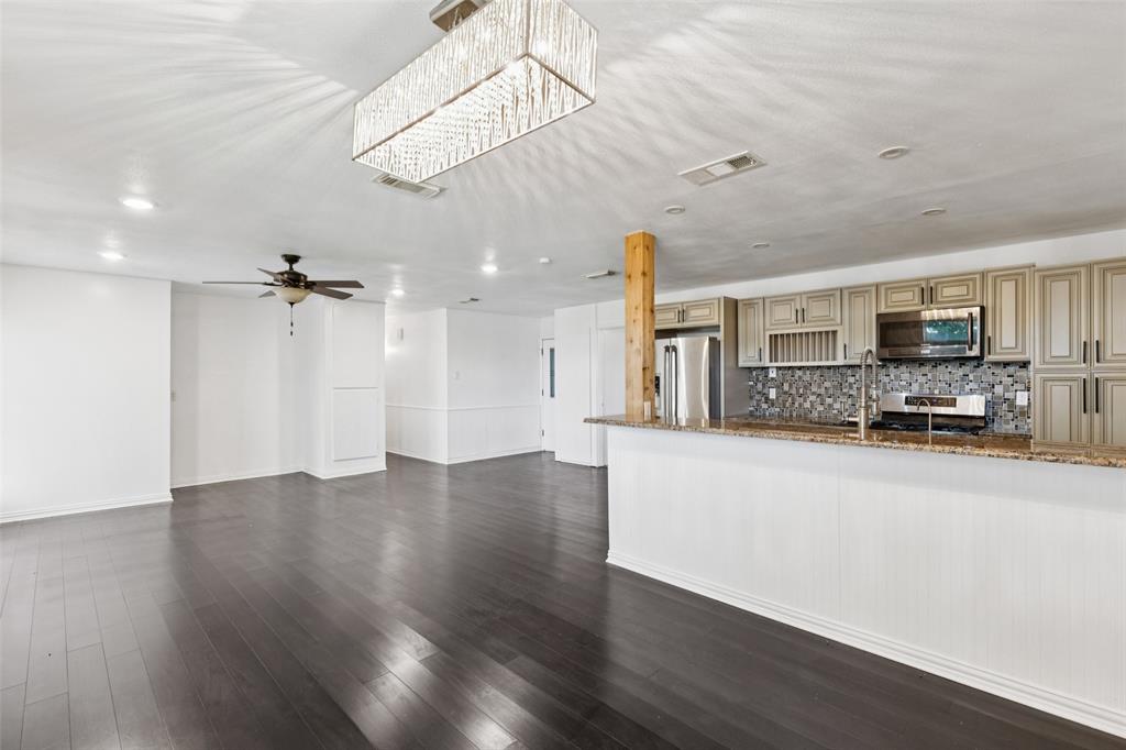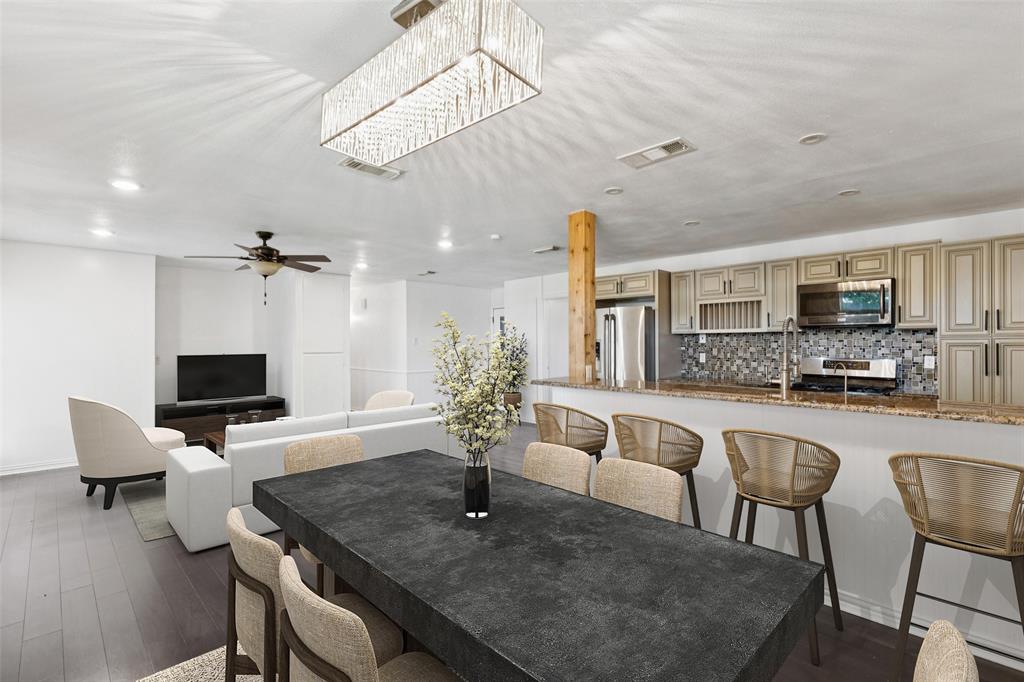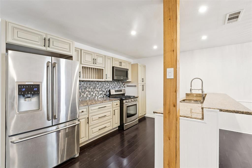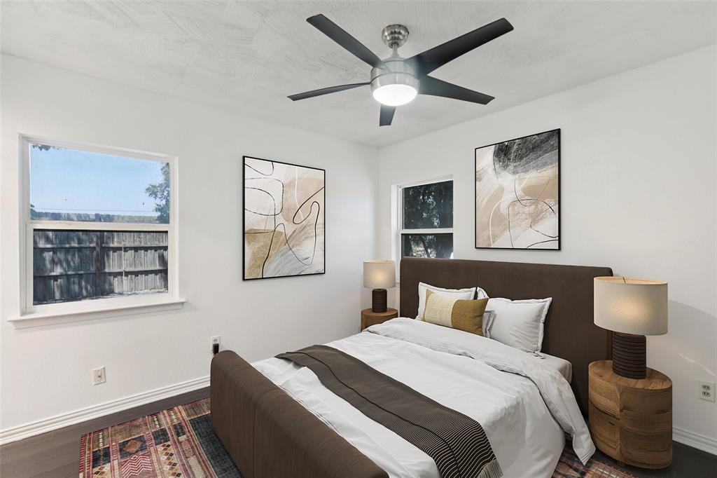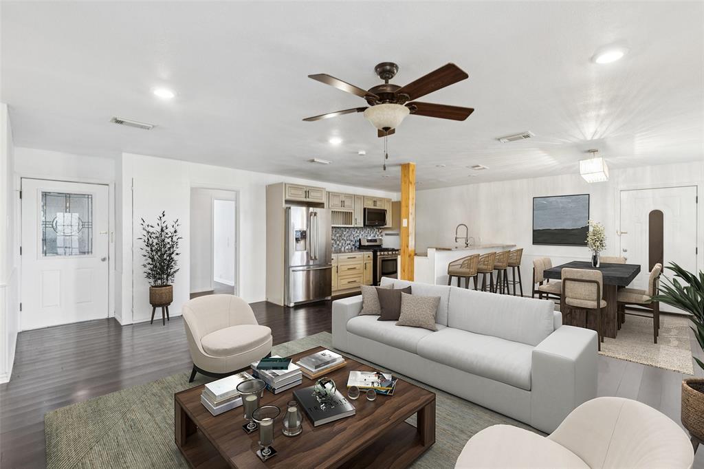 Situated on a Texas-size 0.25-acre lot, this beautifully updated mid-century home is truly move-in ready! The thoughtful floor plan offers 4 bedrooms, 2 bathrooms, and a versatile home office that could serve as a 5th bedroom if needed. The light-filled open-concept living room showcases a soft white color palette and rich bamboo flooring that flows throughout the main living areas, combining both style and durability. The kitchen features a designer backsplash, granite countertops, stainless steel appliances, gas cooktop, updated hardware, recessed lighting, and a refrigerator that conveys with the sale. Right off the the kitchen, is an oversized utility room that provides space for an extra refrigerator or freezer—ideal for bulk shopping and keeping organized. Generously sized bedrooms include a primary suite with a walk-in closet and private ensuite bath. Outdoors, the tranquil backyard offers a small deck area perfect for enjoying morning coffee or evening relaxation. The fully fenced yard features a gated driveway for added security and privacy. Additional highlights include a detached 3-car garage, extended driveway with ample space for RV parking, or the potential to create a sports court area. No HOA! Located near parks, schools, and conveniently positioned near PGBT, Highway 75, The Shire, Firewheel Town Center, and Historic Downtown Plano - offering up an array of entertainment, shopping, and dining options to enjoy! Well-positioned in Richardson's business community and tech hub near major employers, Collin College, and UTD. 3D scan available online.