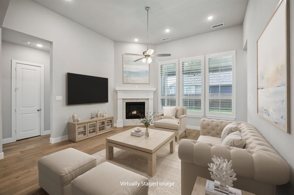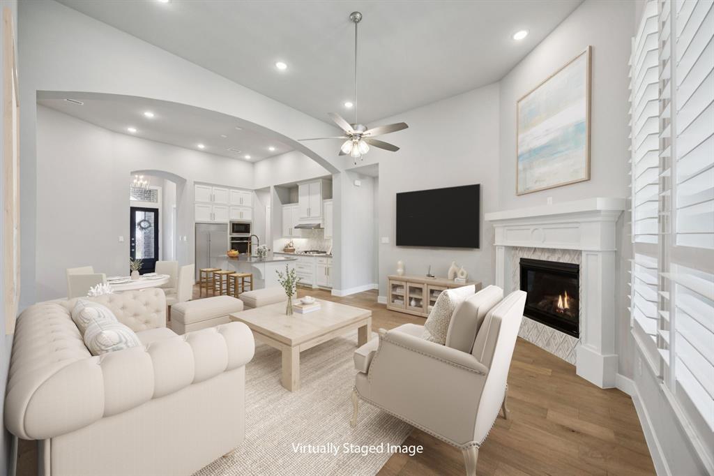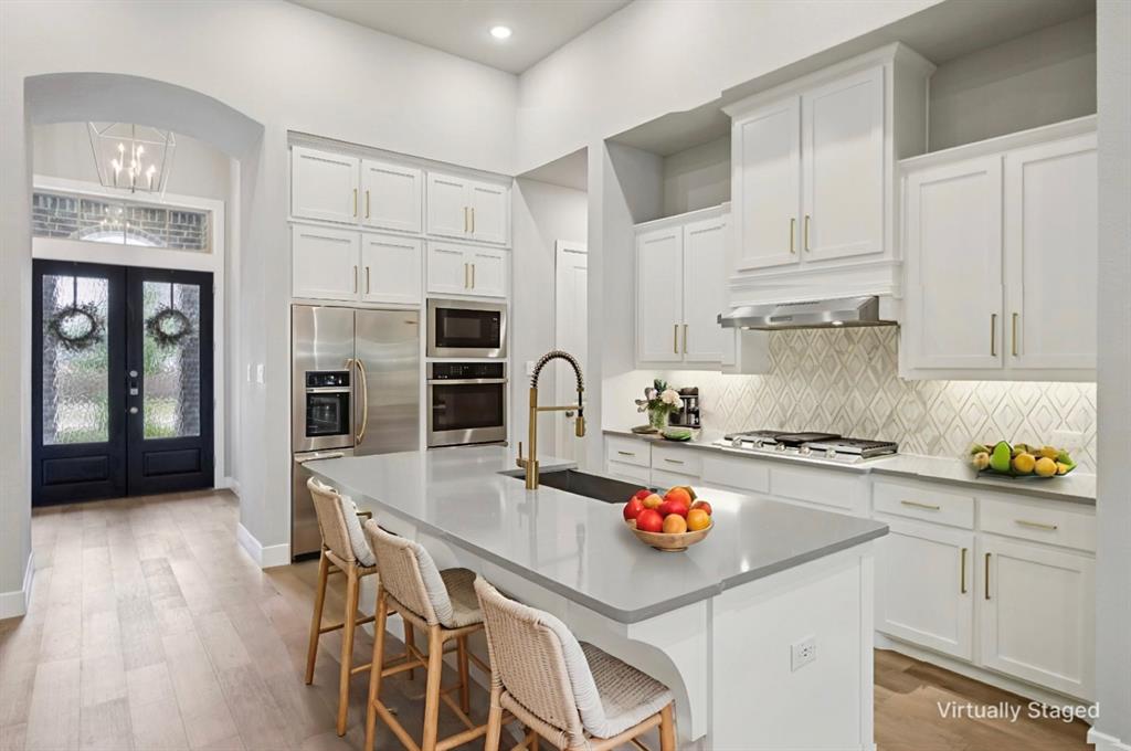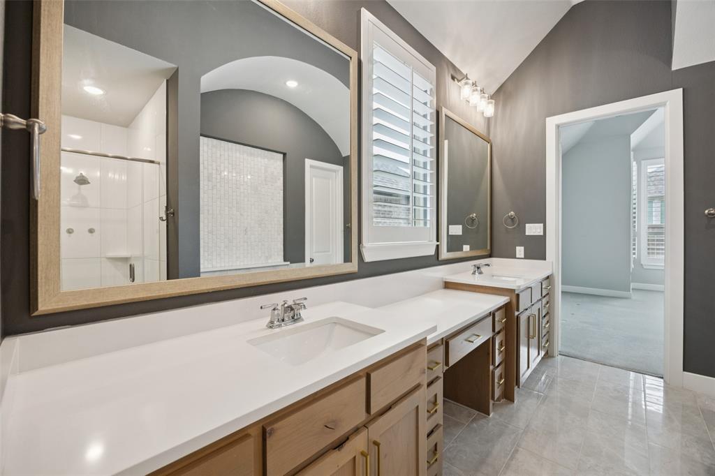 Discover the perfect blend of sophistication & comfort in this spacious (Highland built) 4-bed, 3.5-bath home, nestled in the vibrant community of Stone Creek. This exceptional property offers a lifestyle defined by open spaces, natural light, plantation shutters, & high-end finishes. The heart of this home is its expansive living area, characterized by an open-concept design that seamlessly integrates the kitchen, dining, & living spaces. Generous windows fill the rooms with abundant natural light, highlighting the impeccable craftsmanship & contemporary style that define this property. The gourmet kitchen is a chef’s dream, boasting extensive cabinetry for ample storage, gold finishes, high-end stainless steel appliances (double-oven), a large island with seating, & elegant quartz countertops, perfect for everyday meals & entertaining. The primary suite is a private retreat tucked away in back of the home, featuring a luxurious ensuite bathroom with dual vanities, a relaxing soaking tub, a separate shower, & a spacious custom walk-in closet. You’ll find additional bedrooms are roomy & well-appointed, offering comfort & privacy for guests or family (one secondary bedroom is ensuite). The additional bathrooms are elegantly designed, ensuring convenience, storage & style for every member of the household. Outside, the backyard and huge porch provide endless possibilities for outdoor enjoyment, from hosting summer barbecues to creating your own tranquil oasis. A 3-car garage offers ample space for vehicles, storage, & hobbies. Strategically located in a sought-after area, this home provides easy access to Rockwall's amenities, including shopping, dining, & A-rated schools. Experience the best of suburban living with close proximity to Lake Ray Hubbard & downtown Rockwall, while John King gives you easy access to I30 leading to Dallas. Don't miss this rare opportunity to own a residence that truly embodies the essence of modern living in a charming community.
