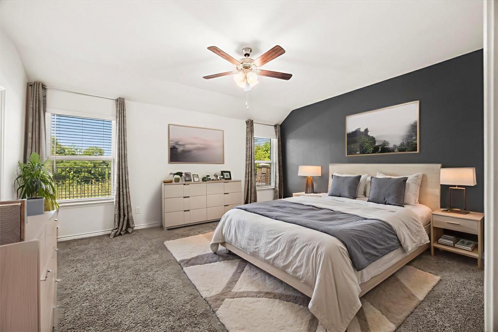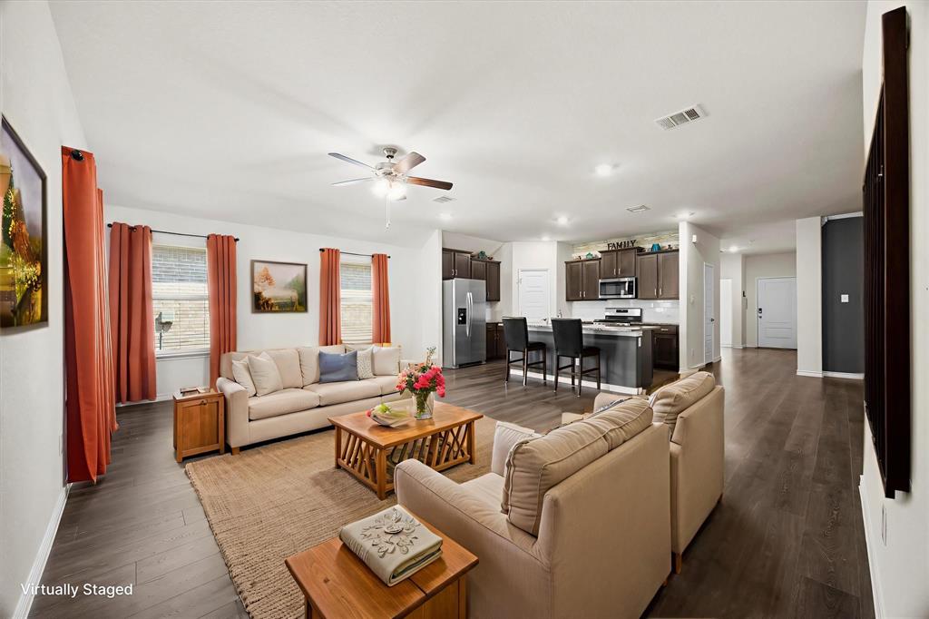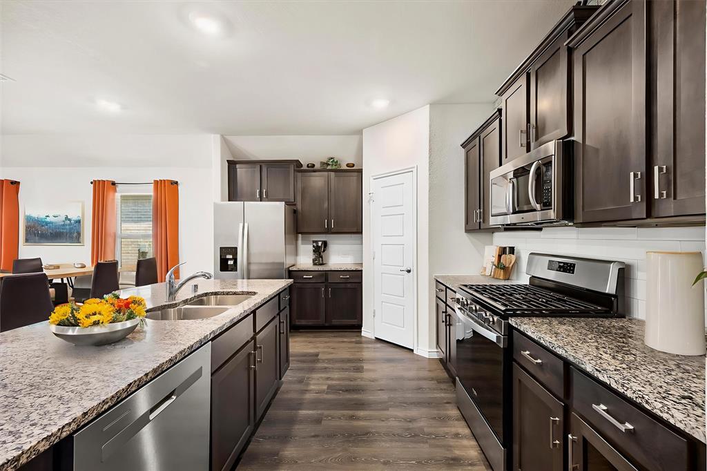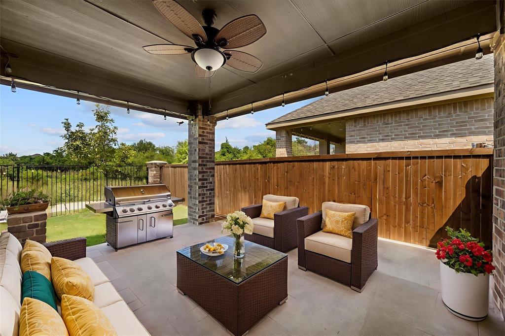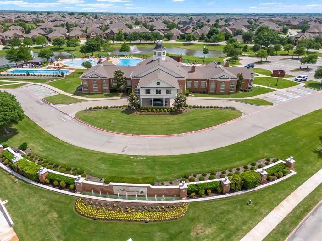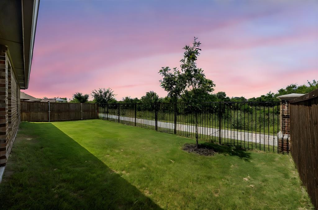 Welcome to Williamsburg, a master-planned community in Fate zoned for highly acclaimed Rockwall ISD! This light-filled 4-bedroom, 3-bath home with dedicated office offers an open-concept design perfect for modern living. The island kitchen features a gas range, generous walk-in pantry, and plenty of counter space for cooking and entertaining. The private primary suite includes a spacious walk-in closet and oversized shower for a spa-like retreat. Situated on a premium lot backing to a greenbelt and walking path, the backyard offers an iron fence, extended patio, and breathtaking sunset views. A covered patio provides a relaxing spot to enjoy the outdoors year-round. Enjoy resort-style community amenities including a pool, clubhouse, fitness center, walking trails, and open green spaces. Ideally located within walking distance to the elementary school and the brand-new middle school located in the neighborhood. Convenient access to Fate Village, shopping, dining, recreation, and I-30 ensures everything you need is close by. Home comes complete with Washer, Dryer, and Refrigerator!