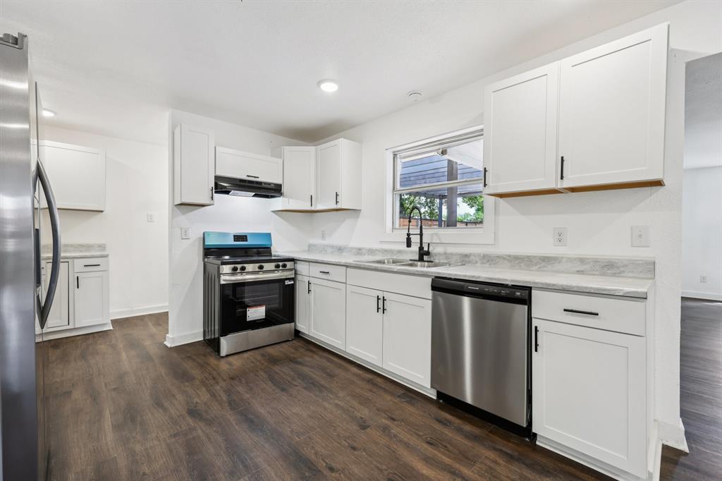 This stunning, FULLY REMODELED from foundation to roof top, this single-story home rests on a spacious corner lot in the established neighborhood of Western Heights. From the moment you arrive, the curb appeal and attention to detail are undeniable! Inside, the open-concept layout welcomes you with continuous, easy-care flooring that flows effortlessly throughout, leading to a sleek, eye-catching fireplace in the Living Room. All three bedrooms are thoughtfully placed on one side of the home, with the Primary Bath featuring today’s modern finishes. The secondary bath mirrors the same stylish upgrades and is conveniently located toward the back of the home. The Kitchen showcases brand-new appliances and a full-size laundry area (with washer & dryer) discreetly tucked away behind it. Step outside to a backyard made for entertaining—the spacious new deck is perfect for dining al fresco, plenty of lawn space for a trampoline, and privacy provided by modern wood fencing. FULL details of this remodel available in Transaction Desk.