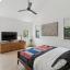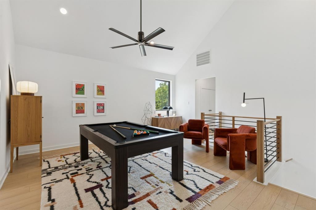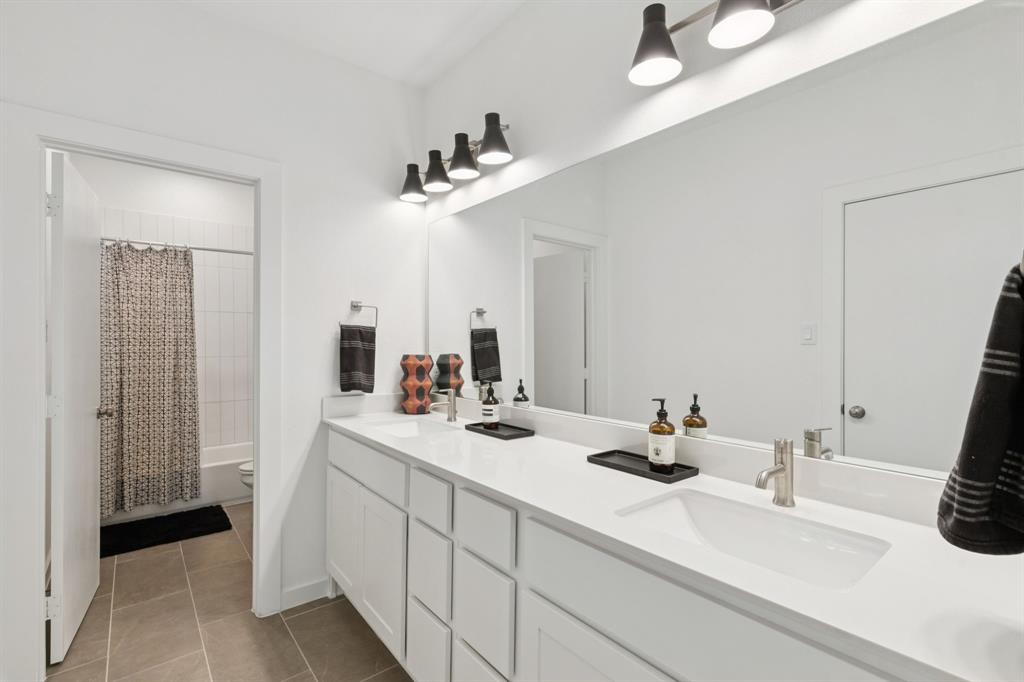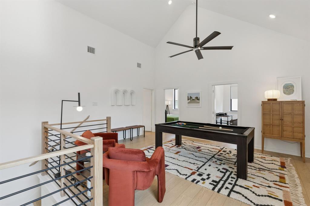 Upstairs, you'll find an additional flexible living space, perfect for use as a den, media room or game room. The home has three spacious bedrooms, including a serene primary suite with a spa-inspired ensuite bathroom. Large windows and thoughtful design elements continue the theme of light and openness throughout the home. As an end-unit that faces a small green space, this townhome offers extra windows that bathe the interior in natural light. The backyard is a true retreat, beautifully landscaped with low-maintenance turf — perfect for relaxing, entertaining, or letting pets play freely.