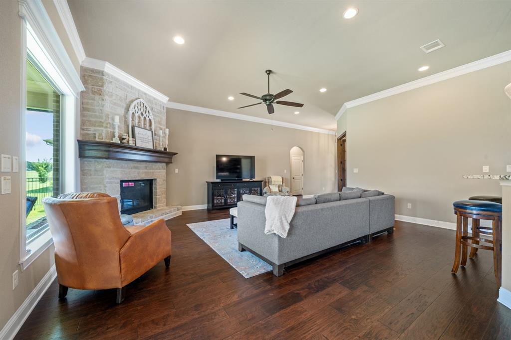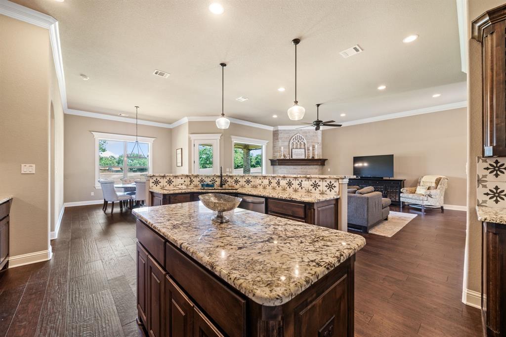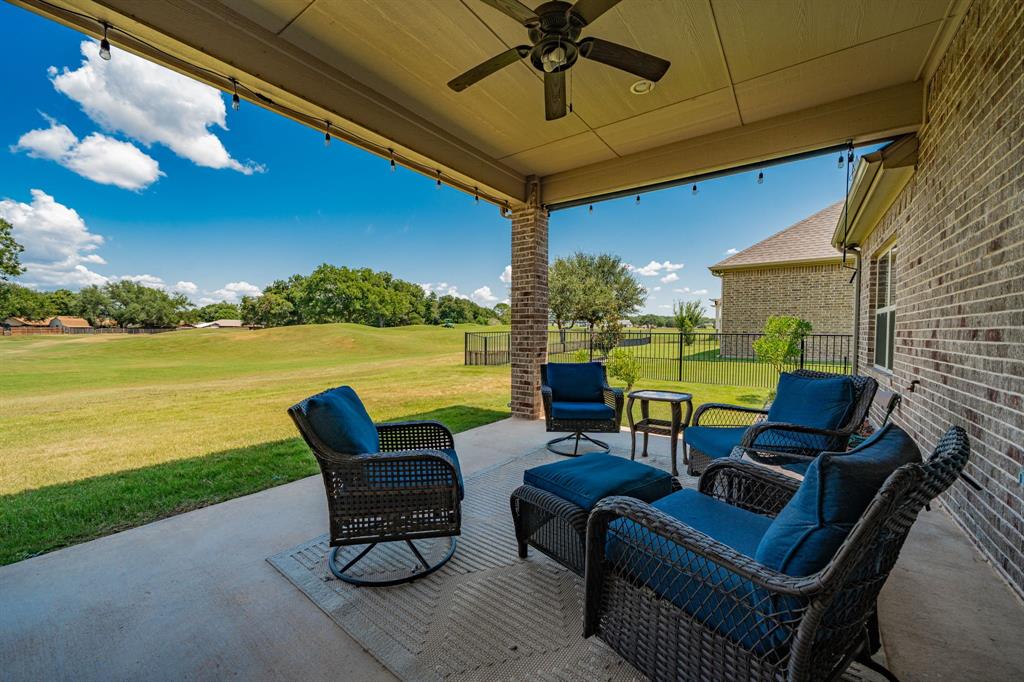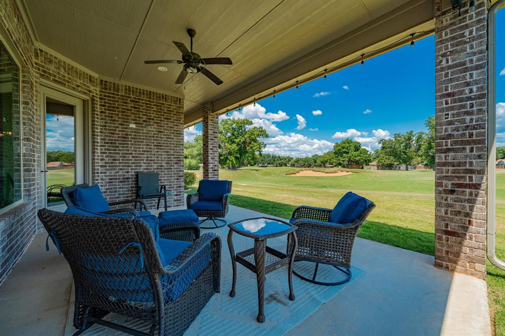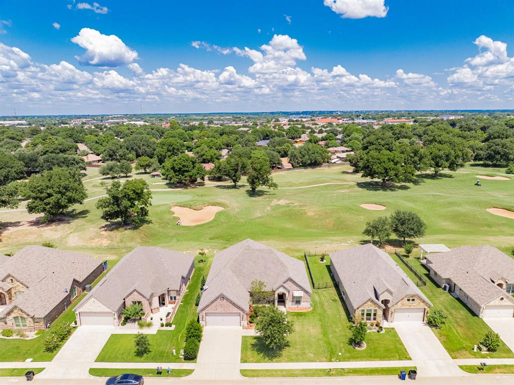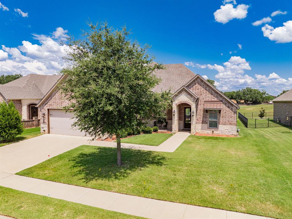 Welcome to The Hideaway at Harbor Lakes, where you will fall in love with this stunning golf course home located on #10 green at the premier Harbor Lakes Golf Club! This 4-bedroom (or 3 & a study) open concept home boasts an inviting atmosphere that will make you feel right at home. As you enter, you will love the beautiful wood floors, elegant double crown molding, stylish granite & backsplash that adorn the space. The highlight of this home is the picturesque view of the golf course that can be enjoyed from the comfort of your living room, kitchen, dining area, and back porch! The open concept floor plan features a large kitchen with granite countertops, quality stained cabinets, and stainless appliances, including a double oven! The ample sized primary suite is a dream come true with its ensuite bath that features a double tray ceiling, separate vanities, a walk-in shower, a garden tub, and a huge walk-in closet that conveniently connects to the oversized utility room. This thoughtfully appointed home is perfect for those who appreciate comfort, elegance, and a touch of luxury. The home also features a gas fireplace, 11 ft ceilings, and an 18 ft garage door! Don't miss out on this amazing opportunity to live in one of the most beautiful homes in The Hideaway at Harbor Lakes.