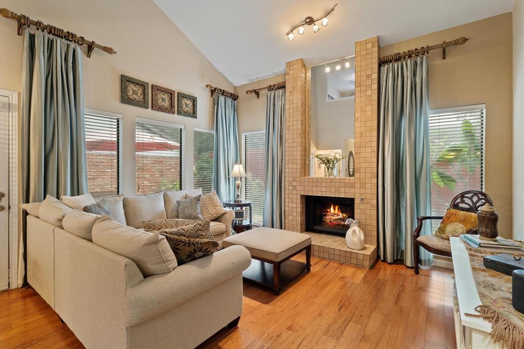 Stylish, light-filled Addison home in one of North Dallas’s most walkable neighborhoods. Two spacious living areas, soaring ceilings, and oversized windows create an open, inviting feel, with a cozy fireplace for added charm. The kitchen flows seamlessly to the living space, and the private patio with landscaped yard is perfect for coffee, wine, and pets.