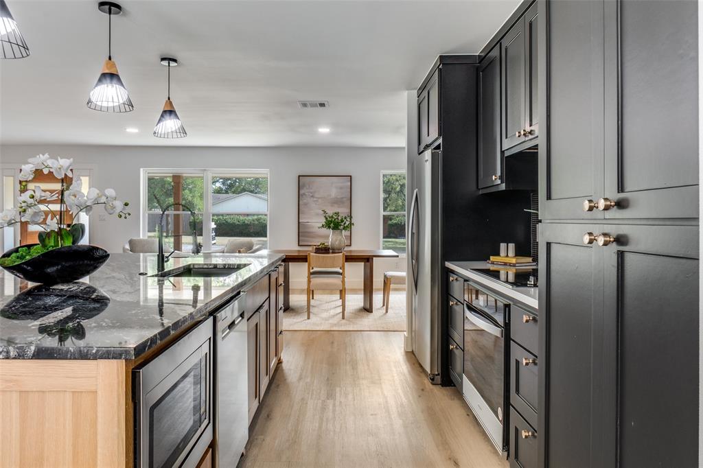 Completely remodeled with designer finishes, this stunning 4-bedroom home offers style, comfort, and versatility. Gorgeous open concept with lots of light flooding the home. The modern kitchen features a beautiful counter height island, glass cooktop, pot filler, and the hottest design trends. The fridge stays. The separate detached guest quarters—with its own bedroom, living area, kitchen, bath, and private yard—is perfect for extended family, guests, or rental income. Situated on an oversized lot with plenty of grassy space to play and room for a pool. Inside the main home, every detail has been thoughtfully updated, blending modern elegance with functional living. Prime Dallas location south of 635 with quick access to major highways, dining, shopping, and entertainment—making it easy to get anywhere in the city! It also features a two-car garage plus a parking pad for off-street parking.