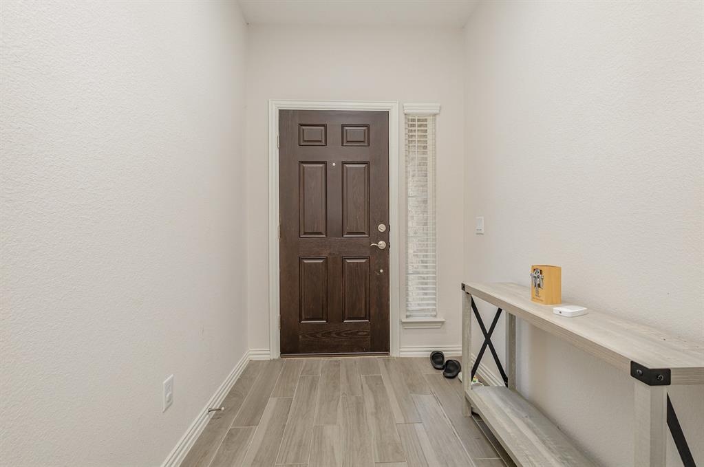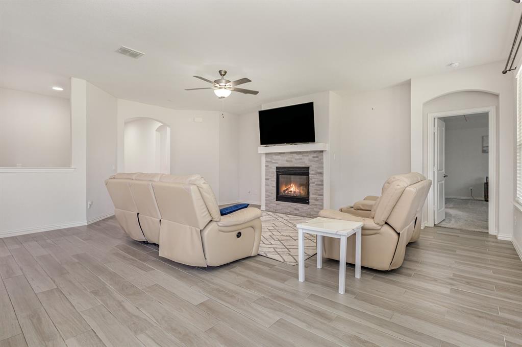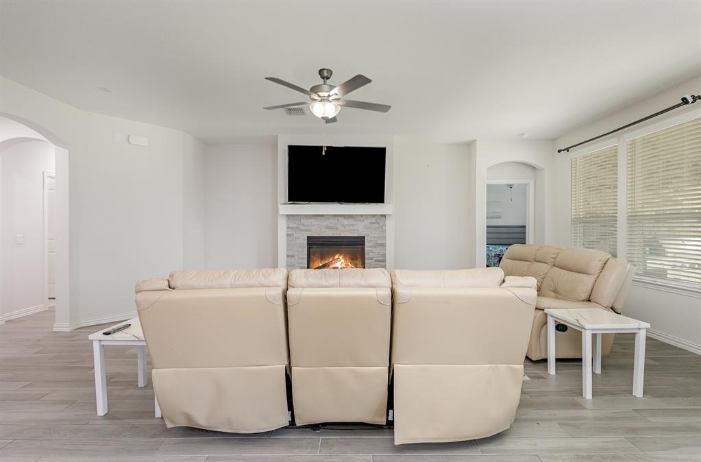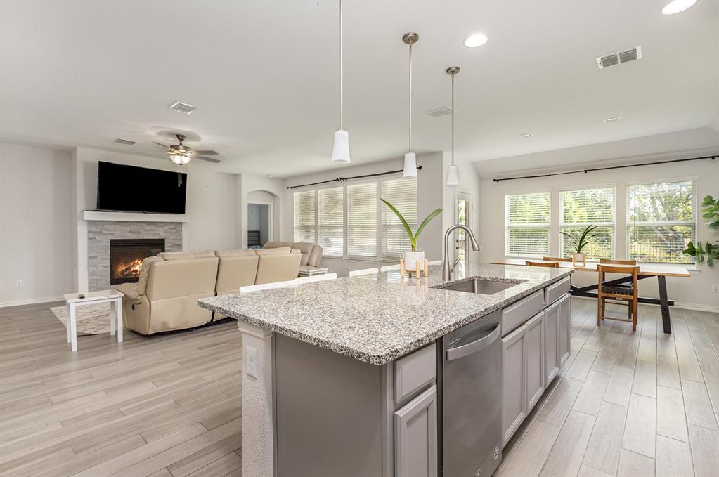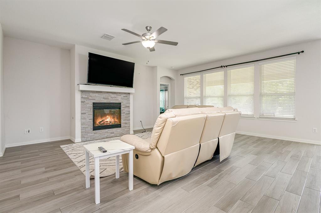 Step inside this beautiful Wylie home filled with modern features and a warm, welcoming layout. The living room centers around a classic brick fireplace and opens to a kitchen with a large island, flowing seamlessly into the dining area for easy gatherings. A small dedicated office or study offers a quiet place to work or focus. The main-floor primary suite features dual sinks, a vanity area, and a spacious walk-in shower for everyday comfort.