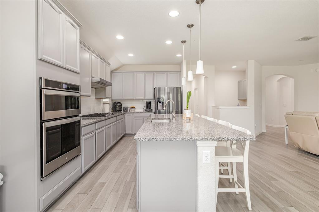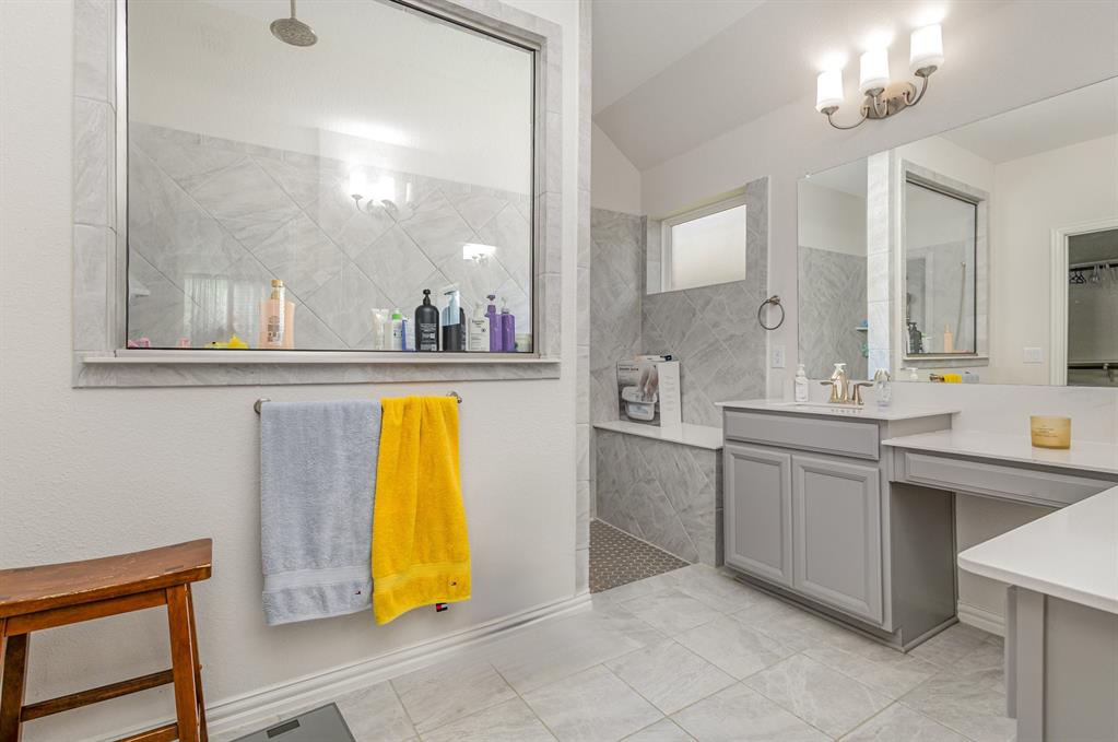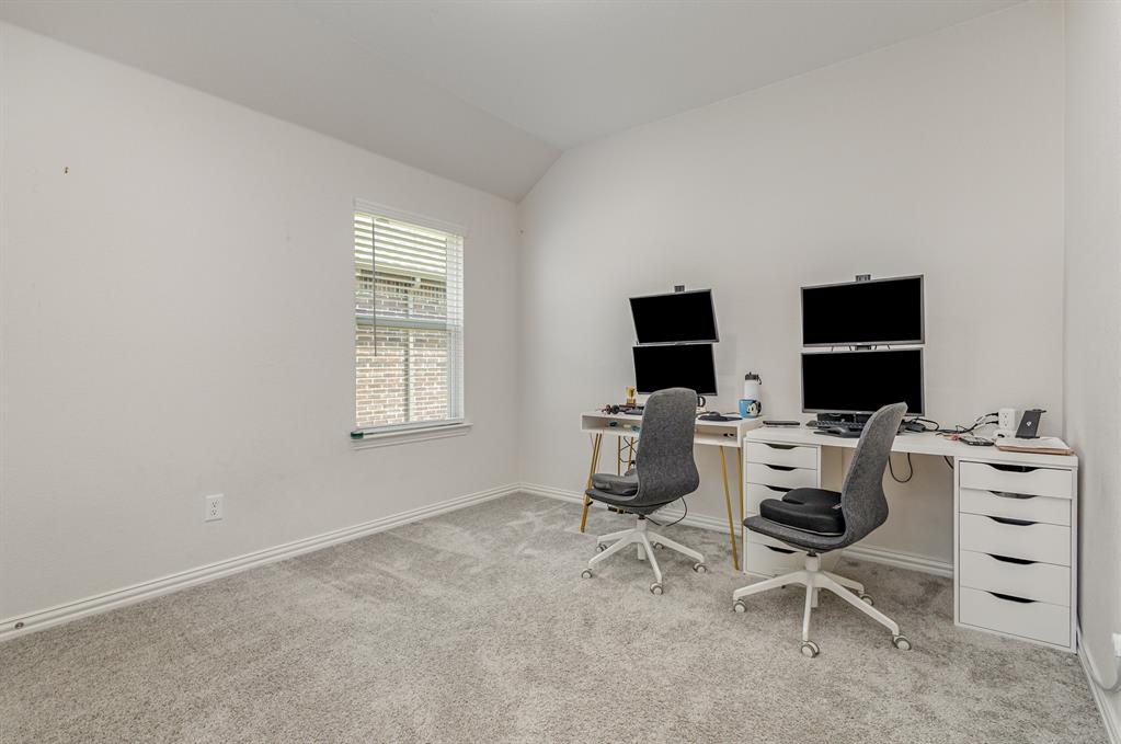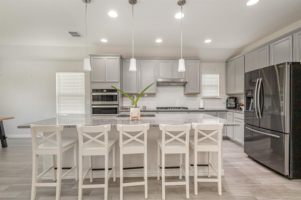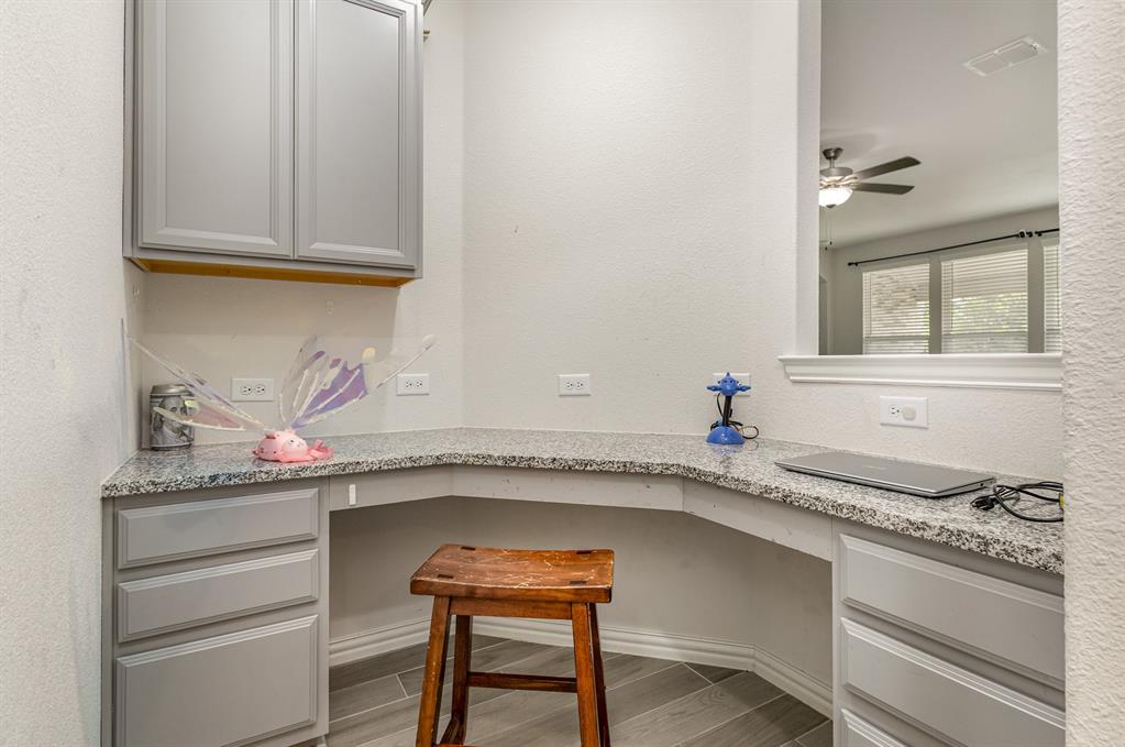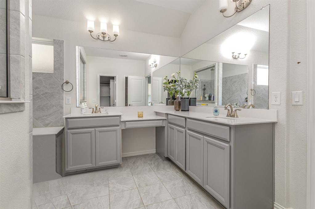 Step inside this beautiful Wylie home filled with modern features and a warm, welcoming layout. The living room centers around a classic brick fireplace and opens to a kitchen with a large island, flowing seamlessly into the dining area for easy gatherings. A small dedicated office or study offers a quiet place to work or focus. The main-floor primary suite features dual sinks, a vanity area, and a spacious walk-in shower for everyday comfort.