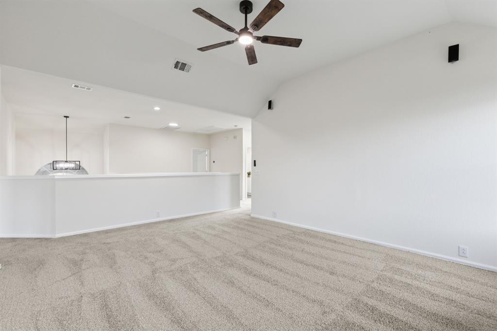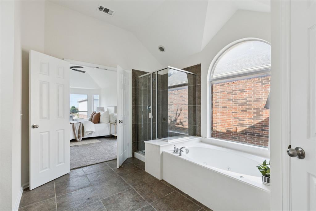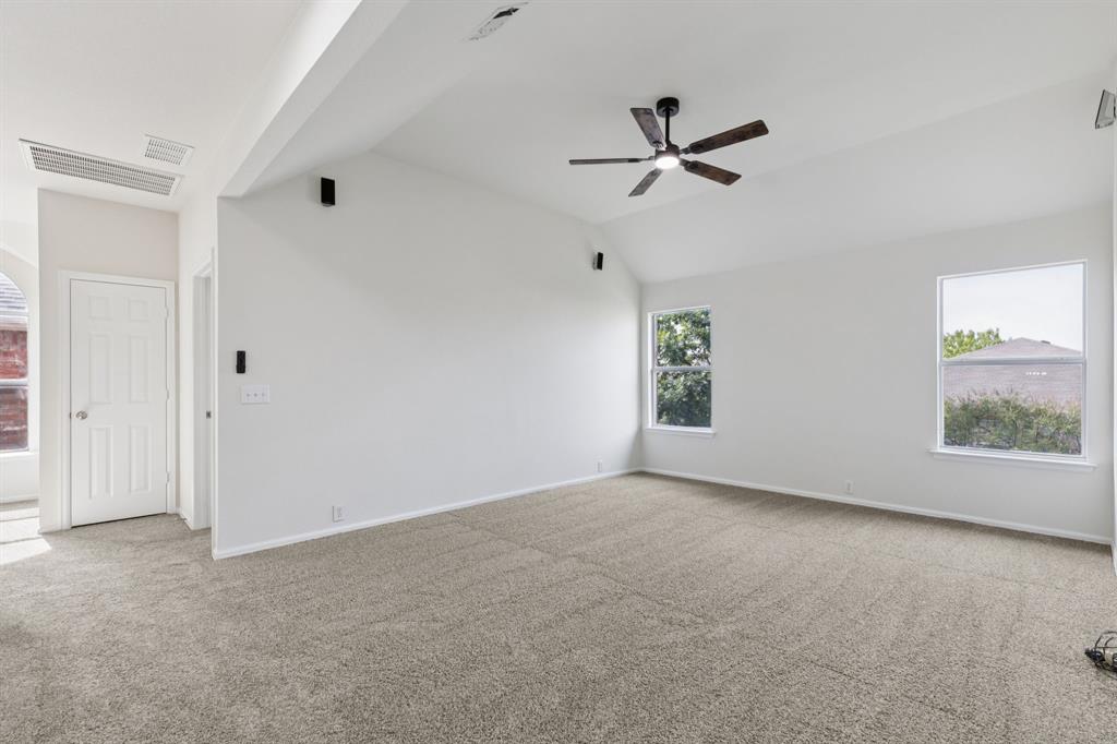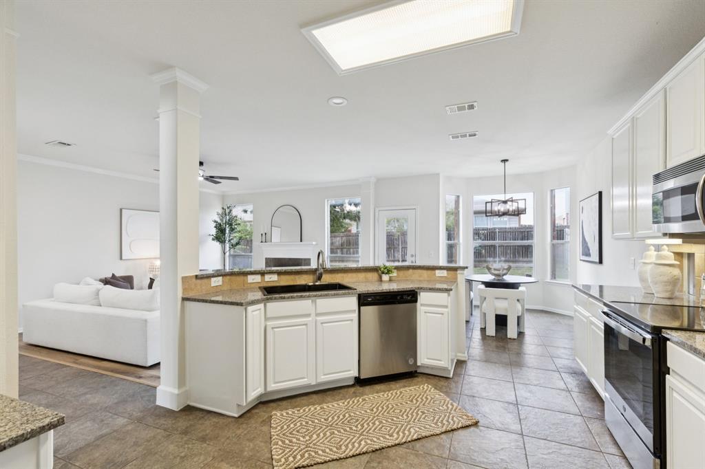This stunning 4 bed, 2.5 bath home in coveted Vista Meadows North, zoned for award-winning Keller ISD. Showcasing beautifully updated interior paint, elegant new lighting, plush carpet, LVP flooring in select areas, and beautiful granite countertops, this home offers both style and comfort. The gourmet kitchen features stainless steel appliances, a granite composite double-basin undermount sink, a peninsula breakfast bar, built-in desk, walk-in pantry, and a sunny breakfast room, all opening to a cozy living area with a charming gas fireplace. Most rooms throughout the home feature soaring vaulted ceilings, enhancing the spacious and airy feel. The luxurious primary suite boasts bay windows, a spa-like bath with a jetted garden tub, separate shower, dual vanities, and an oversized walk-in closet. Upstairs, enjoy a spacious game room with a wired sound system and built-in speakers, perfect for entertainment or hobbies. Secondary bedrooms are generously sized, each with a walk-in closet; one offers a private ensuite bath, while all provide ample space and comfort. The fully fenced backyard provides the ideal setting for pets, play, or outdoor gatherings. Conveniently located just minutes from shops, dining, and major highways for easy commuting.