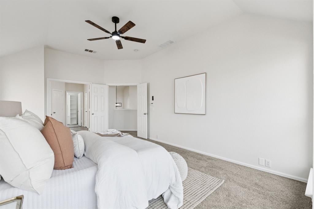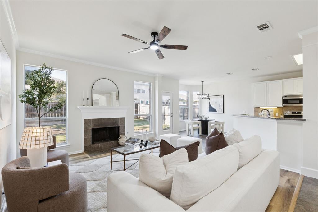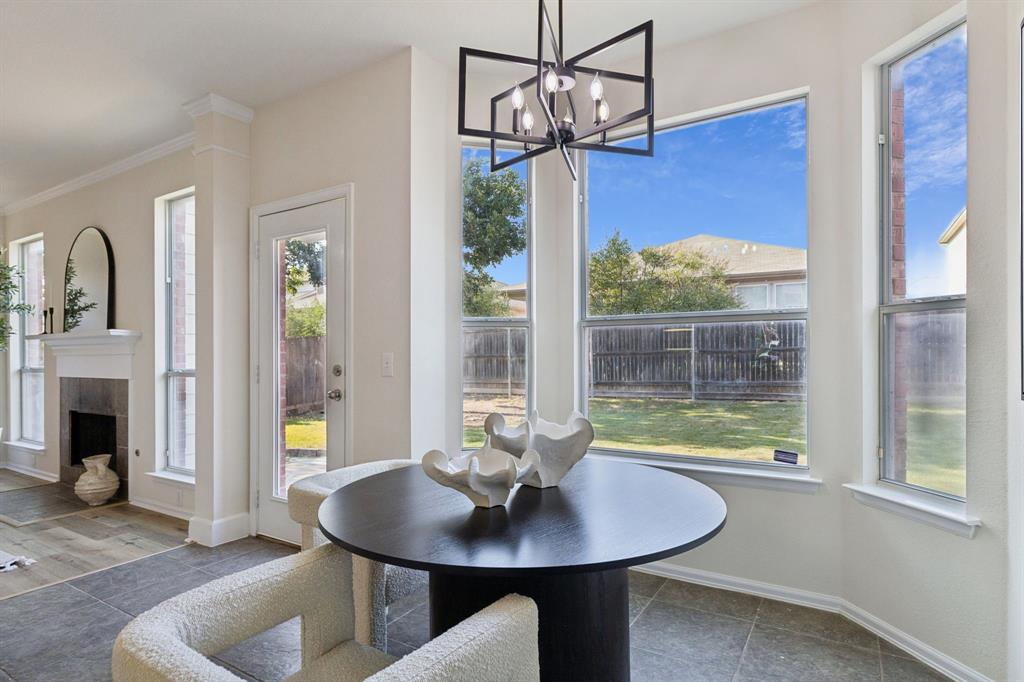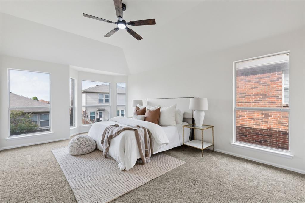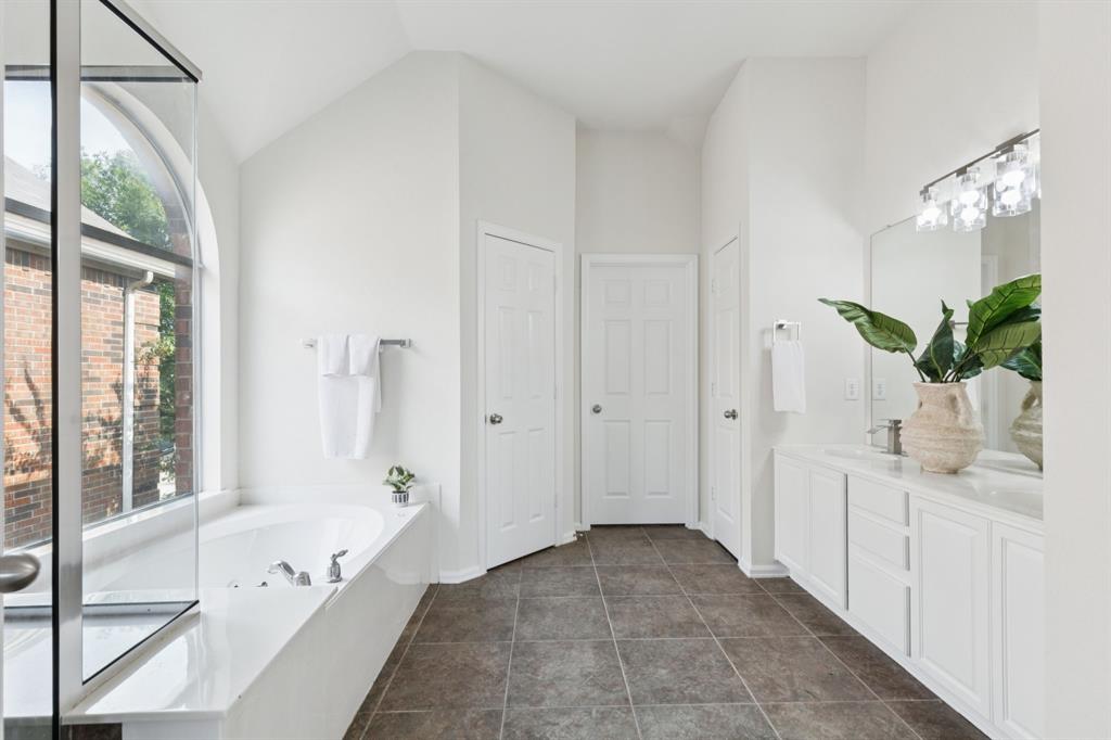 This stunning 4 bed, 2.5 bath home in coveted Vista Meadows North, zoned for award-winning Keller ISD. Showcasing beautifully updated interior paint, elegant new lighting, plush carpet, LVP flooring in select areas, and beautiful granite countertops, this home offers both style and comfort. The gourmet kitchen features stainless steel appliances, a granite composite double-basin undermount sink, a peninsula breakfast bar, built-in desk, walk-in pantry, and a sunny breakfast room, all opening to a cozy living area with a charming gas fireplace. Most rooms throughout the home feature soaring vaulted ceilings, enhancing the spacious and airy feel. The luxurious primary suite boasts bay windows, a spa-like bath with a jetted garden tub, separate shower, dual vanities, and an oversized walk-in closet. Upstairs, enjoy a spacious game room with a wired sound system and built-in speakers, perfect for entertainment or hobbies. Secondary bedrooms are generously sized, each with a walk-in closet; one offers a private ensuite bath, while all provide ample space and comfort. The fully fenced backyard provides the ideal setting for pets, play, or outdoor gatherings. Conveniently located just minutes from shops, dining, and major highways for easy commuting.