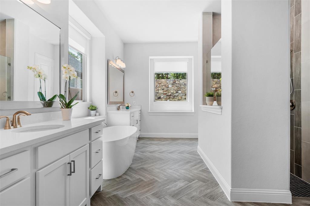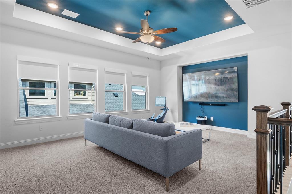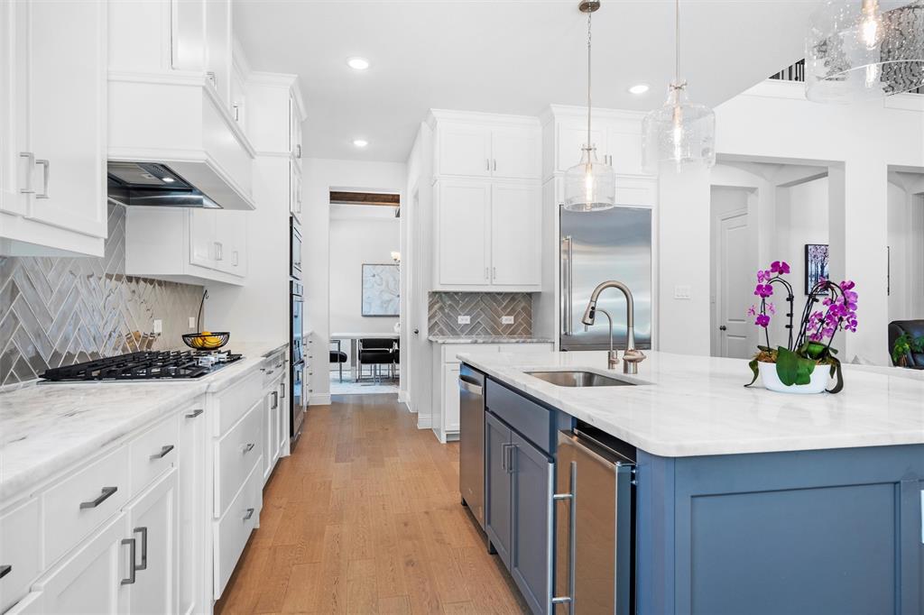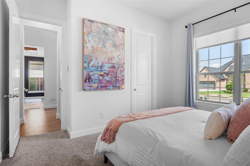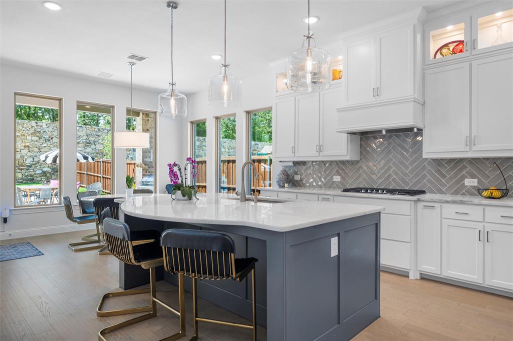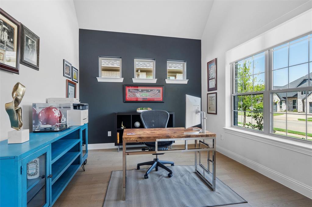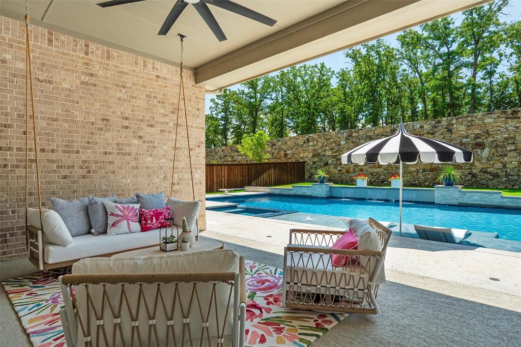 Meticulously upgraded to combine elegance and functionality, this 5 bedroom, 4.5 bath masterpiece is perfectly situated in the highly sought after Argyle ISD. The soaring 2 story ceilings and abundant natural light set the tone for this warm yet sophisticated home. The thoughtful floorplan offers both the primary suite and a secondary suite downstairs, along with a dedicated office. Upstairs you'll find 3 additional bedrooms, a second living room area and media room. All bedrooms and upstairs living spaces have electric blinds. The gourmet kitchen is a showstopper with an oversized island, breakfast area, stainless steel appliances, gas cooktop, double ovens, and built in Viking refrigerator. Kitchen opens to the spacious living room anchored by a dramatic floor to ceiling gas fireplace. Retreat to the oversized primary suite with beamed cathedral ceilings, wood flooring, dual vanities, soaking tub, separate shower, and walk in closet that conveniently connects to the utility room. Step outside to your $200,000 Claffey Custom Ozone Pool & Spa, a true backyard showpiece. There is a covered patio, and extra yard space for play or pets. In the 3 car tandem garage, you will find epoxy coated floors and custom above door storage. At the back door, there is an electronic, smart door for pets. Buyers to verify all info including but not limited to schools, taxes, PID, measurements, HOA dues, etc