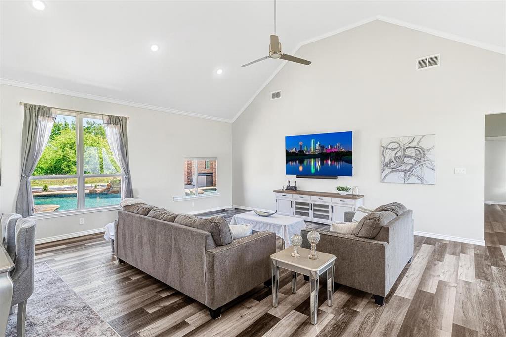 The main custom home, built in 2007 and expanded in 2022 by the original builder, offers approx. 5,269 sq ft, including 5 bedrooms, 7 bathrooms, and 3 living areas—one an enormous entertaining space. You'll find two primary suites with walk-in closets and private baths, two full kitchens, two very nice utility rooms. A separate entrance to the newer addition, is ideal for privacy or in-laws. Recent updates include new flooring, fresh paint inside and out, updated trim, and caulking.