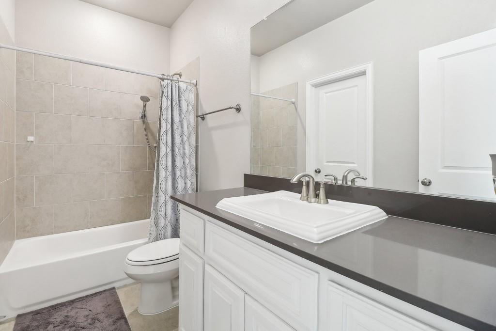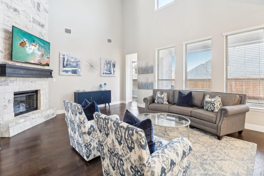 Enjoy viewing this gorgeous and inviting home in the highly sought-after Breezy Hill community! With an excellent floor plan, this home features soaring ceilings and abundant natural light throughout the spacious Living Room, complete with a floor-to-ceiling gas fireplace and a sweeping staircase that adds a touch of elegance. The open-concept design flows seamlessly into the large Kitchen and Breakfast Nook, making it perfect for entertaining. The chef’s kitchen boasts white cabinetry, a subway tile backsplash, stainless steel appliances, and beautiful granite countertops, which contrast beautifully with the rich, dark flooring that extends throughout the first floor. This home offers five bedrooms, including a spacious Master Retreat with a luxurious en-suite bath, and a private Guest Suite conveniently located near the first-floor office—complete with privacy doors and a closet for added versatility. Upstairs, you’ll find a Game Room, a Media Room, and three secondary bedrooms—one with a private bath and two sharing a Jack-and-Jill bathroom with a double sink vanity. Enjoy outdoor living on the covered patio, perfect for grilling, with a pool-size backyard ready for your dream outdoor oasis.