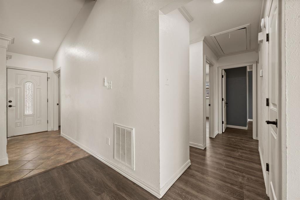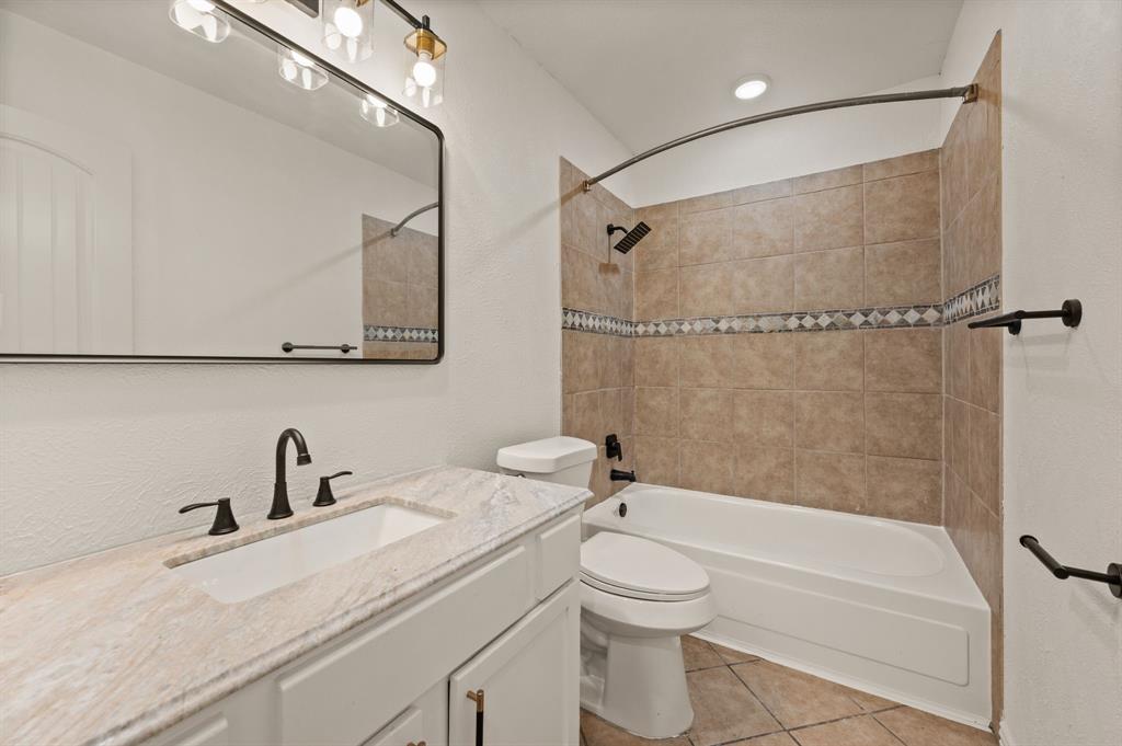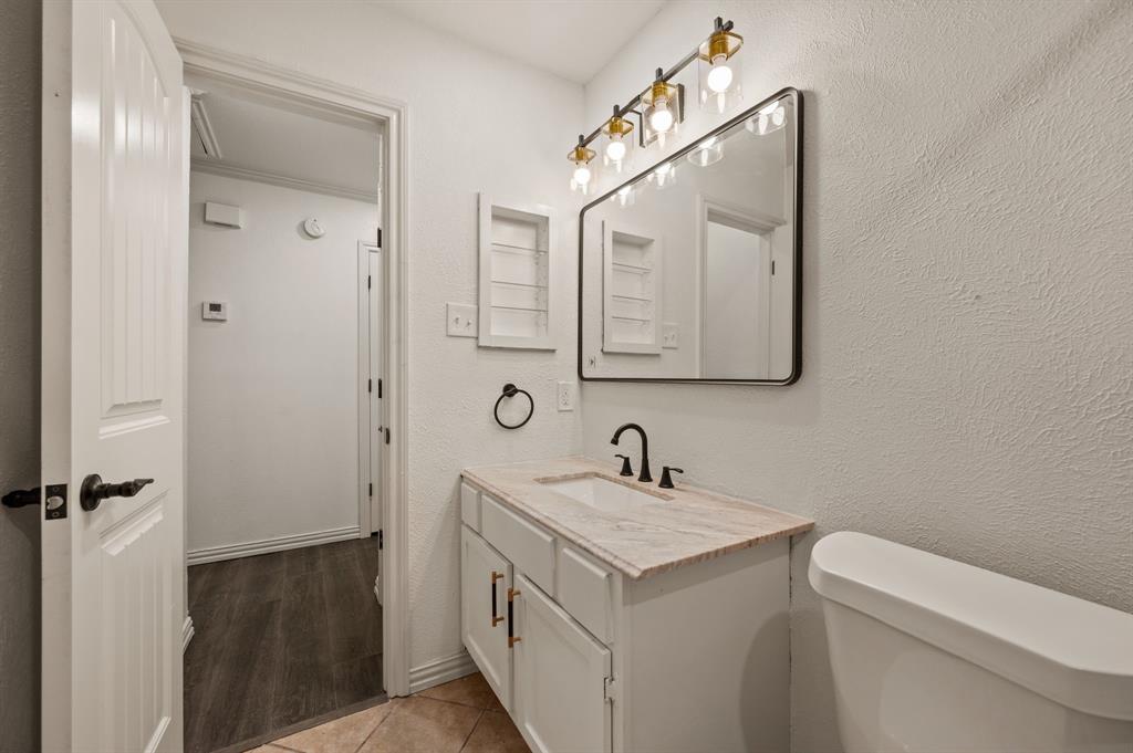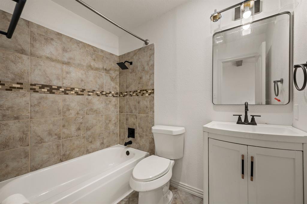 Down the hall, you’ll find three generously sized bedrooms and two full bathrooms. Whether you need space for family, guests, or a home office, this layout offers flexibility without compromise. The bathrooms feature thoughtful updates and clean finishes that complement the home’s overall aesthetic.