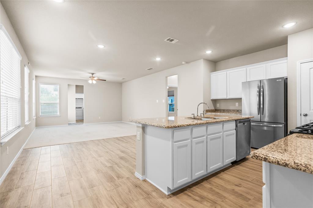 Enjoy a welcoming front porch and lovely curb appeal before stepping inside to an open-concept layout designed for both relaxing and entertaining. The kitchen features granite countertops, a gas range, and generous prep space—ideal for the home chef.