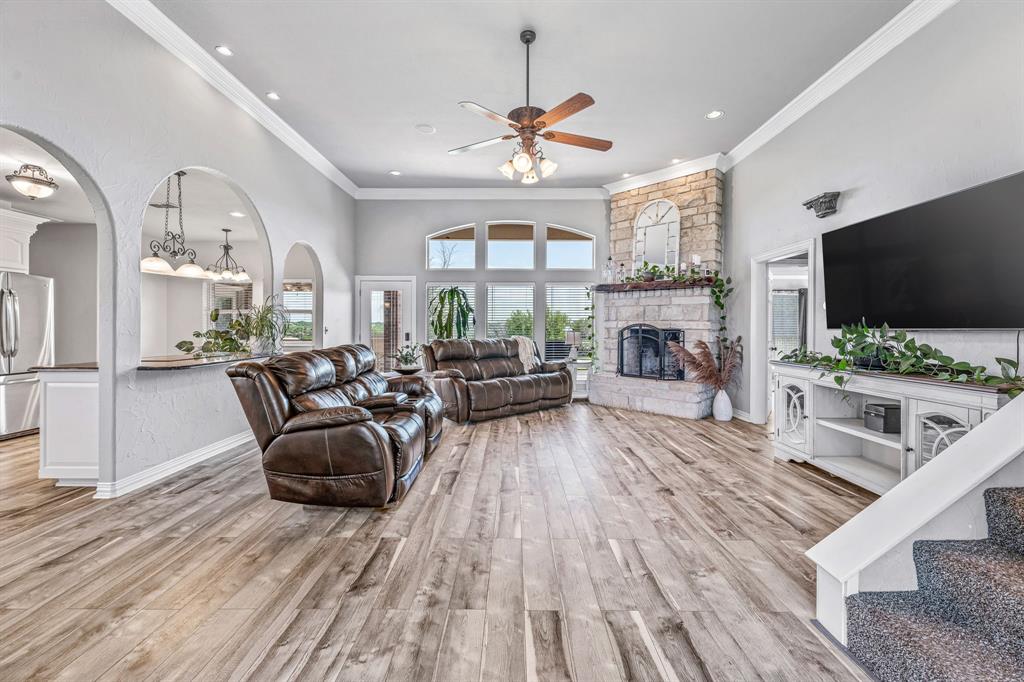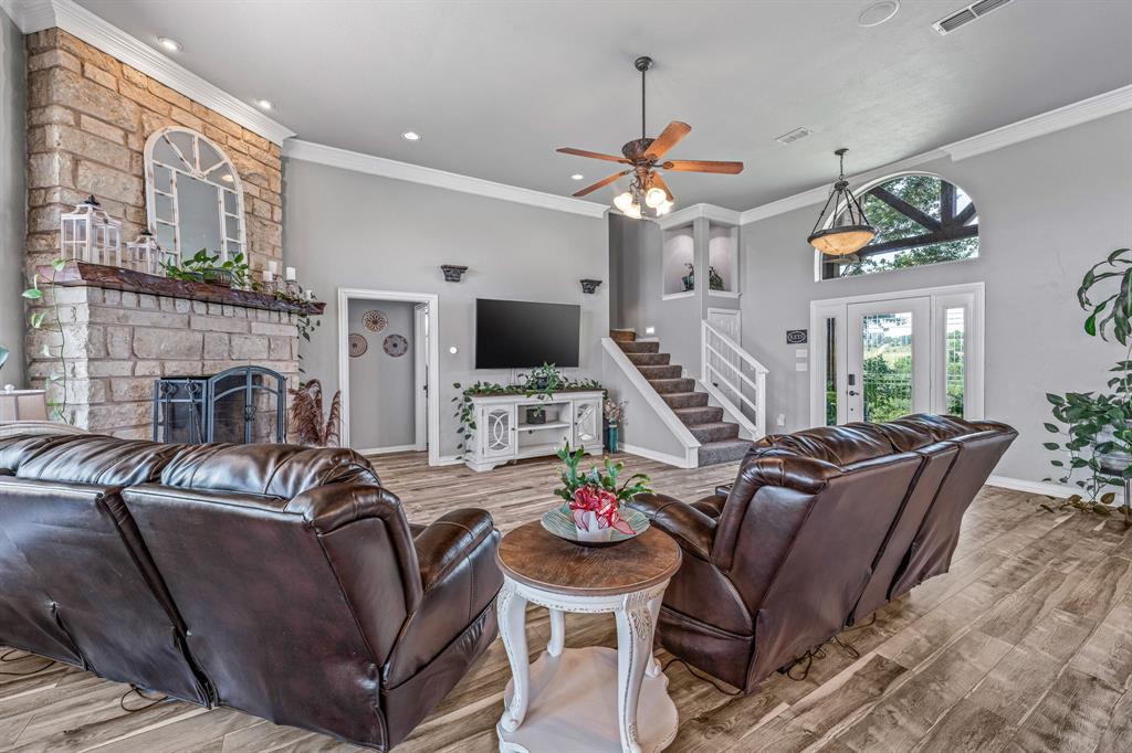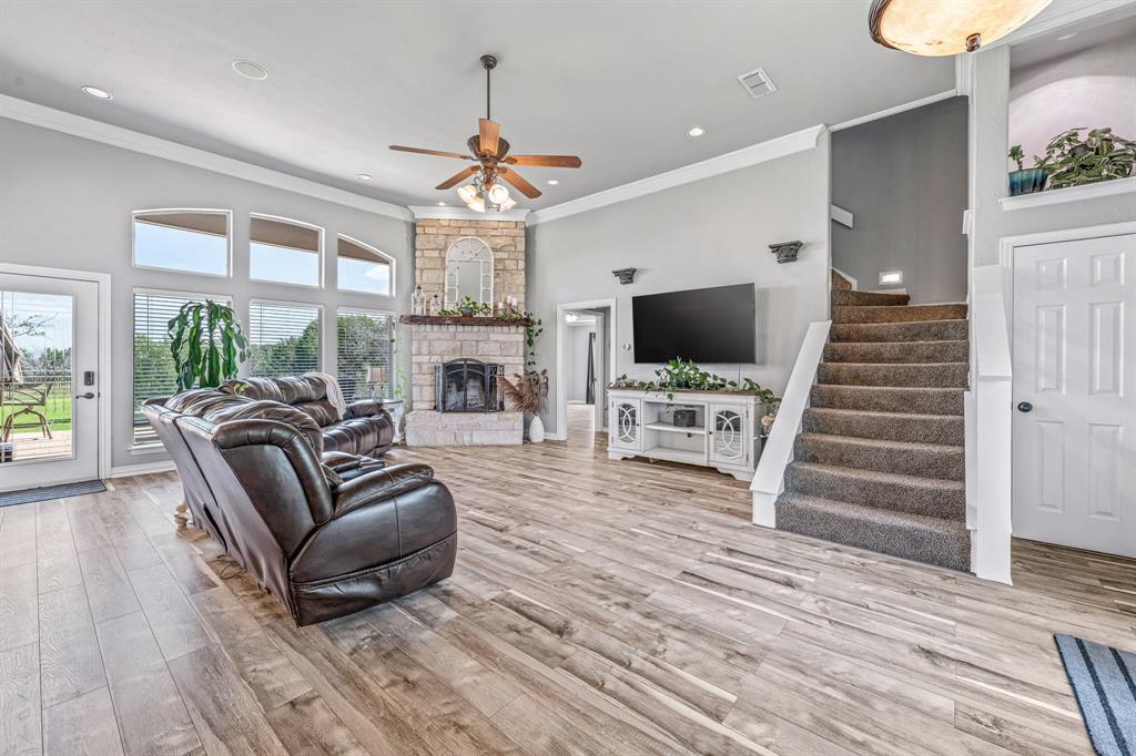 BRING ALL OFFERS on this move in ready home. Welcome to 305 Blue Marlin Drive, a beautifully updated home located on a 2+ acre lot in the desirable Mountain Lakes Ranch community. This 3-bedroom, 2.5-bath home offers a perfect mix of modern upgrades, peaceful country views, and community amenities. Since 2022, the home has seen extensive improvements inside and out. The exterior boasts a new roof, gutters, and garage door (2024), along with a rod iron fence and extended patio (2022)—an ideal space for entertaining or relaxing while taking in rolling countryside views. Inside, enjoy new AquaGuard waterproof laminate flooring (2024), fresh paint throughout, and new blinds in every room. The open-concept living area features a cozy wood-burning fireplace and flows into a stylish kitchen with an induction cooktop, granite countertops and freshly painted cabinetry. Both downstairs bathrooms were fully remodeled in 2024, and the primary suite delivers a spa-like retreat with stylish details. A new hot water heater (2024) adds peace of mind and energy efficiency. All of this sits within a scenic neighborhood offering private fishing lakes, a community pool, clubhouse, and more. This beautiful home is move-in ready and set on a spacious lot that gives you room to roam, relax, and enjoy the beauty of Bluff Dale.