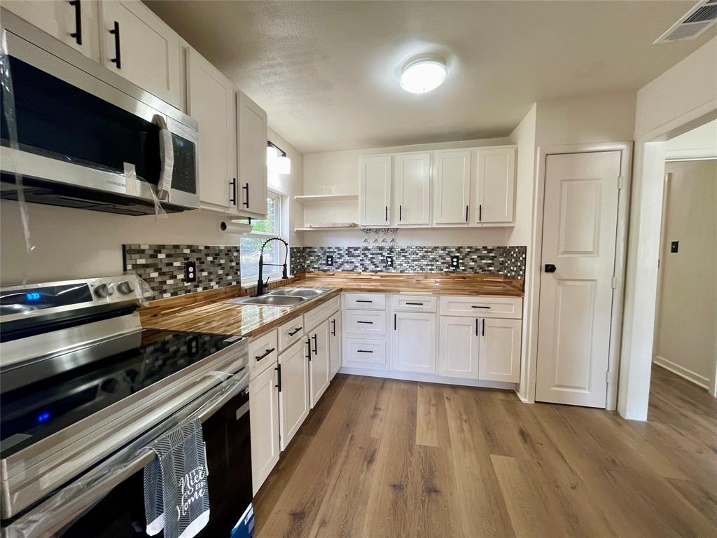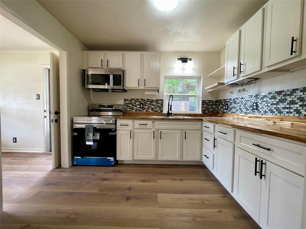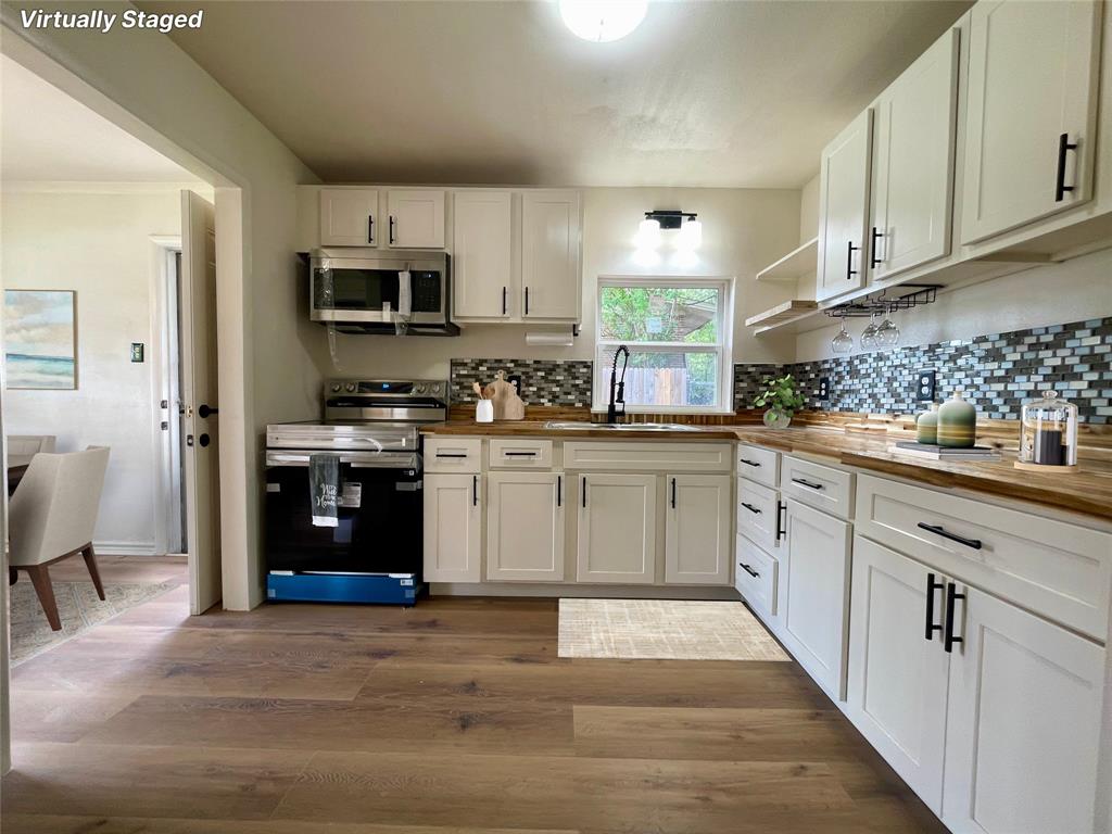Step inside to discover stylish new luxury vinyl flooring throughout—no carpet here! The updated kitchen features water-resistant treated wood countertops, a new electric stove, sleek faucets, and ample space to cook and entertain.